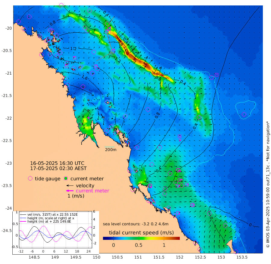 26cm/s -26T +10cm/s rms + 2cm/s 5T. Brampton I 18m 24cm/s -7T +9cm/s rms + 6cm/s 66T. Wigton I 38m 19cm/s 17T +7cm/s rms + 8cm/s 141T. Tern I 47m 37cm/s 27T +7cm/s rms + 12cm/s 54T. N Bugatti Rf 64m 31cm/s 30T +3cm/s rms + 13cm/s 178T. W Bugatti Rf 70m 16cm/s 21T +3cm/s rms + 3cm/s -130T. Creal Rf 69m 44cm/s 114T +7cm/s rms + 4cm/s 2T. North Rf 62m 34cm/s 139T +9cm/s rms + 2cm/s -56T. Cape Capricorn 26m 25cm/s 96T +5cm/s rms + 3cm/s 166T. L Musgrave I 42m 20cm/s 115T +9cm/s rms + 1cm/s -142T. Round Hill Hd 26m 5cm/s 27T +41cm/s rms + 48cm/s 116T. GBRELR 305m 13cm/s 114T +7cm/s rms + 6cm/s 123T. GBRCCH 92m 48cm/s 77T +8cm/s rms + 3cm/s -33T. GBRHIN 45m 30cm/s 90T +4cm/s rms + 2cm/s 41T. GBRHIS 46m 22cm/s 67T +16cm/s rms + 4cm/s -22T. GBROTE 59m 84cm Bell Cay 80cm Holbourne I 139cm Tern I 82cm Bugatti Rf 104cm Creal Rf 66cm White Tip I 24cm North Rf 25cm Rundle I 8cm L Musgrave I 7cm Saumarez Reef 64cm Kennedy Reef 52cm Unnamed Reef No. 2 75cm Abbot Point 83cm Bowen 101cm Tideway Reef 93cm Hayman Island 125cm Square Reef 99cm Double Bay 130cm Molle Island 109cm Cid Harbour 98cm Hook Island 110cm Border Island 108cm Haslewood Island 112cm Shute Harbour 130cm Thomas Island 129cm Credlin Reef 139cm East Repulse Island 142cm Blacksmith Island 155cm Laguna Quays 141cm Carlisle Island (Off) 148cm St. Bees Island 141cm Scawfell Island 154cm Penrith Island 168cm Mackay Outer Harbour 174cm Hay Point 165cm Prudhoe Island 152cm Middle Island (Percy Isles) 78cm Gannet Cay 26cm Elusive Reef 251cm Mcewin Islet 144cm Mumford Island 164cm Osborn Island 166cm Marquis Island 147cm Reef Point 107cm High Peak Island 79cm Port Clinton 56cm Peaked Island 14cm Karamea Bank 46cm Johnson Patch - NW 50cm Rosslyn Bay 44cm Middle Island (Keppel Isles) 63cm Port Alma 19cm Heron Island 20cm One Tree Islet 19cm Polmaise Reef 30cm Tryon Island 14cm Rock Cod Shoal 31cm Gatcombe Head 41cm Gladstone 31cm South Trees (Storm Surge) 8cm Clews Point 9cm Round Hill Head 3cm Lady Elliot Island 9cm Breaksea Spit 9cm Bundaberg (Burnett Heads) 9cm Elliot Heads 7cm Waddy Point (Fraser Island)