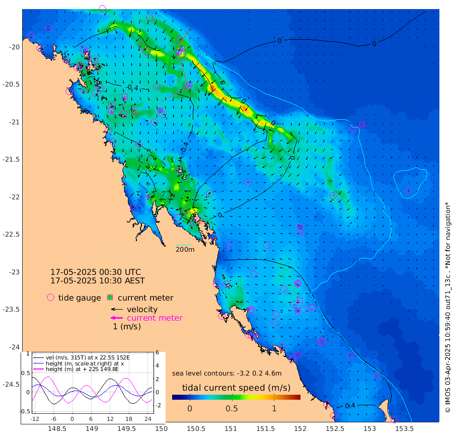 27cm/s 155T +10cm/s rms + 2cm/s 5T. Brampton I 18m 29cm/s 168T +9cm/s rms + 6cm/s 66T. Wigton I 38m 13cm/s -171T +7cm/s rms + 8cm/s 141T. Tern I 47m 25cm/s -159T +7cm/s rms + 12cm/s 54T. N Bugatti Rf 64m 26cm/s -150T +3cm/s rms + 13cm/s 178T. W Bugatti Rf 70m 15cm/s -179T +3cm/s rms + 3cm/s -130T. Creal Rf 69m 16cm/s -69T +7cm/s rms + 4cm/s 2T. North Rf 62m 18cm/s -39T +9cm/s rms + 2cm/s -56T. Cape Capricorn 26m 6cm/s -66T +5cm/s rms + 3cm/s 166T. L Musgrave I 42m 6cm/s -63T +9cm/s rms + 1cm/s -142T. Round Hill Hd 26m 5cm/s 170T +41cm/s rms + 48cm/s 116T. GBRELR 305m 8cm/s -94T +7cm/s rms + 6cm/s 123T. GBRCCH 92m 22cm/s -108T +8cm/s rms + 3cm/s -33T. GBRHIN 45m 12cm/s -99T +4cm/s rms + 2cm/s 41T. GBRHIS 46m 16cm/s -149T +16cm/s rms + 4cm/s -22T. GBROTE 59m -3cm Bell Cay -20cm Holbourne I -31cm Tern I -21cm Bugatti Rf -24cm Creal Rf -17cm White Tip I 15cm North Rf 28cm Rundle I 13cm L Musgrave I 14cm Saumarez Reef -12cm Kennedy Reef -11cm Unnamed Reef No. 2 -19cm Abbot Point -22cm Bowen -34cm Tideway Reef -26cm Hayman Island -37cm Square Reef -31cm Double Bay -46cm Molle Island -24cm Cid Harbour -29cm Hook Island -31cm Border Island -26cm Haslewood Island -32cm Shute Harbour -40cm Thomas Island -32cm Credlin Reef -37cm East Repulse Island -33cm Blacksmith Island -48cm Laguna Quays -32cm Carlisle Island (Off) -23cm St. Bees Island -24cm Scawfell Island -35cm Penrith Island -47cm Mackay Outer Harbour -46cm Hay Point -47cm Prudhoe Island -23cm Middle Island (Percy Isles) 0cm Gannet Cay -6cm Elusive Reef -75cm Mcewin Islet -10cm Mumford Island -15cm Osborn Island -5cm Marquis Island -8cm Reef Point -2cm High Peak Island 11cm Port Clinton 20cm Peaked Island 20cm Karamea Bank 19cm Johnson Patch - NW 27cm Rosslyn Bay 29cm Middle Island (Keppel Isles) 33cm Port Alma 21cm Heron Island 15cm One Tree Islet 23cm Polmaise Reef 14cm Tryon Island 26cm Rock Cod Shoal 26cm Gatcombe Head 32cm Gladstone 33cm South Trees (Storm Surge) 24cm Clews Point 24cm Round Hill Head 14cm Lady Elliot Island 7cm Breaksea Spit 31cm Bundaberg (Burnett Heads) 39cm Elliot Heads 1cm Waddy Point (Fraser Island)