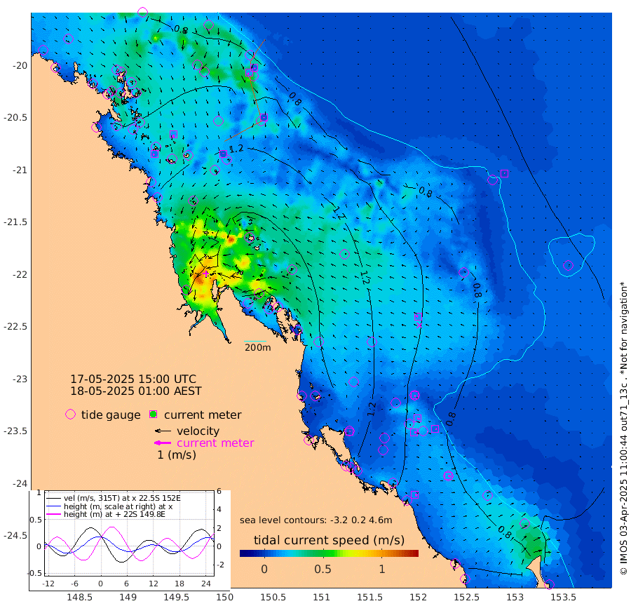 9cm/s -120T +10cm/s rms + 2cm/s 5T. Brampton I 18m 14cm/s 174T +9cm/s rms + 6cm/s 66T. Wigton I 38m 4cm/s -11T +7cm/s rms + 8cm/s 141T. Tern I 47m 7cm/s 158T +7cm/s rms + 12cm/s 54T. N Bugatti Rf 64m 13cm/s -146T +3cm/s rms + 13cm/s 178T. W Bugatti Rf 70m 5cm/s 147T +3cm/s rms + 3cm/s -130T. Creal Rf 69m 9cm/s 156T +7cm/s rms + 4cm/s 2T. North Rf 62m 5cm/s 50T +9cm/s rms + 2cm/s -56T. Cape Capricorn 26m 17cm/s 113T +5cm/s rms + 3cm/s 166T. L Musgrave I 42m 11cm/s 119T +9cm/s rms + 1cm/s -142T. Round Hill Hd 26m 2cm/s -34T +41cm/s rms + 48cm/s 116T. GBRELR 305m 14cm/s -66T +7cm/s rms + 6cm/s 123T. GBRCCH 92m 14cm/s 106T +8cm/s rms + 3cm/s -33T. GBRHIN 45m 11cm/s 93T +4cm/s rms + 2cm/s 41T. GBRHIS 46m 8cm/s 90T +16cm/s rms + 4cm/s -22T. GBROTE 59m 125cm Bell Cay 84cm Holbourne I 141cm Tern I 94cm Bugatti Rf 110cm Creal Rf 83cm White Tip I 97cm North Rf 116cm Rundle I 72cm L Musgrave I 55cm Saumarez Reef 79cm Kennedy Reef 79cm Unnamed Reef No. 2 83cm Abbot Point 88cm Bowen 95cm Tideway Reef 98cm Hayman Island 115cm Square Reef 93cm Double Bay 117cm Molle Island 112cm Cid Harbour 94cm Hook Island 103cm Border Island 105cm Haslewood Island 105cm Shute Harbour 116cm Thomas Island 131cm Credlin Reef 130cm East Repulse Island 132cm Blacksmith Island 127cm Laguna Quays 135cm Carlisle Island (Off) 138cm St. Bees Island 134cm Scawfell Island 153cm Penrith Island 150cm Mackay Outer Harbour 159cm Hay Point 148cm Prudhoe Island 172cm Middle Island (Percy Isles) 121cm Gannet Cay 63cm Elusive Reef 195cm Mcewin Islet 180cm Mumford Island 198cm Osborn Island 205cm Marquis Island 187cm Reef Point 150cm High Peak Island 146cm Port Clinton 132cm Peaked Island 94cm Karamea Bank 127cm Johnson Patch - NW 143cm Rosslyn Bay 140cm Middle Island (Keppel Isles) 160cm Port Alma 98cm Heron Island 98cm One Tree Islet 102cm Polmaise Reef 112cm Tryon Island 106cm Rock Cod Shoal 115cm Gatcombe Head 133cm Gladstone 124cm South Trees (Storm Surge) 91cm Clews Point 88cm Round Hill Head 68cm Lady Elliot Island 71cm Breaksea Spit 90cm Bundaberg (Burnett Heads) 97cm Elliot Heads 58cm Waddy Point (Fraser Island)