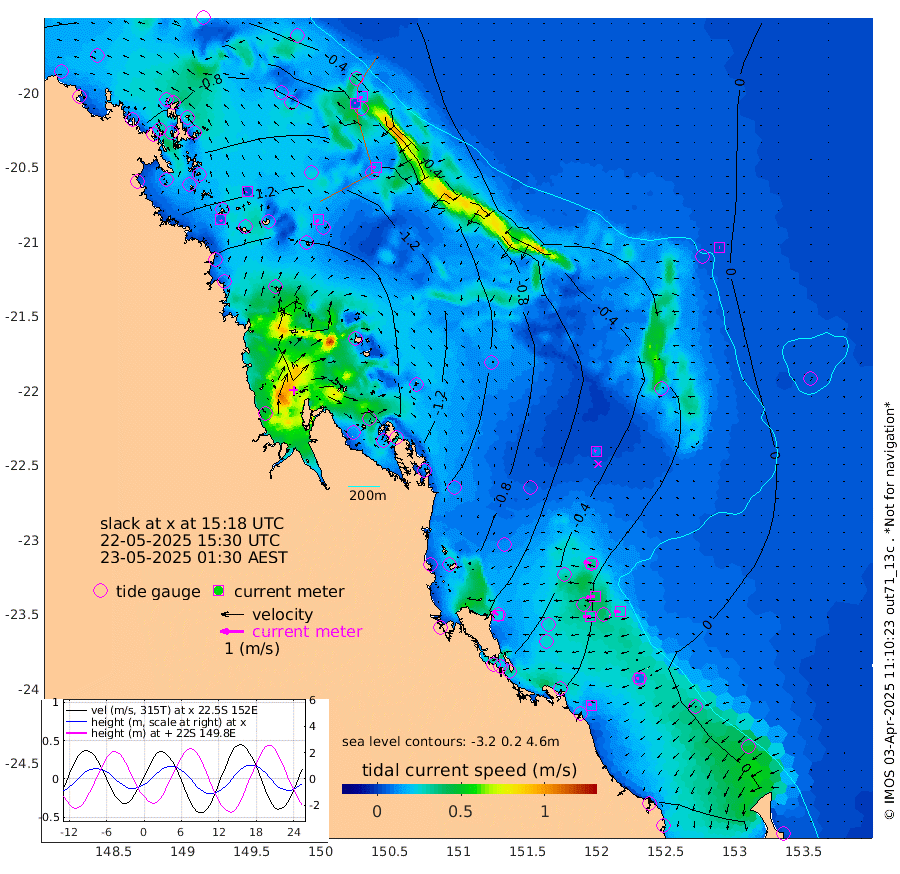 8cm/s 152T +10cm/s rms + 2cm/s 5T. Brampton I 18m 6cm/s -104T +9cm/s rms + 6cm/s 66T. Wigton I 38m 17cm/s -142T +7cm/s rms + 8cm/s 141T. Tern I 47m 15cm/s -119T +7cm/s rms + 12cm/s 54T. N Bugatti Rf 64m 5cm/s -17T +3cm/s rms + 13cm/s 178T. W Bugatti Rf 70m 14cm/s -97T +3cm/s rms + 3cm/s -130T. Creal Rf 69m 33cm/s -72T +7cm/s rms + 4cm/s 2T. North Rf 62m 23cm/s -53T +9cm/s rms + 2cm/s -56T. Cape Capricorn 26m 10cm/s -99T +5cm/s rms + 3cm/s 166T. L Musgrave I 42m 15cm/s -80T +9cm/s rms + 1cm/s -142T. Round Hill Hd 26m 3cm/s -83T +41cm/s rms + 48cm/s 116T. GBRELR 305m 8cm/s -66T +7cm/s rms + 6cm/s 123T. GBRCCH 92m 39cm/s -94T +8cm/s rms + 3cm/s -33T. GBRHIN 45m 30cm/s -90T +4cm/s rms + 2cm/s 41T. GBRHIS 46m 26cm/s -88T +16cm/s rms + 4cm/s -22T. GBROTE 59m -103cm Bell Cay -64cm Holbourne I -155cm Tern I -70cm Bugatti Rf -104cm Creal Rf -46cm White Tip I -30cm North Rf -49cm Rundle I -3cm L Musgrave I -7cm Saumarez Reef -49cm Kennedy Reef -36cm Unnamed Reef No. 2 -67cm Abbot Point -75cm Bowen -90cm Tideway Reef -87cm Hayman Island -118cm Square Reef -77cm Double Bay -89cm Molle Island -113cm Cid Harbour -80cm Hook Island -102cm Border Island -107cm Haslewood Island -106cm Shute Harbour -131cm Thomas Island -140cm Credlin Reef -151cm East Repulse Island -148cm Blacksmith Island -152cm Laguna Quays -151cm Carlisle Island (Off) -170cm St. Bees Island -155cm Scawfell Island -161cm Penrith Island -176cm Mackay Outer Harbour -188cm Hay Point -182cm Prudhoe Island -163cm Middle Island (Percy Isles) -87cm Gannet Cay -1cm Elusive Reef -244cm Mcewin Islet -184cm Mumford Island -209cm Osborn Island -216cm Marquis Island -191cm Reef Point -132cm High Peak Island -104cm Port Clinton -100cm Peaked Island -24cm Karamea Bank -54cm Johnson Patch - NW -83cm Rosslyn Bay -84cm Middle Island (Keppel Isles) -103cm Port Alma -20cm Heron Island -17cm One Tree Islet -29cm Polmaise Reef -35cm Tryon Island -30cm Rock Cod Shoal -46cm Gatcombe Head -66cm Gladstone -54cm South Trees (Storm Surge) -16cm Clews Point -13cm Round Hill Head 4cm Lady Elliot Island 10cm Breaksea Spit -15cm Bundaberg (Burnett Heads) -19cm Elliot Heads 10cm Waddy Point (Fraser Island)