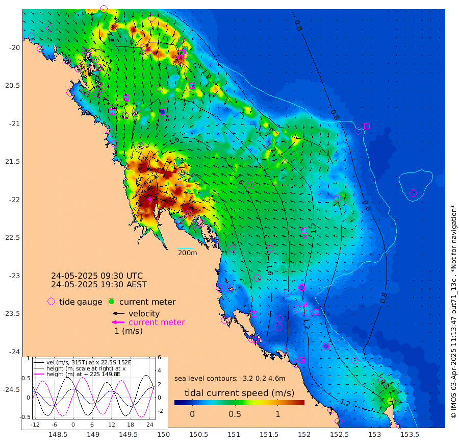 22cm/s -164T +10cm/s rms + 2cm/s 5T. Brampton I 18m 35cm/s 164T +9cm/s rms + 6cm/s 66T. Wigton I 38m 0cm/s 51T +7cm/s rms + 8cm/s 141T. Tern I 47m 37cm/s 179T +7cm/s rms + 12cm/s 54T. N Bugatti Rf 64m 59cm/s -153T +3cm/s rms + 13cm/s 178T. W Bugatti Rf 70m 19cm/s 160T +3cm/s rms + 3cm/s -130T. Creal Rf 69m 6cm/s -165T +7cm/s rms + 4cm/s 2T. North Rf 62m 13cm/s 9T +9cm/s rms + 2cm/s -56T. Cape Capricorn 26m 5cm/s 149T +5cm/s rms + 3cm/s 166T. L Musgrave I 42m 10cm/s 113T +9cm/s rms + 1cm/s -142T. Round Hill Hd 26m 2cm/s -143T +41cm/s rms + 48cm/s 116T. GBRELR 305m 26cm/s -70T +7cm/s rms + 6cm/s 123T. GBRCCH 92m 16cm/s 148T +8cm/s rms + 3cm/s -33T. GBRHIN 45m 12cm/s 98T +4cm/s rms + 2cm/s 41T. GBRHIS 46m 17cm/s 133T +16cm/s rms + 4cm/s -22T. GBROTE 59m 170cm Bell Cay 120cm Holbourne I 191cm Tern I 121cm Bugatti Rf 144cm Creal Rf 107cm White Tip I 128cm North Rf 165cm Rundle I 89cm L Musgrave I 71cm Saumarez Reef 115cm Kennedy Reef 109cm Unnamed Reef No. 2 123cm Abbot Point 127cm Bowen 129cm Tideway Reef 140cm Hayman Island 153cm Square Reef 138cm Double Bay 133cm Molle Island 147cm Cid Harbour 128cm Hook Island 128cm Border Island 133cm Haslewood Island 142cm Shute Harbour 155cm Thomas Island 176cm Credlin Reef 176cm East Repulse Island 167cm Blacksmith Island 160cm Laguna Quays 178cm Carlisle Island (Off) 202cm St. Bees Island 175cm Scawfell Island 192cm Penrith Island 192cm Mackay Outer Harbour 207cm Hay Point 207cm Prudhoe Island 224cm Middle Island (Percy Isles) 154cm Gannet Cay 73cm Elusive Reef 214cm Mcewin Islet 253cm Mumford Island 260cm Osborn Island 271cm Marquis Island 249cm Reef Point 200cm High Peak Island 208cm Port Clinton 209cm Peaked Island 129cm Karamea Bank 165cm Johnson Patch - NW 202cm Rosslyn Bay 206cm Middle Island (Keppel Isles) 224cm Port Alma 122cm Heron Island 127cm One Tree Islet 137cm Polmaise Reef 142cm Tryon Island 143cm Rock Cod Shoal 153cm Gatcombe Head 178cm Gladstone 169cm South Trees (Storm Surge) 122cm Clews Point 110cm Round Hill Head 81cm Lady Elliot Island 79cm Breaksea Spit 115cm Bundaberg (Burnett Heads) 121cm Elliot Heads 60cm Waddy Point (Fraser Island)
