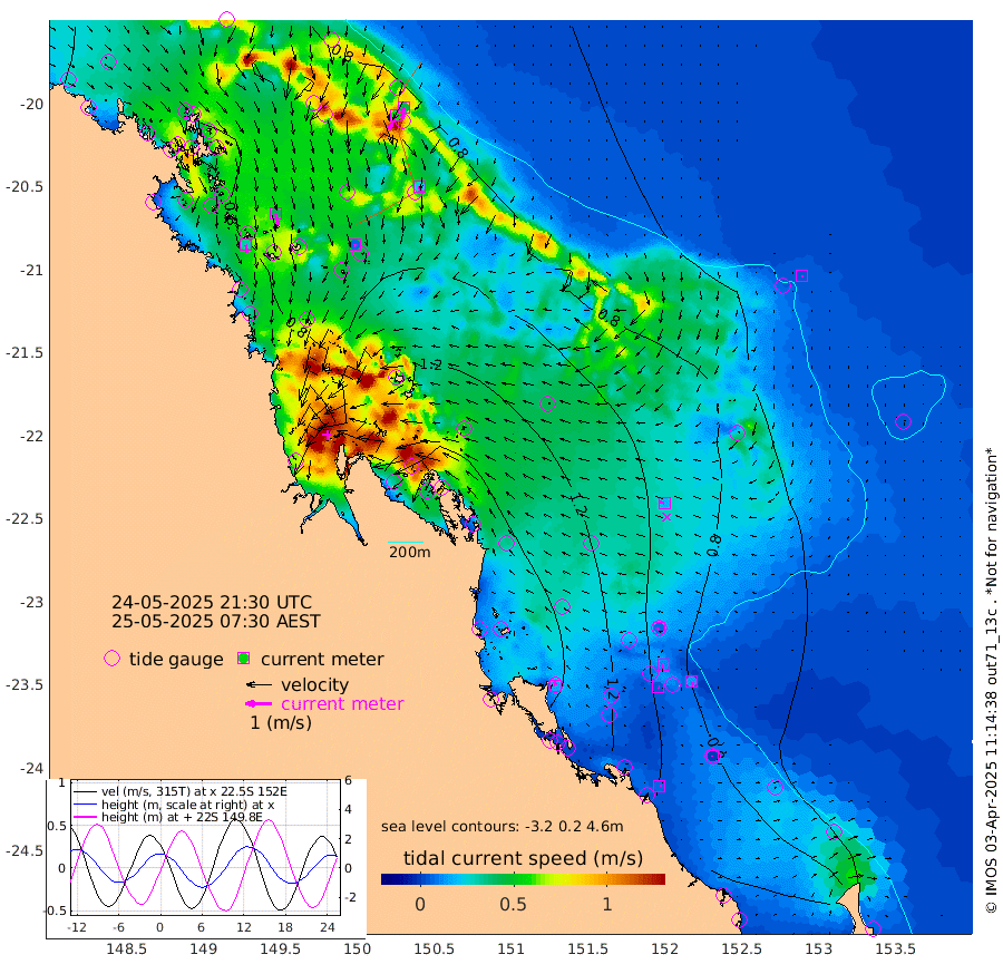 30cm/s 167T +10cm/s rms + 2cm/s 5T. Brampton I 18m 42cm/s 166T +9cm/s rms + 6cm/s 66T. Wigton I 38m 8cm/s 169T +7cm/s rms + 8cm/s 141T. Tern I 47m 44cm/s -170T +7cm/s rms + 12cm/s 54T. N Bugatti Rf 64m 57cm/s -155T +3cm/s rms + 13cm/s 178T. W Bugatti Rf 70m 23cm/s 165T +3cm/s rms + 3cm/s -130T. Creal Rf 69m 7cm/s -118T +7cm/s rms + 4cm/s 2T. North Rf 62m 16cm/s -9T +9cm/s rms + 2cm/s -56T. Cape Capricorn 26m 1cm/s -160T +5cm/s rms + 3cm/s 166T. L Musgrave I 42m 6cm/s 94T +9cm/s rms + 1cm/s -142T. Round Hill Hd 26m 5cm/s 161T +41cm/s rms + 48cm/s 116T. GBRELR 305m 20cm/s -75T +7cm/s rms + 6cm/s 123T. GBRCCH 92m 12cm/s -177T +8cm/s rms + 3cm/s -33T. GBRHIN 45m 5cm/s 113T +4cm/s rms + 2cm/s 41T. GBRHIS 46m 15cm/s 157T +16cm/s rms + 4cm/s -22T. GBROTE 59m 127cm Bell Cay 87cm Holbourne I 132cm Tern I 81cm Bugatti Rf 99cm Creal Rf 72cm White Tip I 96cm North Rf 133cm Rundle I 63cm L Musgrave I 55cm Saumarez Reef 76cm Kennedy Reef 76cm Unnamed Reef No. 2 88cm Abbot Point 89cm Bowen 82cm Tideway Reef 93cm Hayman Island 102cm Square Reef 99cm Double Bay 92cm Molle Island 96cm Cid Harbour 87cm Hook Island 80cm Border Island 92cm Haslewood Island 95cm Shute Harbour 97cm Thomas Island 115cm Credlin Reef 112cm East Repulse Island 101cm Blacksmith Island 101cm Laguna Quays 122cm Carlisle Island (Off) 127cm St. Bees Island 117cm Scawfell Island 134cm Penrith Island 125cm Mackay Outer Harbour 137cm Hay Point 143cm Prudhoe Island 165cm Middle Island (Percy Isles) 118cm Gannet Cay 44cm Elusive Reef 121cm Mcewin Islet 189cm Mumford Island 182cm Osborn Island 193cm Marquis Island 176cm Reef Point 152cm High Peak Island 166cm Port Clinton 167cm Peaked Island 100cm Karamea Bank 130cm Johnson Patch - NW 163cm Rosslyn Bay 167cm Middle Island (Keppel Isles) 183cm Port Alma 95cm Heron Island 94cm One Tree Islet 107cm Polmaise Reef 97cm Tryon Island 113cm Rock Cod Shoal 127cm Gatcombe Head 145cm Gladstone 138cm South Trees (Storm Surge) 94cm Clews Point 85cm Round Hill Head 57cm Lady Elliot Island 45cm Breaksea Spit 93cm Bundaberg (Burnett Heads) 100cm Elliot Heads 34cm Waddy Point (Fraser Island)