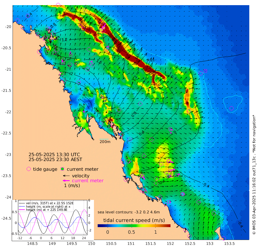 47cm/s -15T +10cm/s rms + 2cm/s 5T. Brampton I 18m 49cm/s -5T +9cm/s rms + 6cm/s 66T. Wigton I 38m 33cm/s 25T +7cm/s rms + 8cm/s 141T. Tern I 47m 73cm/s 24T +7cm/s rms + 12cm/s 54T. N Bugatti Rf 64m 75cm/s 34T +3cm/s rms + 13cm/s 178T. W Bugatti Rf 70m 34cm/s 23T +3cm/s rms + 3cm/s -130T. Creal Rf 69m 74cm/s 106T +7cm/s rms + 4cm/s 2T. North Rf 62m 63cm/s 144T +9cm/s rms + 2cm/s -56T. Cape Capricorn 26m 26cm/s 89T +5cm/s rms + 3cm/s 166T. L Musgrave I 42m 26cm/s 113T +9cm/s rms + 1cm/s -142T. Round Hill Hd 26m 8cm/s 52T +41cm/s rms + 48cm/s 116T. GBRELR 305m 37cm/s 112T +7cm/s rms + 6cm/s 123T. GBRCCH 92m 82cm/s 75T +8cm/s rms + 3cm/s -33T. GBRHIN 45m 50cm/s 89T +4cm/s rms + 2cm/s 41T. GBRHIS 46m 43cm/s 69T +16cm/s rms + 4cm/s -22T. GBROTE 59m 64cm Bell Cay 53cm Holbourne I 153cm Tern I 68cm Bugatti Rf 105cm Creal Rf 39cm White Tip I -29cm North Rf -41cm Rundle I -41cm L Musgrave I -27cm Saumarez Reef 32cm Kennedy Reef 15cm Unnamed Reef No. 2 52cm Abbot Point 66cm Bowen 99cm Tideway Reef 77cm Hayman Island 128cm Square Reef 79cm Double Bay 119cm Molle Island 118cm Cid Harbour 86cm Hook Island 112cm Border Island 119cm Haslewood Island 114cm Shute Harbour 152cm Thomas Island 142cm Credlin Reef 170cm East Repulse Island 173cm Blacksmith Island 189cm Laguna Quays 162cm Carlisle Island (Off) 188cm St. Bees Island 169cm Scawfell Island 163cm Penrith Island 200cm Mackay Outer Harbour 207cm Hay Point 190cm Prudhoe Island 144cm Middle Island (Percy Isles) 50cm Gannet Cay -16cm Elusive Reef 318cm Mcewin Islet 126cm Mumford Island 171cm Osborn Island 178cm Marquis Island 154cm Reef Point 93cm High Peak Island 32cm Port Clinton 9cm Peaked Island -41cm Karamea Bank -14cm Johnson Patch - NW -9cm Rosslyn Bay -15cm Middle Island (Keppel Isles) 5cm Port Alma -37cm Heron Island -51cm One Tree Islet -44cm Polmaise Reef -17cm Tryon Island -45cm Rock Cod Shoal -29cm Gatcombe Head -17cm Gladstone -31cm South Trees (Storm Surge) -58cm Clews Point -47cm Round Hill Head -44cm Lady Elliot Island -41cm Breaksea Spit -50cm Bundaberg (Burnett Heads) -49cm Elliot Heads -32cm Waddy Point (Fraser Island)