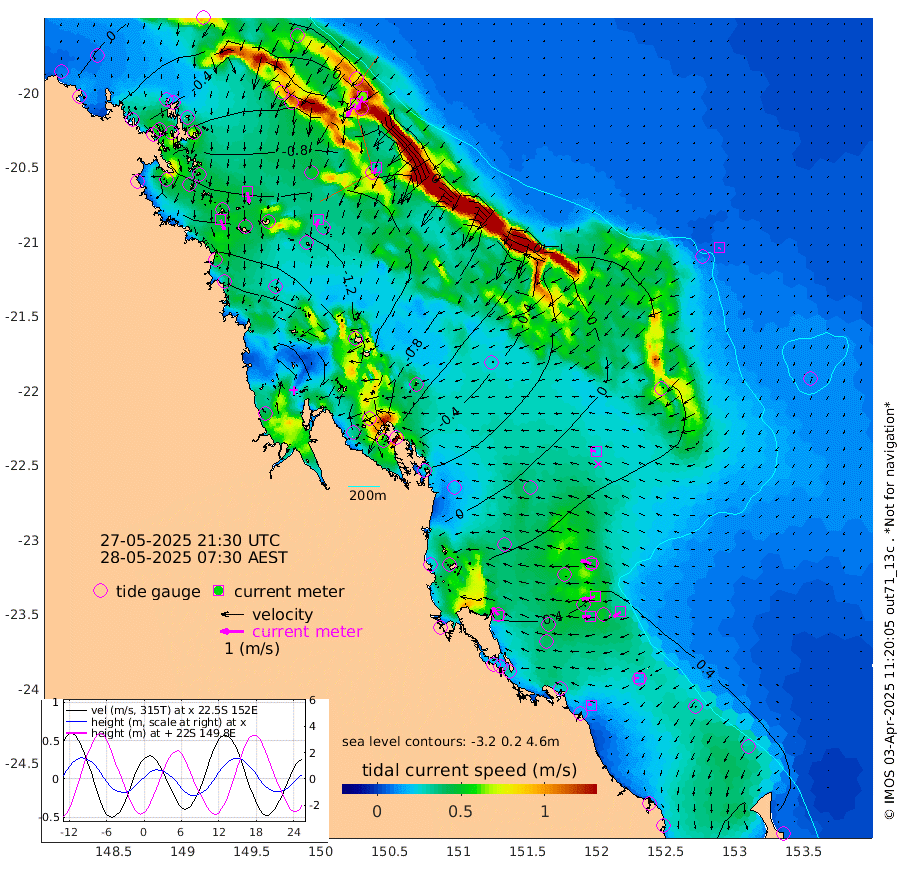 46cm/s 159T +10cm/s rms + 2cm/s 5T. Brampton I 18m 47cm/s 171T +9cm/s rms + 6cm/s 66T. Wigton I 38m 30cm/s -161T +7cm/s rms + 8cm/s 141T. Tern I 47m 62cm/s -157T +7cm/s rms + 12cm/s 54T. N Bugatti Rf 64m 65cm/s -147T +3cm/s rms + 13cm/s 178T. W Bugatti Rf 70m 30cm/s -164T +3cm/s rms + 3cm/s -130T. Creal Rf 69m 46cm/s -73T +7cm/s rms + 4cm/s 2T. North Rf 62m 43cm/s -39T +9cm/s rms + 2cm/s -56T. Cape Capricorn 26m 17cm/s -88T +5cm/s rms + 3cm/s 166T. L Musgrave I 42m 16cm/s -74T +9cm/s rms + 1cm/s -142T. Round Hill Hd 26m 7cm/s -162T +41cm/s rms + 48cm/s 116T. GBRELR 305m 24cm/s -81T +7cm/s rms + 6cm/s 123T. GBRCCH 92m 58cm/s -104T +8cm/s rms + 3cm/s -33T. GBRHIN 45m 36cm/s -95T +4cm/s rms + 2cm/s 41T. GBRHIS 46m 36cm/s -125T +16cm/s rms + 4cm/s -22T. GBROTE 59m -32cm Bell Cay -13cm Holbourne I -94cm Tern I -30cm Bugatti Rf -58cm Creal Rf -9cm White Tip I 31cm North Rf 44cm Rundle I 35cm L Musgrave I 36cm Saumarez Reef 6cm Kennedy Reef 9cm Unnamed Reef No. 2 -12cm Abbot Point -23cm Bowen -51cm Tideway Reef -37cm Hayman Island -67cm Square Reef -35cm Double Bay -62cm Molle Island -62cm Cid Harbour -43cm Hook Island -63cm Border Island -68cm Haslewood Island -63cm Shute Harbour -94cm Thomas Island -88cm Credlin Reef -112cm East Repulse Island -103cm Blacksmith Island -122cm Laguna Quays -105cm Carlisle Island (Off) -114cm St. Bees Island -105cm Scawfell Island -103cm Penrith Island -134cm Mackay Outer Harbour -140cm Hay Point -124cm Prudhoe Island -83cm Middle Island (Percy Isles) -26cm Gannet Cay 19cm Elusive Reef -243cm Mcewin Islet -66cm Mumford Island -109cm Osborn Island -117cm Marquis Island -96cm Reef Point -50cm High Peak Island -6cm Port Clinton 17cm Peaked Island 40cm Karamea Bank 29cm Johnson Patch - NW 25cm Rosslyn Bay 30cm Middle Island (Keppel Isles) 19cm Port Alma 38cm Heron Island 47cm One Tree Islet 47cm Polmaise Reef 24cm Tryon Island 42cm Rock Cod Shoal 36cm Gatcombe Head 31cm Gladstone 40cm South Trees (Storm Surge) 54cm Clews Point 43cm Round Hill Head 36cm Lady Elliot Island 32cm Breaksea Spit 52cm Bundaberg (Burnett Heads) 57cm Elliot Heads 19cm Waddy Point (Fraser Island)