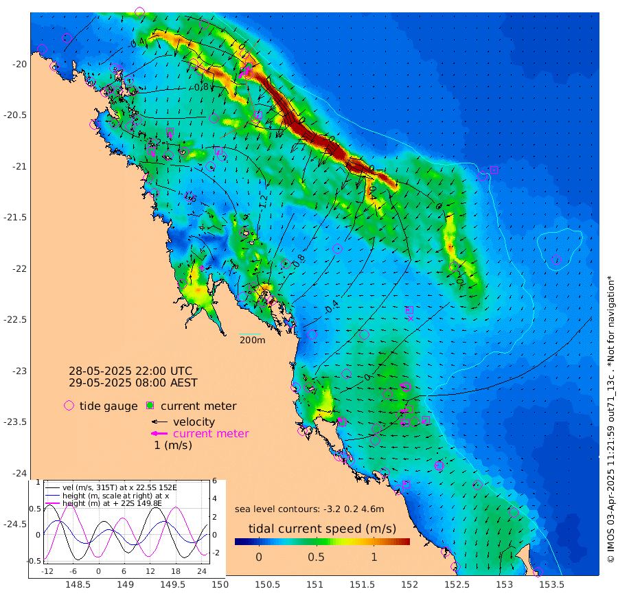 41cm/s 155T +10cm/s rms + 2cm/s 5T. Brampton I 18m 39cm/s 171T +9cm/s rms + 6cm/s 66T. Wigton I 38m 28cm/s -162T +7cm/s rms + 8cm/s 141T. Tern I 47m 52cm/s -156T +7cm/s rms + 12cm/s 54T. N Bugatti Rf 64m 52cm/s -146T +3cm/s rms + 13cm/s 178T. W Bugatti Rf 70m 26cm/s -162T +3cm/s rms + 3cm/s -130T. Creal Rf 69m 41cm/s -71T +7cm/s rms + 4cm/s 2T. North Rf 62m 37cm/s -41T +9cm/s rms + 2cm/s -56T. Cape Capricorn 26m 15cm/s -86T +5cm/s rms + 3cm/s 166T. L Musgrave I 42m 16cm/s -74T +9cm/s rms + 1cm/s -142T. Round Hill Hd 26m 6cm/s -165T +41cm/s rms + 48cm/s 116T. GBRELR 305m 18cm/s -86T +7cm/s rms + 6cm/s 123T. GBRCCH 92m 53cm/s -101T +8cm/s rms + 3cm/s -33T. GBRHIN 45m 34cm/s -94T +4cm/s rms + 2cm/s 41T. GBRHIS 46m 33cm/s -123T +16cm/s rms + 4cm/s -22T. GBROTE 59m -53cm Bell Cay -29cm Holbourne I -112cm Tern I -44cm Bugatti Rf -72cm Creal Rf -23cm White Tip I 10cm North Rf 17cm Rundle I 20cm L Musgrave I 26cm Saumarez Reef -7cm Kennedy Reef -7cm Unnamed Reef No. 2 -28cm Abbot Point -39cm Bowen -64cm Tideway Reef -54cm Hayman Island -81cm Square Reef -57cm Double Bay -79cm Molle Island -74cm Cid Harbour -59cm Hook Island -72cm Border Island -80cm Haslewood Island -77cm Shute Harbour -107cm Thomas Island -104cm Credlin Reef -127cm East Repulse Island -113cm Blacksmith Island -134cm Laguna Quays -121cm Carlisle Island (Off) -131cm St. Bees Island -119cm Scawfell Island -122cm Penrith Island -150cm Mackay Outer Harbour -157cm Hay Point -144cm Prudhoe Island -109cm Middle Island (Percy Isles) -46cm Gannet Cay 7cm Elusive Reef -255cm Mcewin Islet -93cm Mumford Island -132cm Osborn Island -142cm Marquis Island -119cm Reef Point -74cm High Peak Island -36cm Port Clinton -12cm Peaked Island 18cm Karamea Bank 3cm Johnson Patch - NW -5cm Rosslyn Bay -1cm Middle Island (Keppel Isles) -13cm Port Alma 17cm Heron Island 26cm One Tree Islet 25cm Polmaise Reef 3cm Tryon Island 18cm Rock Cod Shoal 11cm Gatcombe Head 4cm Gladstone 14cm South Trees (Storm Surge) 33cm Clews Point 25cm Round Hill Head 21cm Lady Elliot Island 18cm Breaksea Spit 32cm Bundaberg (Burnett Heads) 37cm Elliot Heads 8cm Waddy Point (Fraser Island)