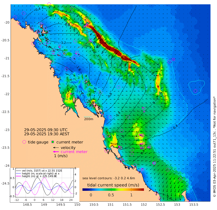 27cm/s 173T +10cm/s rms + 2cm/s 5T. Brampton I 18m 31cm/s -179T +9cm/s rms + 6cm/s 66T. Wigton I 38m 27cm/s -144T +7cm/s rms + 8cm/s 141T. Tern I 47m 49cm/s -154T +7cm/s rms + 12cm/s 54T. N Bugatti Rf 64m 51cm/s -143T +3cm/s rms + 13cm/s 178T. W Bugatti Rf 70m 23cm/s -146T +3cm/s rms + 3cm/s -130T. Creal Rf 69m 64cm/s -76T +7cm/s rms + 4cm/s 2T. North Rf 62m 50cm/s -38T +9cm/s rms + 2cm/s -56T. Cape Capricorn 26m 28cm/s -101T +5cm/s rms + 3cm/s 166T. L Musgrave I 42m 22cm/s -74T +9cm/s rms + 1cm/s -142T. Round Hill Hd 26m 8cm/s -93T +41cm/s rms + 48cm/s 116T. GBRELR 305m 34cm/s -63T +7cm/s rms + 6cm/s 123T. GBRCCH 92m 67cm/s -101T +8cm/s rms + 3cm/s -33T. GBRHIN 45m 43cm/s -91T +4cm/s rms + 2cm/s 41T. GBRHIS 46m 37cm/s -101T +16cm/s rms + 4cm/s -22T. GBROTE 59m -57cm Bell Cay -45cm Holbourne I -132cm Tern I -48cm Bugatti Rf -82cm Creal Rf -21cm White Tip I 33cm North Rf 31cm Rundle I 49cm L Musgrave I 36cm Saumarez Reef -24cm Kennedy Reef -7cm Unnamed Reef No. 2 -44cm Abbot Point -56cm Bowen -78cm Tideway Reef -62cm Hayman Island -97cm Square Reef -73cm Double Bay -95cm Molle Island -93cm Cid Harbour -72cm Hook Island -89cm Border Island -101cm Haslewood Island -95cm Shute Harbour -123cm Thomas Island -118cm Credlin Reef -148cm East Repulse Island -137cm Blacksmith Island -157cm Laguna Quays -146cm Carlisle Island (Off) -157cm St. Bees Island -137cm Scawfell Island -142cm Penrith Island -171cm Mackay Outer Harbour -179cm Hay Point -164cm Prudhoe Island -132cm Middle Island (Percy Isles) -51cm Gannet Cay 29cm Elusive Reef -284cm Mcewin Islet -113cm Mumford Island -155cm Osborn Island -167cm Marquis Island -144cm Reef Point -91cm High Peak Island -43cm Port Clinton -14cm Peaked Island 39cm Karamea Bank 15cm Johnson Patch - NW -4cm Rosslyn Bay 1cm Middle Island (Keppel Isles) -24cm Port Alma 39cm Heron Island 58cm One Tree Islet 43cm Polmaise Reef 31cm Tryon Island 36cm Rock Cod Shoal 18cm Gatcombe Head 3cm Gladstone 17cm South Trees (Storm Surge) 57cm Clews Point 48cm Round Hill Head 53cm Lady Elliot Island 59cm Breaksea Spit 42cm Bundaberg (Burnett Heads) 43cm Elliot Heads 52cm Waddy Point (Fraser Island)