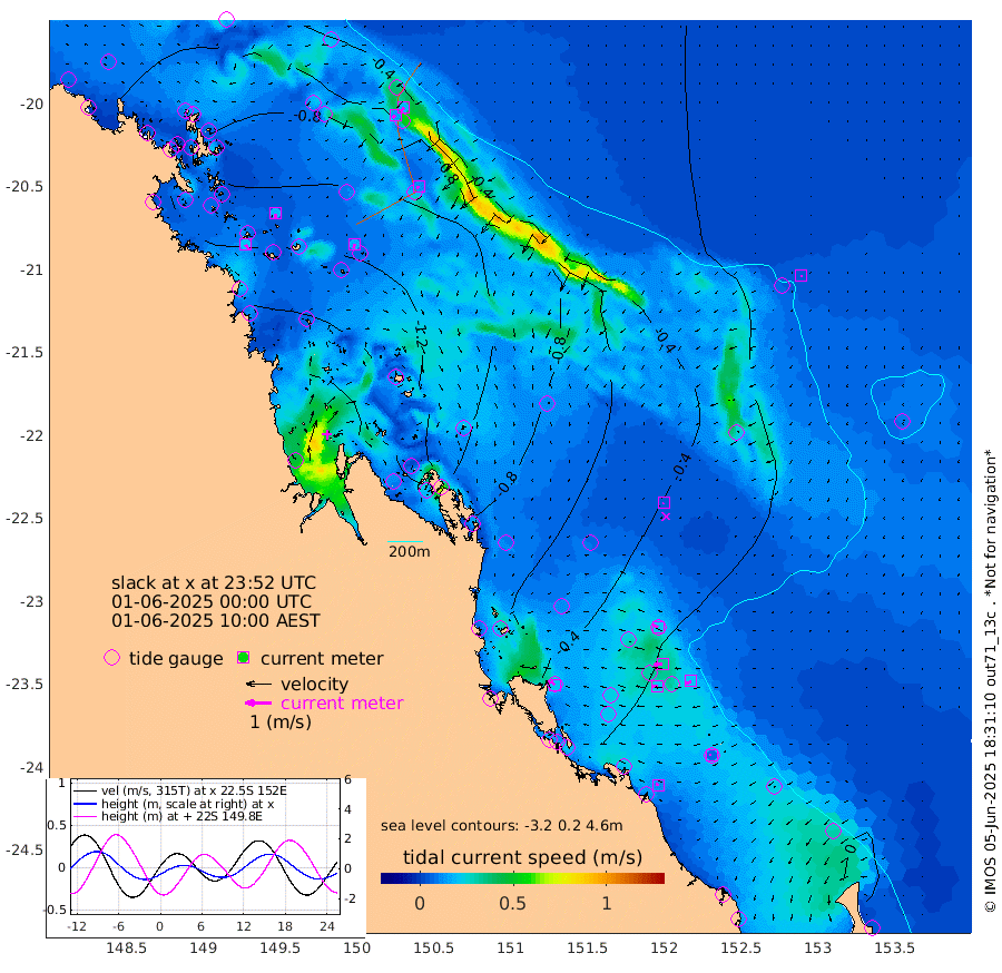 22cm/s 143T +10cm/s rms + 2cm/s 5T. Brampton I 18m 18cm/s 172T +9cm/s rms + 6cm/s 66T. Wigton I 38m 17cm/s -162T +7cm/s rms + 8cm/s 141T. Tern I 47m 18cm/s -147T +7cm/s rms + 12cm/s 54T. N Bugatti Rf 64m 14cm/s -131T +3cm/s rms + 13cm/s 178T. W Bugatti Rf 70m 12cm/s -152T +3cm/s rms + 3cm/s -130T. Creal Rf 69m 22cm/s -66T +7cm/s rms + 4cm/s 2T. North Rf 62m 21cm/s -49T +9cm/s rms + 2cm/s -56T. Cape Capricorn 26m 7cm/s -80T +5cm/s rms + 3cm/s 166T. L Musgrave I 42m 12cm/s -71T +9cm/s rms + 1cm/s -142T. Round Hill Hd 26m 4cm/s -175T +41cm/s rms + 48cm/s 116T. GBRELR 305m 4cm/s -130T +7cm/s rms + 6cm/s 123T. GBRCCH 92m 32cm/s -94T +8cm/s rms + 3cm/s -33T. GBRHIN 45m 22cm/s -93T +4cm/s rms + 2cm/s 41T. GBRHIS 46m 22cm/s -118T +16cm/s rms + 4cm/s -22T. GBROTE 59m -78cm Bell Cay -61cm Holbourne I -120cm Tern I -66cm Bugatti Rf -86cm Creal Rf -52cm White Tip I -30cm North Rf -35cm Rundle I -13cm L Musgrave I -1cm Saumarez Reef -41cm Kennedy Reef -45cm Unnamed Reef No. 2 -61cm Abbot Point -68cm Bowen -82cm Tideway Reef -81cm Hayman Island -95cm Square Reef -96cm Double Bay -103cm Molle Island -85cm Cid Harbour -82cm Hook Island -79cm Border Island -89cm Haslewood Island -93cm Shute Harbour -111cm Thomas Island -111cm Credlin Reef -128cm East Repulse Island -110cm Blacksmith Island -129cm Laguna Quays -125cm Carlisle Island (Off) -132cm St. Bees Island -116cm Scawfell Island -128cm Penrith Island -145cm Mackay Outer Harbour -152cm Hay Point -148cm Prudhoe Island -129cm Middle Island (Percy Isles) -70cm Gannet Cay -22cm Elusive Reef -209cm Mcewin Islet -118cm Mumford Island -137cm Osborn Island -145cm Marquis Island -129cm Reef Point -98cm High Peak Island -81cm Port Clinton -62cm Peaked Island -26cm Karamea Bank -43cm Johnson Patch - NW -56cm Rosslyn Bay -55cm Middle Island (Keppel Isles) -64cm Port Alma -24cm Heron Island -20cm One Tree Islet -22cm Polmaise Reef -34cm Tryon Island -30cm Rock Cod Shoal -35cm Gatcombe Head -41cm Gladstone -34cm South Trees (Storm Surge) -12cm Clews Point -12cm Round Hill Head -10cm Lady Elliot Island -12cm Breaksea Spit -9cm Bundaberg (Burnett Heads) -5cm Elliot Heads -14cm Waddy Point (Fraser Island)