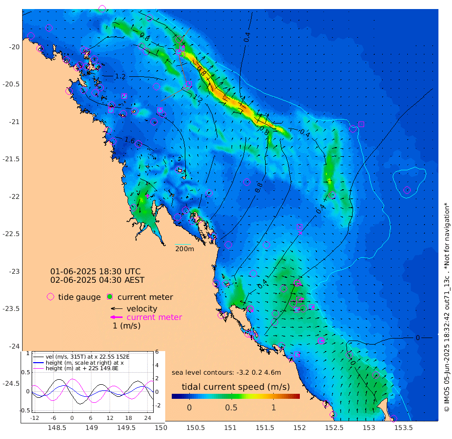 18cm/s -23T +10cm/s rms + 2cm/s 5T. Brampton I 18m 20cm/s -2T +9cm/s rms + 6cm/s 66T. Wigton I 38m 17cm/s 24T +7cm/s rms + 8cm/s 141T. Tern I 47m 29cm/s 34T +7cm/s rms + 12cm/s 54T. N Bugatti Rf 64m 20cm/s 42T +3cm/s rms + 13cm/s 178T. W Bugatti Rf 70m 12cm/s 39T +3cm/s rms + 3cm/s -130T. Creal Rf 69m 43cm/s 115T +7cm/s rms + 4cm/s 2T. North Rf 62m 32cm/s 137T +9cm/s rms + 2cm/s -56T. Cape Capricorn 26m 18cm/s 96T +5cm/s rms + 3cm/s 166T. L Musgrave I 42m 20cm/s 114T +9cm/s rms + 1cm/s -142T. Round Hill Hd 26m 4cm/s 62T +41cm/s rms + 48cm/s 116T. GBRELR 305m 11cm/s 122T +7cm/s rms + 6cm/s 123T. GBRCCH 92m 43cm/s 77T +8cm/s rms + 3cm/s -33T. GBRHIN 45m 27cm/s 90T +4cm/s rms + 2cm/s 41T. GBRHIS 46m 19cm/s 75T +16cm/s rms + 4cm/s -22T. GBROTE 59m 90cm Bell Cay 95cm Holbourne I 145cm Tern I 90cm Bugatti Rf 110cm Creal Rf 74cm White Tip I 29cm North Rf 35cm Rundle I 9cm L Musgrave I 17cm Saumarez Reef 69cm Kennedy Reef 67cm Unnamed Reef No. 2 96cm Abbot Point 102cm Bowen 116cm Tideway Reef 107cm Hayman Island 135cm Square Reef 128cm Double Bay 139cm Molle Island 116cm Cid Harbour 115cm Hook Island 115cm Border Island 123cm Haslewood Island 125cm Shute Harbour 137cm Thomas Island 143cm Credlin Reef 158cm East Repulse Island 137cm Blacksmith Island 161cm Laguna Quays 161cm Carlisle Island (Off) 164cm St. Bees Island 143cm Scawfell Island 156cm Penrith Island 171cm Mackay Outer Harbour 177cm Hay Point 176cm Prudhoe Island 146cm Middle Island (Percy Isles) 78cm Gannet Cay 31cm Elusive Reef 227cm Mcewin Islet 136cm Mumford Island 152cm Osborn Island 161cm Marquis Island 142cm Reef Point 113cm High Peak Island 91cm Port Clinton 73cm Peaked Island 25cm Karamea Bank 44cm Johnson Patch - NW 60cm Rosslyn Bay 59cm Middle Island (Keppel Isles) 72cm Port Alma 22cm Heron Island 17cm One Tree Islet 19cm Polmaise Reef 26cm Tryon Island 29cm Rock Cod Shoal 36cm Gatcombe Head 46cm Gladstone 36cm South Trees (Storm Surge) 6cm Clews Point 9cm Round Hill Head 5cm Lady Elliot Island 0cm Breaksea Spit 11cm Bundaberg (Burnett Heads) 7cm Elliot Heads 2cm Waddy Point (Fraser Island)