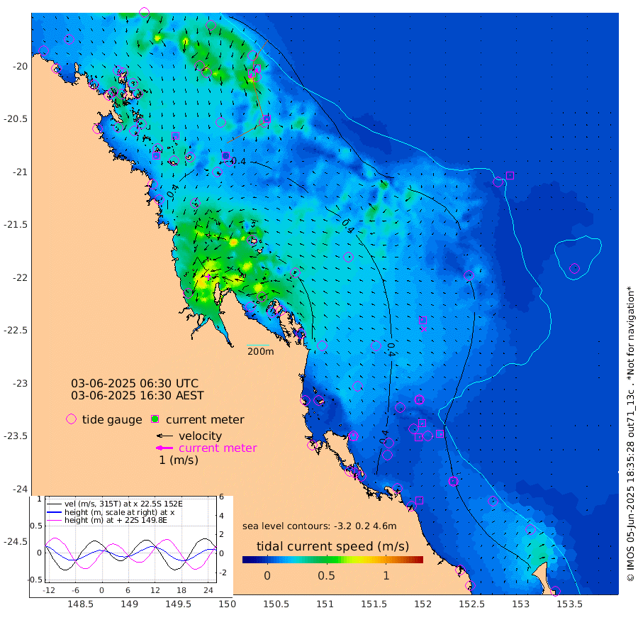 10cm/s -148T +10cm/s rms + 2cm/s 5T. Brampton I 18m 13cm/s 162T +9cm/s rms + 6cm/s 66T. Wigton I 38m 2cm/s 43T +7cm/s rms + 8cm/s 141T. Tern I 47m 22cm/s -177T +7cm/s rms + 12cm/s 54T. N Bugatti Rf 64m 30cm/s -154T +3cm/s rms + 13cm/s 178T. W Bugatti Rf 70m 7cm/s 168T +3cm/s rms + 3cm/s -130T. Creal Rf 69m 4cm/s -59T +7cm/s rms + 4cm/s 2T. North Rf 62m 10cm/s 0T +9cm/s rms + 2cm/s -56T. Cape Capricorn 26m 3cm/s -39T +5cm/s rms + 3cm/s 166T. L Musgrave I 42m 3cm/s 22T +9cm/s rms + 1cm/s -142T. Round Hill Hd 26m 1cm/s -87T +41cm/s rms + 48cm/s 116T. GBRELR 305m 9cm/s -56T +7cm/s rms + 6cm/s 123T. GBRCCH 92m 6cm/s 168T +8cm/s rms + 3cm/s -33T. GBRHIN 45m 5cm/s 96T +4cm/s rms + 2cm/s 41T. GBRHIS 46m 10cm/s 118T +16cm/s rms + 4cm/s -22T. GBROTE 59m 51cm Bell Cay 29cm Holbourne I 59cm Tern I 25cm Bugatti Rf 35cm Creal Rf 18cm White Tip I 31cm North Rf 47cm Rundle I 15cm L Musgrave I -3cm Saumarez Reef 31cm Kennedy Reef 22cm Unnamed Reef No. 2 25cm Abbot Point 27cm Bowen 28cm Tideway Reef 36cm Hayman Island 29cm Square Reef 40cm Double Bay 26cm Molle Island 27cm Cid Harbour 35cm Hook Island 23cm Border Island 23cm Haslewood Island 34cm Shute Harbour 42cm Thomas Island 44cm Credlin Reef 47cm East Repulse Island 35cm Blacksmith Island 43cm Laguna Quays 47cm Carlisle Island (Off) 50cm St. Bees Island 34cm Scawfell Island 54cm Penrith Island 60cm Mackay Outer Harbour 68cm Hay Point 73cm Prudhoe Island 83cm Middle Island (Percy Isles) 50cm Gannet Cay 10cm Elusive Reef 92cm Mcewin Islet 84cm Mumford Island 85cm Osborn Island 86cm Marquis Island 79cm Reef Point 63cm High Peak Island 75cm Port Clinton 66cm Peaked Island 32cm Karamea Bank 48cm Johnson Patch - NW 63cm Rosslyn Bay 63cm Middle Island (Keppel Isles) 72cm Port Alma 24cm Heron Island 31cm One Tree Islet 36cm Polmaise Reef 32cm Tryon Island 35cm Rock Cod Shoal 44cm Gatcombe Head 52cm Gladstone 48cm South Trees (Storm Surge) 32cm Clews Point 22cm Round Hill Head 11cm Lady Elliot Island 13cm Breaksea Spit 25cm Bundaberg (Burnett Heads) 20cm Elliot Heads 5cm Waddy Point (Fraser Island)