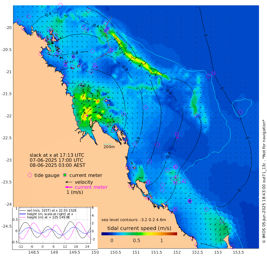7cm/s 142T +10cm/s rms + 2cm/s 5T. Brampton I 18m 4cm/s -98T +9cm/s rms + 6cm/s 66T. Wigton I 38m 11cm/s -155T +7cm/s rms + 8cm/s 141T. Tern I 47m 8cm/s -114T +7cm/s rms + 12cm/s 54T. N Bugatti Rf 64m 7cm/s -4T +3cm/s rms + 13cm/s 178T. W Bugatti Rf 70m 10cm/s -124T +3cm/s rms + 3cm/s -130T. Creal Rf 69m 16cm/s -70T +7cm/s rms + 4cm/s 2T. North Rf 62m 14cm/s -69T +9cm/s rms + 2cm/s -56T. Cape Capricorn 26m 2cm/s -100T +5cm/s rms + 3cm/s 166T. L Musgrave I 42m 10cm/s -82T +9cm/s rms + 1cm/s -142T. Round Hill Hd 26m 1cm/s -134T +41cm/s rms + 48cm/s 116T. GBRELR 305m 3cm/s -130T +7cm/s rms + 6cm/s 123T. GBRCCH 92m 26cm/s -86T +8cm/s rms + 3cm/s -33T. GBRHIN 45m 20cm/s -92T +4cm/s rms + 2cm/s 41T. GBRHIS 46m 18cm/s -95T +16cm/s rms + 4cm/s -22T. GBROTE 59m -77cm Bell Cay -45cm Holbourne I -110cm Tern I -45cm Bugatti Rf -72cm Creal Rf -28cm White Tip I -27cm North Rf -41cm Rundle I -8cm L Musgrave I -4cm Saumarez Reef -26cm Kennedy Reef -20cm Unnamed Reef No. 2 -35cm Abbot Point -41cm Bowen -55cm Tideway Reef -49cm Hayman Island -75cm Square Reef -65cm Double Bay -47cm Molle Island -58cm Cid Harbour -56cm Hook Island -55cm Border Island -58cm Haslewood Island -66cm Shute Harbour -87cm Thomas Island -88cm Credlin Reef -90cm East Repulse Island -85cm Blacksmith Island -100cm Laguna Quays -93cm Carlisle Island (Off) -115cm St. Bees Island -100cm Scawfell Island -101cm Penrith Island -123cm Mackay Outer Harbour -133cm Hay Point -146cm Prudhoe Island -133cm Middle Island (Percy Isles) -65cm Gannet Cay 1cm Elusive Reef -176cm Mcewin Islet -134cm Mumford Island -133cm Osborn Island -142cm Marquis Island -120cm Reef Point -94cm High Peak Island -92cm Port Clinton -87cm Peaked Island -22cm Karamea Bank -51cm Johnson Patch - NW -65cm Rosslyn Bay -66cm Middle Island (Keppel Isles) -78cm Port Alma -18cm Heron Island -25cm One Tree Islet -30cm Polmaise Reef -25cm Tryon Island -21cm Rock Cod Shoal -37cm Gatcombe Head -51cm Gladstone -43cm South Trees (Storm Surge) -18cm Clews Point -14cm Round Hill Head -4cm Lady Elliot Island -1cm Breaksea Spit -13cm Bundaberg (Burnett Heads) -10cm Elliot Heads -2cm Waddy Point (Fraser Island)