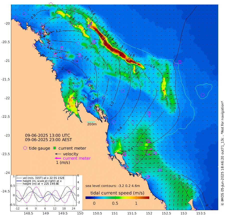 27cm/s -22T +10cm/s rms + 2cm/s 5T. Brampton I 18m 26cm/s -1T +9cm/s rms + 6cm/s 66T. Wigton I 38m 22cm/s 19T +7cm/s rms + 8cm/s 141T. Tern I 47m 41cm/s 31T +7cm/s rms + 12cm/s 54T. N Bugatti Rf 64m 33cm/s 40T +3cm/s rms + 13cm/s 178T. W Bugatti Rf 70m 19cm/s 24T +3cm/s rms + 3cm/s -130T. Creal Rf 69m 52cm/s 112T +7cm/s rms + 4cm/s 2T. North Rf 62m 40cm/s 139T +9cm/s rms + 2cm/s -56T. Cape Capricorn 26m 20cm/s 100T +5cm/s rms + 3cm/s 166T. L Musgrave I 42m 23cm/s 116T +9cm/s rms + 1cm/s -142T. Round Hill Hd 26m 5cm/s 44T +41cm/s rms + 48cm/s 116T. GBRELR 305m 15cm/s 113T +7cm/s rms + 6cm/s 123T. GBRCCH 92m 57cm/s 78T +8cm/s rms + 3cm/s -33T. GBRHIN 45m 36cm/s 91T +4cm/s rms + 2cm/s 41T. GBRHIS 46m 28cm/s 77T +16cm/s rms + 4cm/s -22T. GBROTE 59m 102cm Bell Cay 92cm Holbourne I 167cm Tern I 93cm Bugatti Rf 124cm Creal Rf 72cm White Tip I 28cm North Rf 31cm Rundle I 9cm L Musgrave I 15cm Saumarez Reef 69cm Kennedy Reef 57cm Unnamed Reef No. 2 81cm Abbot Point 91cm Bowen 116cm Tideway Reef 100cm Hayman Island 146cm Square Reef 120cm Double Bay 132cm Molle Island 117cm Cid Harbour 117cm Hook Island 115cm Border Island 119cm Haslewood Island 126cm Shute Harbour 154cm Thomas Island 150cm Credlin Reef 160cm East Repulse Island 155cm Blacksmith Island 178cm Laguna Quays 161cm Carlisle Island (Off) 185cm St. Bees Island 160cm Scawfell Island 166cm Penrith Island 195cm Mackay Outer Harbour 204cm Hay Point 210cm Prudhoe Island 182cm Middle Island (Percy Isles) 86cm Gannet Cay 24cm Elusive Reef 273cm Mcewin Islet 164cm Mumford Island 175cm Osborn Island 183cm Marquis Island 158cm Reef Point 124cm High Peak Island 103cm Port Clinton 86cm Peaked Island 20cm Karamea Bank 57cm Johnson Patch - NW 61cm Rosslyn Bay 58cm Middle Island (Keppel Isles) 75cm Port Alma 21cm Heron Island 22cm One Tree Islet 23cm Polmaise Reef 34cm Tryon Island 16cm Rock Cod Shoal 34cm Gatcombe Head 47cm Gladstone 36cm South Trees (Storm Surge) 8cm Clews Point 10cm Round Hill Head 6cm Lady Elliot Island 7cm Breaksea Spit 9cm Bundaberg (Burnett Heads) 5cm Elliot Heads 6cm Waddy Point (Fraser Island)