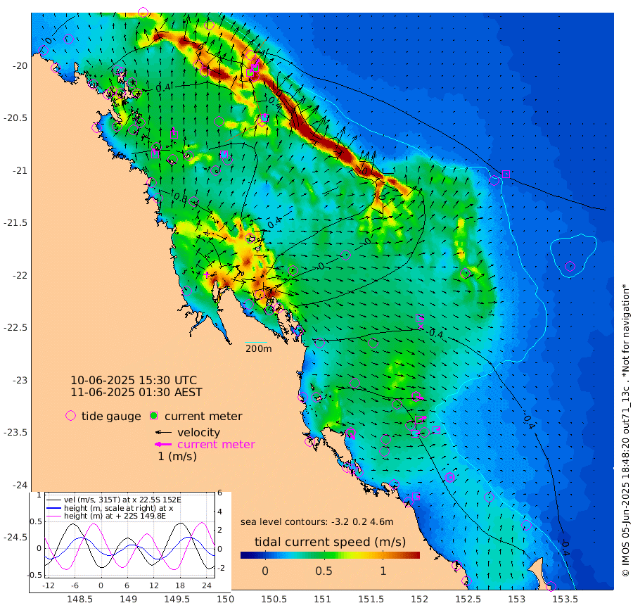 36cm/s -12T +10cm/s rms + 2cm/s 5T. Brampton I 18m 47cm/s -8T +9cm/s rms + 6cm/s 66T. Wigton I 38m 20cm/s 19T +7cm/s rms + 8cm/s 141T. Tern I 47m 58cm/s 20T +7cm/s rms + 12cm/s 54T. N Bugatti Rf 64m 64cm/s 32T +3cm/s rms + 13cm/s 178T. W Bugatti Rf 70m 25cm/s 6T +3cm/s rms + 3cm/s -130T. Creal Rf 69m 50cm/s 108T +7cm/s rms + 4cm/s 2T. North Rf 62m 44cm/s 149T +9cm/s rms + 2cm/s -56T. Cape Capricorn 26m 17cm/s 90T +5cm/s rms + 3cm/s 166T. L Musgrave I 42m 16cm/s 122T +9cm/s rms + 1cm/s -142T. Round Hill Hd 26m 5cm/s 46T +41cm/s rms + 48cm/s 116T. GBRELR 305m 30cm/s 115T +7cm/s rms + 6cm/s 123T. GBRCCH 92m 50cm/s 71T +8cm/s rms + 3cm/s -33T. GBRHIN 45m 26cm/s 84T +4cm/s rms + 2cm/s 41T. GBRHIS 46m 24cm/s 53T +16cm/s rms + 4cm/s -22T. GBROTE 59m -13cm Bell Cay 22cm Holbourne I 36cm Tern I 20cm Bugatti Rf 28cm Creal Rf 12cm White Tip I -50cm North Rf -72cm Rundle I -44cm L Musgrave I -25cm Saumarez Reef 5cm Kennedy Reef 1cm Unnamed Reef No. 2 18cm Abbot Point 23cm Bowen 42cm Tideway Reef 23cm Hayman Island 48cm Square Reef 46cm Double Bay 56cm Molle Island 29cm Cid Harbour 42cm Hook Island 38cm Border Island 41cm Haslewood Island 41cm Shute Harbour 52cm Thomas Island 40cm Credlin Reef 55cm East Repulse Island 47cm Blacksmith Island 71cm Laguna Quays 52cm Carlisle Island (Off) 60cm St. Bees Island 43cm Scawfell Island 39cm Penrith Island 62cm Mackay Outer Harbour 59cm Hay Point 60cm Prudhoe Island 19cm Middle Island (Percy Isles) -17cm Gannet Cay -11cm Elusive Reef 114cm Mcewin Islet -17cm Mumford Island -6cm Osborn Island -3cm Marquis Island -9cm Reef Point -10cm High Peak Island -37cm Port Clinton -54cm Peaked Island -56cm Karamea Bank -54cm Johnson Patch - NW -69cm Rosslyn Bay -73cm Middle Island (Keppel Isles) -71cm Port Alma -53cm Heron Island -60cm One Tree Islet -65cm Polmaise Reef -54cm Tryon Island -65cm Rock Cod Shoal -63cm Gatcombe Head -67cm Gladstone -71cm South Trees (Storm Surge) -69cm Clews Point -59cm Round Hill Head -42cm Lady Elliot Island -39cm Breaksea Spit -60cm Bundaberg (Burnett Heads) -68cm Elliot Heads -30cm Waddy Point (Fraser Island)