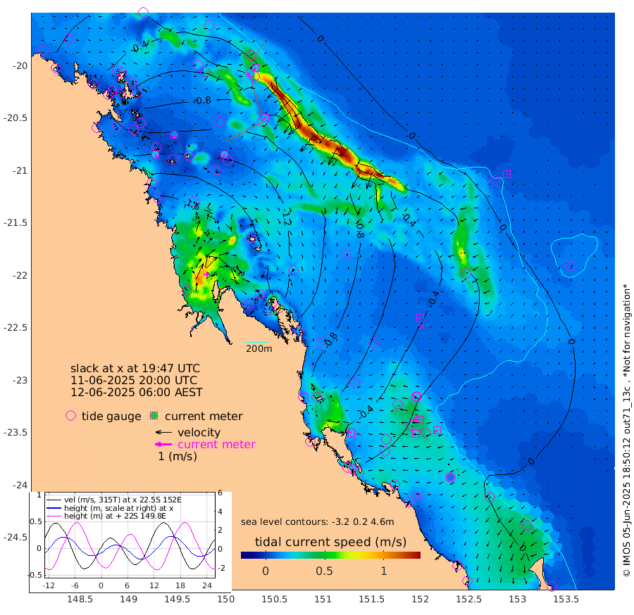 22cm/s 149T +10cm/s rms + 2cm/s 5T. Brampton I 18m 13cm/s 177T +9cm/s rms + 6cm/s 66T. Wigton I 38m 19cm/s -158T +7cm/s rms + 8cm/s 141T. Tern I 47m 22cm/s -149T +7cm/s rms + 12cm/s 54T. N Bugatti Rf 64m 18cm/s -141T +3cm/s rms + 13cm/s 178T. W Bugatti Rf 70m 17cm/s -148T +3cm/s rms + 3cm/s -130T. Creal Rf 69m 23cm/s -71T +7cm/s rms + 4cm/s 2T. North Rf 62m 20cm/s -54T +9cm/s rms + 2cm/s -56T. Cape Capricorn 26m 10cm/s -84T +5cm/s rms + 3cm/s 166T. L Musgrave I 42m 11cm/s -82T +9cm/s rms + 1cm/s -142T. Round Hill Hd 26m 4cm/s -177T +41cm/s rms + 48cm/s 116T. GBRELR 305m 7cm/s -114T +7cm/s rms + 6cm/s 123T. GBRCCH 92m 37cm/s -90T +8cm/s rms + 3cm/s -33T. GBRHIN 45m 25cm/s -94T +4cm/s rms + 2cm/s 41T. GBRHIS 46m 25cm/s -112T +16cm/s rms + 4cm/s -22T. GBROTE 59m -81cm Bell Cay -35cm Holbourne I -124cm Tern I -48cm Bugatti Rf -80cm Creal Rf -27cm White Tip I -23cm North Rf -31cm Rundle I -6cm L Musgrave I 6cm Saumarez Reef -21cm Kennedy Reef -12cm Unnamed Reef No. 2 -25cm Abbot Point -34cm Bowen -58cm Tideway Reef -51cm Hayman Island -82cm Square Reef -49cm Double Bay -62cm Molle Island -68cm Cid Harbour -53cm Hook Island -65cm Border Island -66cm Haslewood Island -70cm Shute Harbour -102cm Thomas Island -99cm Credlin Reef -104cm East Repulse Island -108cm Blacksmith Island -121cm Laguna Quays -105cm Carlisle Island (Off) -116cm St. Bees Island -111cm Scawfell Island -126cm Penrith Island -148cm Mackay Outer Harbour -159cm Hay Point -161cm Prudhoe Island -152cm Middle Island (Percy Isles) -75cm Gannet Cay 1cm Elusive Reef -240cm Mcewin Islet -145cm Mumford Island -164cm Osborn Island -168cm Marquis Island -146cm Reef Point -105cm High Peak Island -87cm Port Clinton -71cm Peaked Island -15cm Karamea Bank -52cm Johnson Patch - NW -59cm Rosslyn Bay -56cm Middle Island (Keppel Isles) -74cm Port Alma -16cm Heron Island -21cm One Tree Islet -25cm Polmaise Reef -32cm Tryon Island -15cm Rock Cod Shoal -34cm Gatcombe Head -48cm Gladstone -37cm South Trees (Storm Surge) -13cm Clews Point -12cm Round Hill Head -2cm Lady Elliot Island -5cm Breaksea Spit -8cm Bundaberg (Burnett Heads) -5cm Elliot Heads -7cm Waddy Point (Fraser Island)