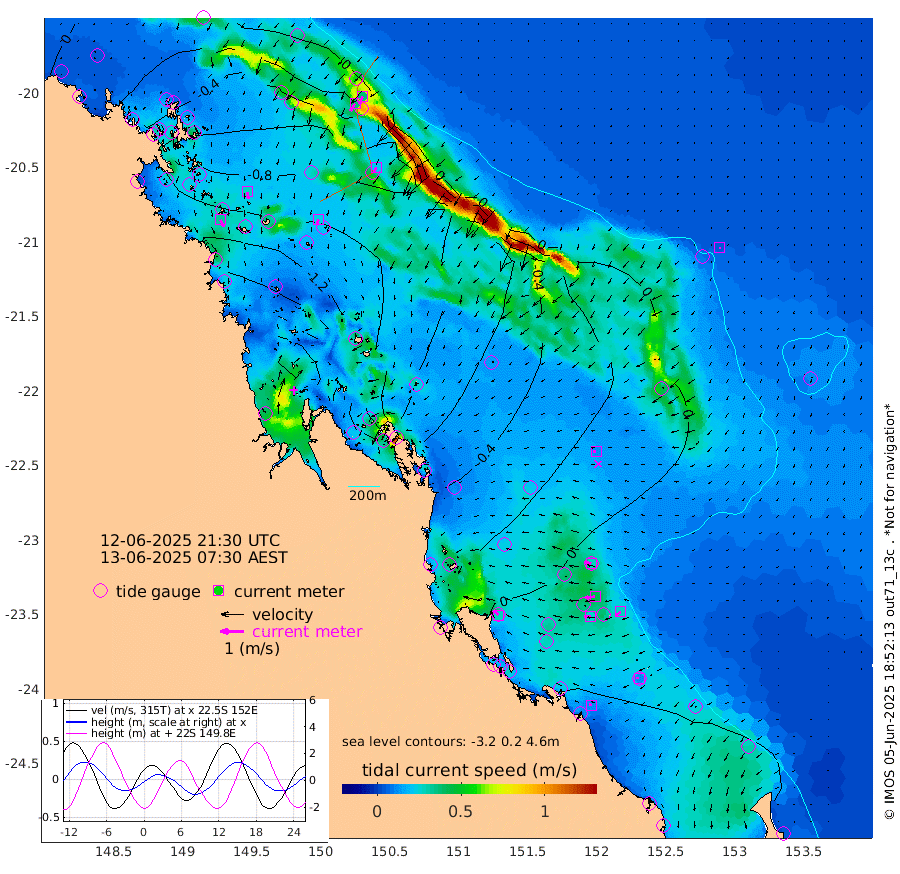 33cm/s 154T +10cm/s rms + 2cm/s 5T. Brampton I 18m 28cm/s 171T +9cm/s rms + 6cm/s 66T. Wigton I 38m 22cm/s -161T +7cm/s rms + 8cm/s 141T. Tern I 47m 36cm/s -156T +7cm/s rms + 12cm/s 54T. N Bugatti Rf 64m 36cm/s -147T +3cm/s rms + 13cm/s 178T. W Bugatti Rf 70m 21cm/s -161T +3cm/s rms + 3cm/s -130T. Creal Rf 69m 29cm/s -72T +7cm/s rms + 4cm/s 2T. North Rf 62m 27cm/s -45T +9cm/s rms + 2cm/s -56T. Cape Capricorn 26m 12cm/s -84T +5cm/s rms + 3cm/s 166T. L Musgrave I 42m 11cm/s -77T +9cm/s rms + 1cm/s -142T. Round Hill Hd 26m 6cm/s -177T +41cm/s rms + 48cm/s 116T. GBRELR 305m 13cm/s -93T +7cm/s rms + 6cm/s 123T. GBRCCH 92m 42cm/s -97T +8cm/s rms + 3cm/s -33T. GBRHIN 45m 26cm/s -95T +4cm/s rms + 2cm/s 41T. GBRHIS 46m 27cm/s -124T +16cm/s rms + 4cm/s -22T. GBROTE 59m -50cm Bell Cay -24cm Holbourne I -97cm Tern I -36cm Bugatti Rf -62cm Creal Rf -18cm White Tip I 2cm North Rf 5cm Rundle I 11cm L Musgrave I 19cm Saumarez Reef -11cm Kennedy Reef -3cm Unnamed Reef No. 2 -16cm Abbot Point -25cm Bowen -50cm Tideway Reef -41cm Hayman Island -68cm Square Reef -40cm Double Bay -60cm Molle Island -54cm Cid Harbour -45cm Hook Island -55cm Border Island -55cm Haslewood Island -59cm Shute Harbour -87cm Thomas Island -80cm Credlin Reef -88cm East Repulse Island -89cm Blacksmith Island -107cm Laguna Quays -86cm Carlisle Island (Off) -90cm St. Bees Island -86cm Scawfell Island -101cm Penrith Island -125cm Mackay Outer Harbour -132cm Hay Point -131cm Prudhoe Island -112cm Middle Island (Percy Isles) -46cm Gannet Cay 5cm Elusive Reef -217cm Mcewin Islet -95cm Mumford Island -116cm Osborn Island -117cm Marquis Island -100cm Reef Point -68cm High Peak Island -44cm Port Clinton -24cm Peaked Island 10cm Karamea Bank -16cm Johnson Patch - NW -15cm Rosslyn Bay -10cm Middle Island (Keppel Isles) -23cm Port Alma 9cm Heron Island 6cm One Tree Islet 6cm Polmaise Reef -5cm Tryon Island 14cm Rock Cod Shoal 0cm Gatcombe Head -7cm Gladstone 2cm South Trees (Storm Surge) 15cm Clews Point 13cm Round Hill Head 13cm Lady Elliot Island 7cm Breaksea Spit 19cm Bundaberg (Burnett Heads) 25cm Elliot Heads 2cm Waddy Point (Fraser Island)