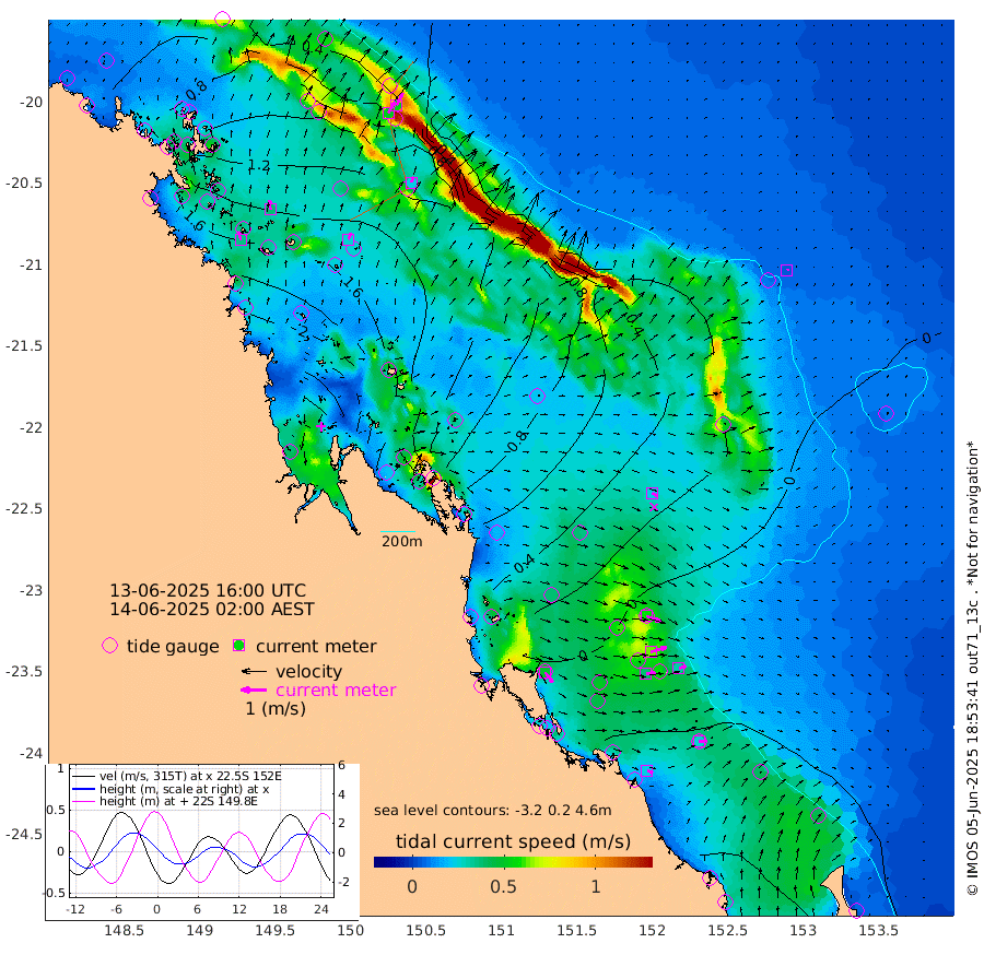 35cm/s -18T +10cm/s rms + 2cm/s 5T. Brampton I 18m 38cm/s -6T +9cm/s rms + 6cm/s 66T. Wigton I 38m 26cm/s 23T +7cm/s rms + 8cm/s 141T. Tern I 47m 55cm/s 25T +7cm/s rms + 12cm/s 54T. N Bugatti Rf 64m 52cm/s 31T +3cm/s rms + 13cm/s 178T. W Bugatti Rf 70m 23cm/s 22T +3cm/s rms + 3cm/s -130T. Creal Rf 69m 59cm/s 111T +7cm/s rms + 4cm/s 2T. North Rf 62m 48cm/s 142T +9cm/s rms + 2cm/s -56T. Cape Capricorn 26m 26cm/s 94T +5cm/s rms + 3cm/s 166T. L Musgrave I 42m 24cm/s 117T +9cm/s rms + 1cm/s -142T. Round Hill Hd 26m 6cm/s 41T +41cm/s rms + 48cm/s 116T. GBRELR 305m 24cm/s 115T +7cm/s rms + 6cm/s 123T. GBRCCH 92m 63cm/s 74T +8cm/s rms + 3cm/s -33T. GBRHIN 45m 37cm/s 89T +4cm/s rms + 2cm/s 41T. GBRHIS 46m 29cm/s 67T +16cm/s rms + 4cm/s -22T. GBROTE 59m 75cm Bell Cay 76cm Holbourne I 145cm Tern I 81cm Bugatti Rf 107cm Creal Rf 59cm White Tip I 1cm North Rf -4cm Rundle I -13cm L Musgrave I -2cm Saumarez Reef 54cm Kennedy Reef 40cm Unnamed Reef No. 2 70cm Abbot Point 81cm Bowen 106cm Tideway Reef 92cm Hayman Island 134cm Square Reef 99cm Double Bay 132cm Molle Island 111cm Cid Harbour 100cm Hook Island 114cm Border Island 114cm Haslewood Island 116cm Shute Harbour 140cm Thomas Island 136cm Credlin Reef 148cm East Repulse Island 151cm Blacksmith Island 170cm Laguna Quays 149cm Carlisle Island (Off) 161cm St. Bees Island 148cm Scawfell Island 159cm Penrith Island 181cm Mackay Outer Harbour 187cm Hay Point 181cm Prudhoe Island 151cm Middle Island (Percy Isles) 65cm Gannet Cay 12cm Elusive Reef 276cm Mcewin Islet 134cm Mumford Island 156cm Osborn Island 159cm Marquis Island 138cm Reef Point 99cm High Peak Island 60cm Port Clinton 37cm Peaked Island -11cm Karamea Bank 22cm Johnson Patch - NW 22cm Rosslyn Bay 16cm Middle Island (Keppel Isles) 35cm Port Alma -5cm Heron Island -8cm One Tree Islet -7cm Polmaise Reef 6cm Tryon Island -14cm Rock Cod Shoal 4cm Gatcombe Head 14cm Gladstone 2cm South Trees (Storm Surge) -21cm Clews Point -16cm Round Hill Head -16cm Lady Elliot Island -13cm Breaksea Spit -16cm Bundaberg (Burnett Heads) -18cm Elliot Heads -10cm Waddy Point (Fraser Island)