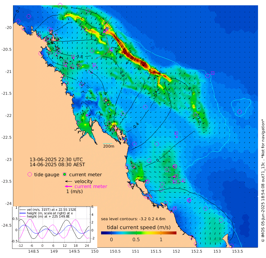 35cm/s 155T +10cm/s rms + 2cm/s 5T. Brampton I 18m 32cm/s 170T +9cm/s rms + 6cm/s 66T. Wigton I 38m 22cm/s -162T +7cm/s rms + 8cm/s 141T. Tern I 47m 38cm/s -156T +7cm/s rms + 12cm/s 54T. N Bugatti Rf 64m 39cm/s -148T +3cm/s rms + 13cm/s 178T. W Bugatti Rf 70m 21cm/s -165T +3cm/s rms + 3cm/s -130T. Creal Rf 69m 30cm/s -72T +7cm/s rms + 4cm/s 2T. North Rf 62m 28cm/s -42T +9cm/s rms + 2cm/s -56T. Cape Capricorn 26m 11cm/s -82T +5cm/s rms + 3cm/s 166T. L Musgrave I 42m 11cm/s -75T +9cm/s rms + 1cm/s -142T. Round Hill Hd 26m 6cm/s -178T +41cm/s rms + 48cm/s 116T. GBRELR 305m 14cm/s -90T +7cm/s rms + 6cm/s 123T. GBRCCH 92m 41cm/s -100T +8cm/s rms + 3cm/s -33T. GBRHIN 45m 25cm/s -95T +4cm/s rms + 2cm/s 41T. GBRHIS 46m 27cm/s -128T +16cm/s rms + 4cm/s -22T. GBROTE 59m -40cm Bell Cay -23cm Holbourne I -86cm Tern I -35cm Bugatti Rf -56cm Creal Rf -19cm White Tip I 7cm North Rf 14cm Rundle I 14cm L Musgrave I 21cm Saumarez Reef -12cm Kennedy Reef -4cm Unnamed Reef No. 2 -18cm Abbot Point -26cm Bowen -49cm Tideway Reef -41cm Hayman Island -65cm Square Reef -38cm Double Bay -64cm Molle Island -51cm Cid Harbour -44cm Hook Island -54cm Border Island -53cm Haslewood Island -56cm Shute Harbour -81cm Thomas Island -74cm Credlin Reef -83cm East Repulse Island -82cm Blacksmith Island -100cm Laguna Quays -80cm Carlisle Island (Off) -79cm St. Bees Island -76cm Scawfell Island -93cm Penrith Island -114cm Mackay Outer Harbour -119cm Hay Point -116cm Prudhoe Island -95cm Middle Island (Percy Isles) -36cm Gannet Cay 3cm Elusive Reef -198cm Mcewin Islet -77cm Mumford Island -99cm Osborn Island -96cm Marquis Island -84cm Reef Point -54cm High Peak Island -30cm Port Clinton -9cm Peaked Island 16cm Karamea Bank -5cm Johnson Patch - NW -1cm Rosslyn Bay 4cm Middle Island (Keppel Isles) -7cm Port Alma 14cm Heron Island 12cm One Tree Islet 14cm Polmaise Reef 1cm Tryon Island 20cm Rock Cod Shoal 9cm Gatcombe Head 5cm Gladstone 13cm South Trees (Storm Surge) 21cm Clews Point 19cm Round Hill Head 16cm Lady Elliot Island 9cm Breaksea Spit 25cm Bundaberg (Burnett Heads) 32cm Elliot Heads 3cm Waddy Point (Fraser Island)