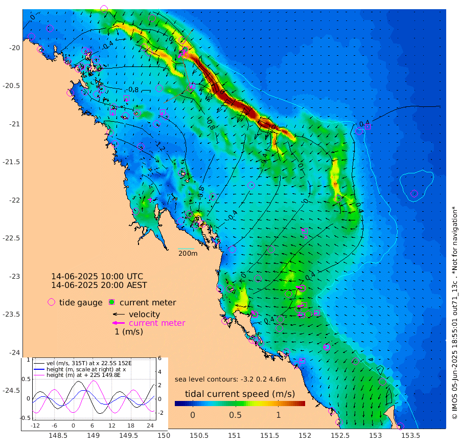 24cm/s 176T +10cm/s rms + 2cm/s 5T. Brampton I 18m 28cm/s 179T +9cm/s rms + 6cm/s 66T. Wigton I 38m 23cm/s -146T +7cm/s rms + 8cm/s 141T. Tern I 47m 44cm/s -156T +7cm/s rms + 12cm/s 54T. N Bugatti Rf 64m 47cm/s -147T +3cm/s rms + 13cm/s 178T. W Bugatti Rf 70m 20cm/s -148T +3cm/s rms + 3cm/s -130T. Creal Rf 69m 55cm/s -74T +7cm/s rms + 4cm/s 2T. North Rf 62m 43cm/s -38T +9cm/s rms + 2cm/s -56T. Cape Capricorn 26m 24cm/s -104T +5cm/s rms + 3cm/s 166T. L Musgrave I 42m 18cm/s -73T +9cm/s rms + 1cm/s -142T. Round Hill Hd 26m 7cm/s -98T +41cm/s rms + 48cm/s 116T. GBRELR 305m 33cm/s -64T +7cm/s rms + 6cm/s 123T. GBRCCH 92m 56cm/s -102T +8cm/s rms + 3cm/s -33T. GBRHIN 45m 35cm/s -92T +4cm/s rms + 2cm/s 41T. GBRHIS 46m 30cm/s -106T +16cm/s rms + 4cm/s -22T. GBROTE 59m -32cm Bell Cay -22cm Holbourne I -91cm Tern I -26cm Bugatti Rf -55cm Creal Rf -4cm White Tip I 43cm North Rf 43cm Rundle I 53cm L Musgrave I 41cm Saumarez Reef -7cm Kennedy Reef 15cm Unnamed Reef No. 2 -16cm Abbot Point -26cm Bowen -46cm Tideway Reef -36cm Hayman Island -68cm Square Reef -37cm Double Bay -58cm Molle Island -59cm Cid Harbour -43cm Hook Island -60cm Border Island -63cm Haslewood Island -59cm Shute Harbour -83cm Thomas Island -77cm Credlin Reef -92cm East Repulse Island -99cm Blacksmith Island -113cm Laguna Quays -94cm Carlisle Island (Off) -112cm St. Bees Island -103cm Scawfell Island -105cm Penrith Island -124cm Mackay Outer Harbour -130cm Hay Point -121cm Prudhoe Island -98cm Middle Island (Percy Isles) -30cm Gannet Cay 40cm Elusive Reef -227cm Mcewin Islet -92cm Mumford Island -117cm Osborn Island -123cm Marquis Island -99cm Reef Point -57cm High Peak Island -18cm Port Clinton 5cm Peaked Island 54cm Karamea Bank 23cm Johnson Patch - NW 17cm Rosslyn Bay 25cm Middle Island (Keppel Isles) 1cm Port Alma 48cm Heron Island 56cm One Tree Islet 47cm Polmaise Reef 44cm Tryon Island 56cm Rock Cod Shoal 30cm Gatcombe Head 19cm Gladstone 32cm South Trees (Storm Surge) 58cm Clews Point 53cm Round Hill Head 57cm Lady Elliot Island 59cm Breaksea Spit 48cm Bundaberg (Burnett Heads) 47cm Elliot Heads 52cm Waddy Point (Fraser Island)