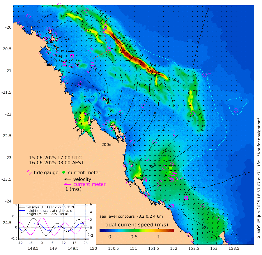 27cm/s -21T +10cm/s rms + 2cm/s 5T. Brampton I 18m 26cm/s -4T +9cm/s rms + 6cm/s 66T. Wigton I 38m 23cm/s 25T +7cm/s rms + 8cm/s 141T. Tern I 47m 42cm/s 29T +7cm/s rms + 12cm/s 54T. N Bugatti Rf 64m 37cm/s 32T +3cm/s rms + 13cm/s 178T. W Bugatti Rf 70m 17cm/s 34T +3cm/s rms + 3cm/s -130T. Creal Rf 69m 52cm/s 112T +7cm/s rms + 4cm/s 2T. North Rf 62m 40cm/s 140T +9cm/s rms + 2cm/s -56T. Cape Capricorn 26m 26cm/s 96T +5cm/s rms + 3cm/s 166T. L Musgrave I 42m 22cm/s 114T +9cm/s rms + 1cm/s -142T. Round Hill Hd 26m 5cm/s 44T +41cm/s rms + 48cm/s 116T. GBRELR 305m 18cm/s 115T +7cm/s rms + 6cm/s 123T. GBRCCH 92m 57cm/s 77T +8cm/s rms + 3cm/s -33T. GBRHIN 45m 35cm/s 90T +4cm/s rms + 2cm/s 41T. GBRHIS 46m 28cm/s 69T +16cm/s rms + 4cm/s -22T. GBROTE 59m 98cm Bell Cay 85cm Holbourne I 163cm Tern I 92cm Bugatti Rf 120cm Creal Rf 70cm White Tip I 24cm North Rf 27cm Rundle I 3cm L Musgrave I 9cm Saumarez Reef 66cm Kennedy Reef 53cm Unnamed Reef No. 2 84cm Abbot Point 94cm Bowen 116cm Tideway Reef 107cm Hayman Island 146cm Square Reef 104cm Double Bay 145cm Molle Island 129cm Cid Harbour 107cm Hook Island 128cm Border Island 129cm Haslewood Island 128cm Shute Harbour 151cm Thomas Island 154cm Credlin Reef 166cm East Repulse Island 166cm Blacksmith Island 181cm Laguna Quays 168cm Carlisle Island (Off) 171cm St. Bees Island 162cm Scawfell Island 181cm Penrith Island 196cm Mackay Outer Harbour 204cm Hay Point 192cm Prudhoe Island 172cm Middle Island (Percy Isles) 88cm Gannet Cay 22cm Elusive Reef 288cm Mcewin Islet 166cm Mumford Island 195cm Osborn Island 198cm Marquis Island 176cm Reef Point 126cm High Peak Island 89cm Port Clinton 65cm Peaked Island 13cm Karamea Bank 47cm Johnson Patch - NW 57cm Rosslyn Bay 52cm Middle Island (Keppel Isles) 75cm Port Alma 17cm Heron Island 13cm One Tree Islet 17cm Polmaise Reef 30cm Tryon Island 16cm Rock Cod Shoal 34cm Gatcombe Head 47cm Gladstone 34cm South Trees (Storm Surge) 3cm Clews Point 6cm Round Hill Head -2cm Lady Elliot Island -2cm Breaksea Spit 7cm Bundaberg (Burnett Heads) 7cm Elliot Heads 0cm Waddy Point (Fraser Island)