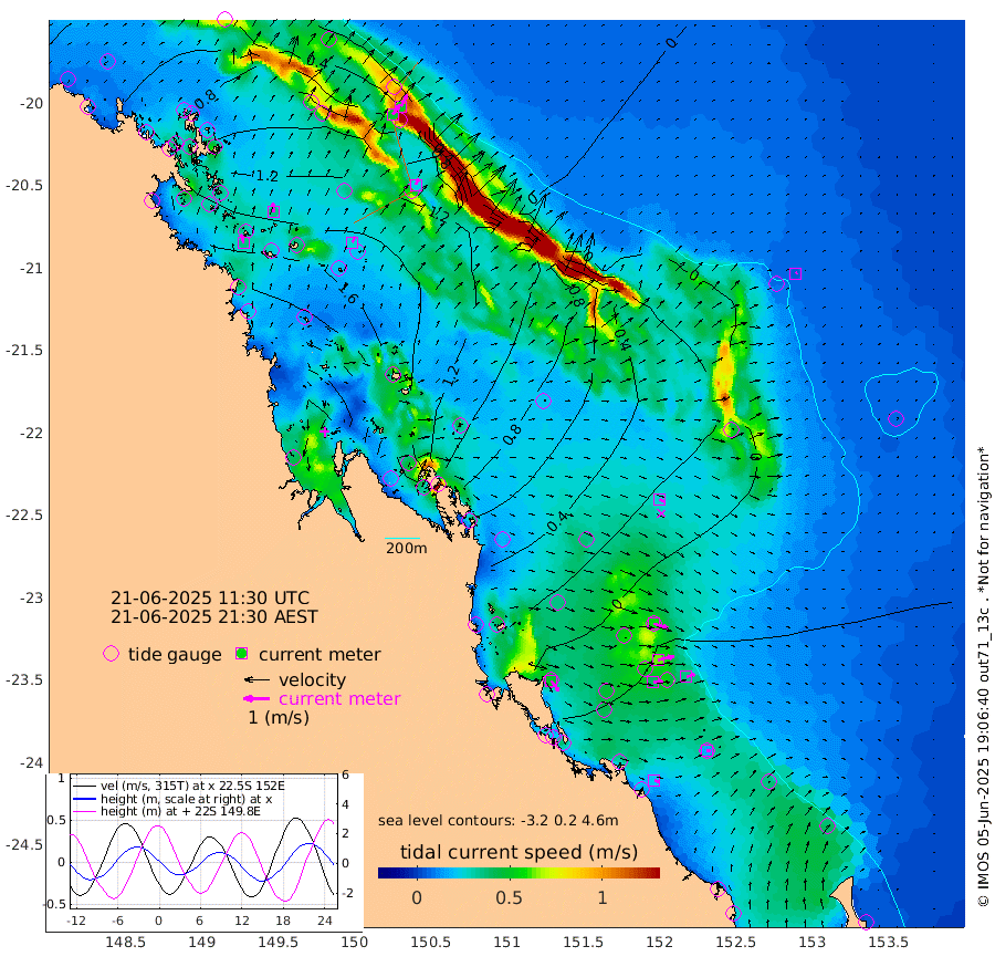 35cm/s -16T +10cm/s rms + 2cm/s 5T. Brampton I 18m 36cm/s -3T +9cm/s rms + 6cm/s 66T. Wigton I 38m 25cm/s 25T +7cm/s rms + 8cm/s 141T. Tern I 47m 52cm/s 27T +7cm/s rms + 12cm/s 54T. N Bugatti Rf 64m 47cm/s 37T +3cm/s rms + 13cm/s 178T. W Bugatti Rf 70m 24cm/s 26T +3cm/s rms + 3cm/s -130T. Creal Rf 69m 57cm/s 107T +7cm/s rms + 4cm/s 2T. North Rf 62m 49cm/s 143T +9cm/s rms + 2cm/s -56T. Cape Capricorn 26m 16cm/s 90T +5cm/s rms + 3cm/s 166T. L Musgrave I 42m 21cm/s 112T +9cm/s rms + 1cm/s -142T. Round Hill Hd 26m 6cm/s 53T +41cm/s rms + 48cm/s 116T. GBRELR 305m 27cm/s 113T +7cm/s rms + 6cm/s 123T. GBRCCH 92m 63cm/s 77T +8cm/s rms + 3cm/s -33T. GBRHIN 45m 39cm/s 89T +4cm/s rms + 2cm/s 41T. GBRHIS 46m 34cm/s 71T +16cm/s rms + 4cm/s -22T. GBROTE 59m 63cm Bell Cay 59cm Holbourne I 137cm Tern I 67cm Bugatti Rf 96cm Creal Rf 44cm White Tip I -13cm North Rf -20cm Rundle I -25cm L Musgrave I -13cm Saumarez Reef 42cm Kennedy Reef 27cm Unnamed Reef No. 2 60cm Abbot Point 71cm Bowen 94cm Tideway Reef 79cm Hayman Island 121cm Square Reef 77cm Double Bay 109cm Molle Island 111cm Cid Harbour 82cm Hook Island 103cm Border Island 107cm Haslewood Island 106cm Shute Harbour 136cm Thomas Island 128cm Credlin Reef 149cm East Repulse Island 153cm Blacksmith Island 162cm Laguna Quays 141cm Carlisle Island (Off) 165cm St. Bees Island 150cm Scawfell Island 142cm Penrith Island 171cm Mackay Outer Harbour 176cm Hay Point 165cm Prudhoe Island 124cm Middle Island (Percy Isles) 46cm Gannet Cay -4cm Elusive Reef 245cm Mcewin Islet 121cm Mumford Island 150cm Osborn Island 153cm Marquis Island 136cm Reef Point 83cm High Peak Island 36cm Port Clinton 26cm Peaked Island -23cm Karamea Bank -2cm Johnson Patch - NW 6cm Rosslyn Bay 4cm Middle Island (Keppel Isles) 15cm Port Alma -21cm Heron Island -29cm One Tree Islet -25cm Polmaise Reef -2cm Tryon Island -27cm Rock Cod Shoal -15cm Gatcombe Head -6cm Gladstone -15cm South Trees (Storm Surge) -35cm Clews Point -30cm Round Hill Head -28cm Lady Elliot Island -26cm Breaksea Spit -33cm Bundaberg (Burnett Heads) -32cm Elliot Heads -20cm Waddy Point (Fraser Island)