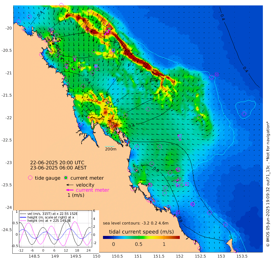 42cm/s 165T +10cm/s rms + 2cm/s 5T. Brampton I 18m 47cm/s 170T +9cm/s rms + 6cm/s 66T. Wigton I 38m 21cm/s -162T +7cm/s rms + 8cm/s 141T. Tern I 47m 61cm/s -161T +7cm/s rms + 12cm/s 54T. N Bugatti Rf 64m 66cm/s -150T +3cm/s rms + 13cm/s 178T. W Bugatti Rf 70m 27cm/s -170T +3cm/s rms + 3cm/s -130T. Creal Rf 69m 33cm/s -77T +7cm/s rms + 4cm/s 2T. North Rf 62m 35cm/s -32T +9cm/s rms + 2cm/s -56T. Cape Capricorn 26m 10cm/s -91T +5cm/s rms + 3cm/s 166T. L Musgrave I 42m 8cm/s -74T +9cm/s rms + 1cm/s -142T. Round Hill Hd 26m 5cm/s -167T +41cm/s rms + 48cm/s 116T. GBRELR 305m 26cm/s -76T +7cm/s rms + 6cm/s 123T. GBRCCH 92m 39cm/s -112T +8cm/s rms + 3cm/s -33T. GBRHIN 45m 22cm/s -97T +4cm/s rms + 2cm/s 41T. GBRHIS 46m 24cm/s -137T +16cm/s rms + 4cm/s -22T. GBROTE 59m 37cm Bell Cay 33cm Holbourne I -1cm Tern I 18cm Bugatti Rf 7cm Creal Rf 28cm White Tip I 65cm North Rf 90cm Rundle I 52cm L Musgrave I 40cm Saumarez Reef 39cm Kennedy Reef 43cm Unnamed Reef No. 2 33cm Abbot Point 26cm Bowen 4cm Tideway Reef 20cm Hayman Island -3cm Square Reef 33cm Double Bay 10cm Molle Island 1cm Cid Harbour 16cm Hook Island -6cm Border Island -2cm Haslewood Island 4cm Shute Harbour -17cm Thomas Island -5cm Credlin Reef -17cm East Repulse Island -23cm Blacksmith Island -31cm Laguna Quays -8cm Carlisle Island (Off) -15cm St. Bees Island -14cm Scawfell Island -5cm Penrith Island -27cm Mackay Outer Harbour -25cm Hay Point -16cm Prudhoe Island 25cm Middle Island (Percy Isles) 42cm Gannet Cay 35cm Elusive Reef -84cm Mcewin Islet 40cm Mumford Island 14cm Osborn Island 16cm Marquis Island 21cm Reef Point 38cm High Peak Island 76cm Port Clinton 81cm Peaked Island 72cm Karamea Bank 77cm Johnson Patch - NW 91cm Rosslyn Bay 94cm Middle Island (Keppel Isles) 97cm Port Alma 69cm Heron Island 73cm One Tree Islet 78cm Polmaise Reef 59cm Tryon Island 82cm Rock Cod Shoal 83cm Gatcombe Head 87cm Gladstone 90cm South Trees (Storm Surge) 77cm Clews Point 67cm Round Hill Head 49cm Lady Elliot Island 43cm Breaksea Spit 76cm Bundaberg (Burnett Heads) 80cm Elliot Heads 29cm Waddy Point (Fraser Island)