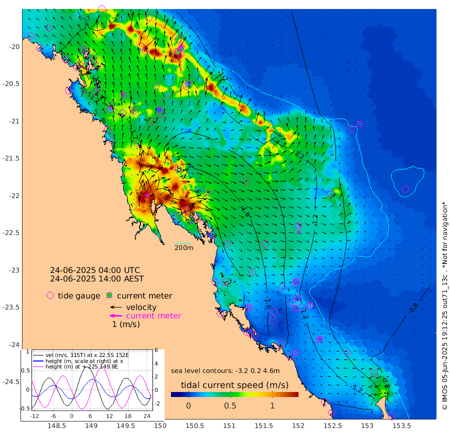 29cm/s -4T +10cm/s rms + 2cm/s 5T. Brampton I 18m 39cm/s -16T +9cm/s rms + 6cm/s 66T. Wigton I 38m 8cm/s 15T +7cm/s rms + 8cm/s 141T. Tern I 47m 41cm/s 4T +7cm/s rms + 12cm/s 54T. N Bugatti Rf 64m 60cm/s 27T +3cm/s rms + 13cm/s 178T. W Bugatti Rf 70m 22cm/s -5T +3cm/s rms + 3cm/s -130T. Creal Rf 69m 8cm/s -9T +7cm/s rms + 4cm/s 2T. North Rf 62m 12cm/s 174T +9cm/s rms + 2cm/s -56T. Cape Capricorn 26m 10cm/s -54T +5cm/s rms + 3cm/s 166T. L Musgrave I 42m 12cm/s -54T +9cm/s rms + 1cm/s -142T. Round Hill Hd 26m 4cm/s -11T +41cm/s rms + 48cm/s 116T. GBRELR 305m 25cm/s 98T +7cm/s rms + 6cm/s 123T. GBRCCH 92m 7cm/s 3T +8cm/s rms + 3cm/s -33T. GBRHIN 45m 6cm/s -48T +4cm/s rms + 2cm/s 41T. GBRHIS 46m 19cm/s -7T +16cm/s rms + 4cm/s -22T. GBROTE 59m -156cm Bell Cay -141cm Holbourne I -169cm Tern I -126cm Bugatti Rf -137cm Creal Rf -120cm White Tip I -128cm North Rf -162cm Rundle I -92cm L Musgrave I -86cm Saumarez Reef -134cm Kennedy Reef -128cm Unnamed Reef No. 2 -140cm Abbot Point -140cm Bowen -133cm Tideway Reef -140cm Hayman Island -153cm Square Reef -154cm Double Bay -151cm Molle Island -141cm Cid Harbour -139cm Hook Island -127cm Border Island -131cm Haslewood Island -141cm Shute Harbour -139cm Thomas Island -158cm Credlin Reef -154cm East Repulse Island -144cm Blacksmith Island -141cm Laguna Quays -160cm Carlisle Island (Off) -169cm St. Bees Island -147cm Scawfell Island -165cm Penrith Island -159cm Mackay Outer Harbour -169cm Hay Point -175cm Prudhoe Island -199cm Middle Island (Percy Isles) -141cm Gannet Cay -88cm Elusive Reef -143cm Mcewin Islet -216cm Mumford Island -206cm Osborn Island -213cm Marquis Island -202cm Reef Point -178cm High Peak Island -196cm Port Clinton -196cm Peaked Island -132cm Karamea Bank -162cm Johnson Patch - NW -192cm Rosslyn Bay -196cm Middle Island (Keppel Isles) -212cm Port Alma -126cm Heron Island -130cm One Tree Islet -138cm Polmaise Reef -135cm Tryon Island -145cm Rock Cod Shoal -152cm Gatcombe Head -172cm Gladstone -166cm South Trees (Storm Surge) -124cm Clews Point -113cm Round Hill Head -85cm Lady Elliot Island -80cm Breaksea Spit -123cm Bundaberg (Burnett Heads) -128cm Elliot Heads -58cm Waddy Point (Fraser Island)