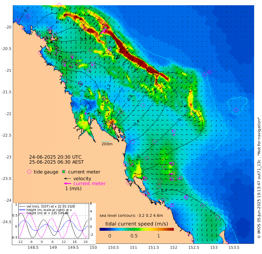 45cm/s 159T +10cm/s rms + 2cm/s 5T. Brampton I 18m 44cm/s 172T +9cm/s rms + 6cm/s 66T. Wigton I 38m 31cm/s -159T +7cm/s rms + 8cm/s 141T. Tern I 47m 62cm/s -157T +7cm/s rms + 12cm/s 54T. N Bugatti Rf 64m 62cm/s -146T +3cm/s rms + 13cm/s 178T. W Bugatti Rf 70m 29cm/s -158T +3cm/s rms + 3cm/s -130T. Creal Rf 69m 47cm/s -72T +7cm/s rms + 4cm/s 2T. North Rf 62m 44cm/s -39T +9cm/s rms + 2cm/s -56T. Cape Capricorn 26m 15cm/s -89T +5cm/s rms + 3cm/s 166T. L Musgrave I 42m 17cm/s -75T +9cm/s rms + 1cm/s -142T. Round Hill Hd 26m 6cm/s -158T +41cm/s rms + 48cm/s 116T. GBRELR 305m 23cm/s -81T +7cm/s rms + 6cm/s 123T. GBRCCH 92m 60cm/s -102T +8cm/s rms + 3cm/s -33T. GBRHIN 45m 38cm/s -94T +4cm/s rms + 2cm/s 41T. GBRHIS 46m 36cm/s -121T +16cm/s rms + 4cm/s -22T. GBROTE 59m -46cm Bell Cay -19cm Holbourne I -111cm Tern I -39cm Bugatti Rf -70cm Creal Rf -15cm White Tip I 22cm North Rf 32cm Rundle I 29cm L Musgrave I 26cm Saumarez Reef 2cm Kennedy Reef 4cm Unnamed Reef No. 2 -19cm Abbot Point -31cm Bowen -61cm Tideway Reef -46cm Hayman Island -83cm Square Reef -40cm Double Bay -68cm Molle Island -74cm Cid Harbour -51cm Hook Island -72cm Border Island -79cm Haslewood Island -73cm Shute Harbour -107cm Thomas Island -103cm Credlin Reef -125cm East Repulse Island -117cm Blacksmith Island -135cm Laguna Quays -118cm Carlisle Island (Off) -132cm St. Bees Island -120cm Scawfell Island -121cm Penrith Island -151cm Mackay Outer Harbour -157cm Hay Point -146cm Prudhoe Island -102cm Middle Island (Percy Isles) -36cm Gannet Cay 17cm Elusive Reef -255cm Mcewin Islet -88cm Mumford Island -128cm Osborn Island -138cm Marquis Island -114cm Reef Point -67cm High Peak Island -21cm Port Clinton -4cm Peaked Island 31cm Karamea Bank 14cm Johnson Patch - NW 10cm Rosslyn Bay 13cm Middle Island (Keppel Isles) 2cm Port Alma 29cm Heron Island 38cm One Tree Islet 37cm Polmaise Reef 13cm Tryon Island 34cm Rock Cod Shoal 25cm Gatcombe Head 18cm Gladstone 28cm South Trees (Storm Surge) 46cm Clews Point 35cm Round Hill Head 29cm Lady Elliot Island 27cm Breaksea Spit 43cm Bundaberg (Burnett Heads) 47cm Elliot Heads 15cm Waddy Point (Fraser Island)