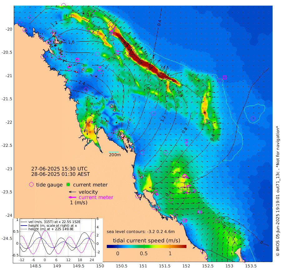 33cm/s -23T +10cm/s rms + 2cm/s 5T. Brampton I 18m 32cm/s -2T +9cm/s rms + 6cm/s 66T. Wigton I 38m 31cm/s 25T +7cm/s rms + 8cm/s 141T. Tern I 47m 54cm/s 31T +7cm/s rms + 12cm/s 54T. N Bugatti Rf 64m 45cm/s 37T +3cm/s rms + 13cm/s 178T. W Bugatti Rf 70m 22cm/s 35T +3cm/s rms + 3cm/s -130T. Creal Rf 69m 67cm/s 113T +7cm/s rms + 4cm/s 2T. North Rf 62m 50cm/s 139T +9cm/s rms + 2cm/s -56T. Cape Capricorn 26m 29cm/s 97T +5cm/s rms + 3cm/s 166T. L Musgrave I 42m 30cm/s 115T +9cm/s rms + 1cm/s -142T. Round Hill Hd 26m 6cm/s 53T +41cm/s rms + 48cm/s 116T. GBRELR 305m 18cm/s 115T +7cm/s rms + 6cm/s 123T. GBRCCH 92m 71cm/s 78T +8cm/s rms + 3cm/s -33T. GBRHIN 45m 44cm/s 91T +4cm/s rms + 2cm/s 41T. GBRHIS 46m 34cm/s 77T +16cm/s rms + 4cm/s -22T. GBROTE 59m 136cm Bell Cay 116cm Holbourne I 219cm Tern I 123cm Bugatti Rf 161cm Creal Rf 94cm White Tip I 41cm North Rf 47cm Rundle I 13cm L Musgrave I 22cm Saumarez Reef 84cm Kennedy Reef 77cm Unnamed Reef No. 2 113cm Abbot Point 126cm Bowen 156cm Tideway Reef 140cm Hayman Island 191cm Square Reef 155cm Double Bay 183cm Molle Island 165cm Cid Harbour 152cm Hook Island 161cm Border Island 172cm Haslewood Island 171cm Shute Harbour 202cm Thomas Island 209cm Credlin Reef 230cm East Repulse Island 211cm Blacksmith Island 238cm Laguna Quays 232cm Carlisle Island (Off) 247cm St. Bees Island 216cm Scawfell Island 233cm Penrith Island 261cm Mackay Outer Harbour 272cm Hay Point 265cm Prudhoe Island 229cm Middle Island (Percy Isles) 119cm Gannet Cay 34cm Elusive Reef 371cm Mcewin Islet 209cm Mumford Island 244cm Osborn Island 260cm Marquis Island 227cm Reef Point 174cm High Peak Island 134cm Port Clinton 106cm Peaked Island 34cm Karamea Bank 71cm Johnson Patch - NW 89cm Rosslyn Bay 86cm Middle Island (Keppel Isles) 111cm Port Alma 33cm Heron Island 23cm One Tree Islet 29cm Polmaise Reef 47cm Tryon Island 38cm Rock Cod Shoal 53cm Gatcombe Head 72cm Gladstone 56cm South Trees (Storm Surge) 9cm Clews Point 17cm Round Hill Head 9cm Lady Elliot Island 4cm Breaksea Spit 18cm Bundaberg (Burnett Heads) 16cm Elliot Heads 6cm Waddy Point (Fraser Island)