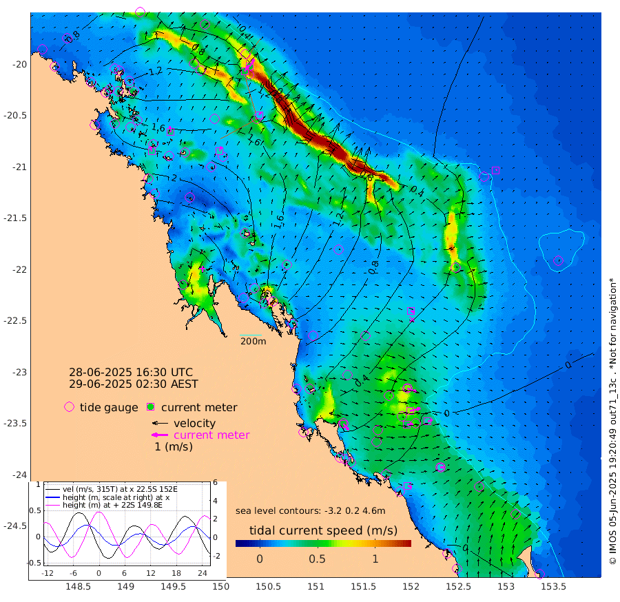 33cm/s -20T +10cm/s rms + 2cm/s 5T. Brampton I 18m 35cm/s -4T +9cm/s rms + 6cm/s 66T. Wigton I 38m 29cm/s 24T +7cm/s rms + 8cm/s 141T. Tern I 47m 53cm/s 29T +7cm/s rms + 12cm/s 54T. N Bugatti Rf 64m 47cm/s 36T +3cm/s rms + 13cm/s 178T. W Bugatti Rf 70m 21cm/s 31T +3cm/s rms + 3cm/s -130T. Creal Rf 69m 63cm/s 112T +7cm/s rms + 4cm/s 2T. North Rf 62m 48cm/s 140T +9cm/s rms + 2cm/s -56T. Cape Capricorn 26m 25cm/s 96T +5cm/s rms + 3cm/s 166T. L Musgrave I 42m 27cm/s 115T +9cm/s rms + 1cm/s -142T. Round Hill Hd 26m 6cm/s 52T +41cm/s rms + 48cm/s 116T. GBRELR 305m 21cm/s 115T +7cm/s rms + 6cm/s 123T. GBRCCH 92m 66cm/s 76T +8cm/s rms + 3cm/s -33T. GBRHIN 45m 40cm/s 90T +4cm/s rms + 2cm/s 41T. GBRHIS 46m 31cm/s 73T +16cm/s rms + 4cm/s -22T. GBROTE 59m 105cm Bell Cay 96cm Holbourne I 181cm Tern I 101cm Bugatti Rf 133cm Creal Rf 76cm White Tip I 21cm North Rf 23cm Rundle I -1cm L Musgrave I 10cm Saumarez Reef 65cm Kennedy Reef 60cm Unnamed Reef No. 2 94cm Abbot Point 105cm Bowen 131cm Tideway Reef 116cm Hayman Island 159cm Square Reef 135cm Double Bay 157cm Molle Island 136cm Cid Harbour 128cm Hook Island 135cm Border Island 146cm Haslewood Island 144cm Shute Harbour 170cm Thomas Island 174cm Credlin Reef 194cm East Repulse Island 175cm Blacksmith Island 204cm Laguna Quays 197cm Carlisle Island (Off) 208cm St. Bees Island 180cm Scawfell Island 193cm Penrith Island 220cm Mackay Outer Harbour 228cm Hay Point 222cm Prudhoe Island 185cm Middle Island (Percy Isles) 92cm Gannet Cay 23cm Elusive Reef 321cm Mcewin Islet 163cm Mumford Island 194cm Osborn Island 209cm Marquis Island 180cm Reef Point 137cm High Peak Island 100cm Port Clinton 72cm Peaked Island 14cm Karamea Bank 43cm Johnson Patch - NW 57cm Rosslyn Bay 53cm Middle Island (Keppel Isles) 74cm Port Alma 14cm Heron Island 3cm One Tree Islet 8cm Polmaise Reef 22cm Tryon Island 17cm Rock Cod Shoal 29cm Gatcombe Head 44cm Gladstone 30cm South Trees (Storm Surge) -9cm Clews Point -1cm Round Hill Head -4cm Lady Elliot Island -9cm Breaksea Spit 0cm Bundaberg (Burnett Heads) -3cm Elliot Heads -4cm Waddy Point (Fraser Island)