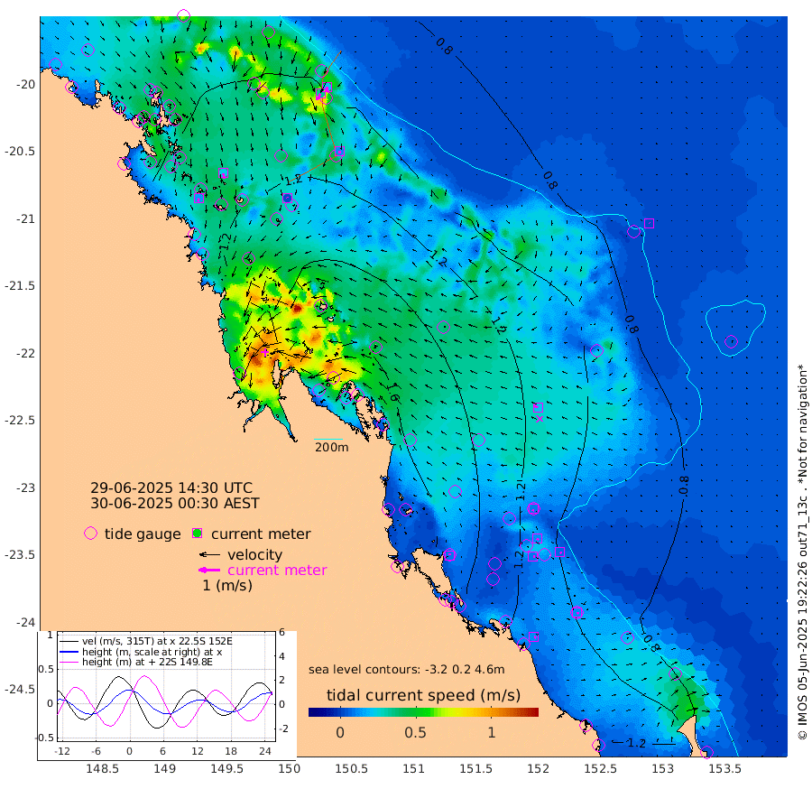 14cm/s -162T +10cm/s rms + 2cm/s 5T. Brampton I 18m 24cm/s 169T +9cm/s rms + 6cm/s 66T. Wigton I 38m 2cm/s -29T +7cm/s rms + 8cm/s 141T. Tern I 47m 22cm/s -179T +7cm/s rms + 12cm/s 54T. N Bugatti Rf 64m 34cm/s -152T +3cm/s rms + 13cm/s 178T. W Bugatti Rf 70m 11cm/s 168T +3cm/s rms + 3cm/s -130T. Creal Rf 69m 10cm/s -170T +7cm/s rms + 4cm/s 2T. North Rf 62m 9cm/s 6T +9cm/s rms + 2cm/s -56T. Cape Capricorn 26m 11cm/s 127T +5cm/s rms + 3cm/s 166T. L Musgrave I 42m 11cm/s 126T +9cm/s rms + 1cm/s -142T. Round Hill Hd 26m 1cm/s -52T +41cm/s rms + 48cm/s 116T. GBRELR 305m 20cm/s -69T +7cm/s rms + 6cm/s 123T. GBRCCH 92m 11cm/s 129T +8cm/s rms + 3cm/s -33T. GBRHIN 45m 9cm/s 97T +4cm/s rms + 2cm/s 41T. GBRHIS 46m 7cm/s 122T +16cm/s rms + 4cm/s -22T. GBROTE 59m 145cm Bell Cay 108cm Holbourne I 155cm Tern I 107cm Bugatti Rf 124cm Creal Rf 98cm White Tip I 118cm North Rf 145cm Rundle I 88cm L Musgrave I 73cm Saumarez Reef 94cm Kennedy Reef 95cm Unnamed Reef No. 2 97cm Abbot Point 100cm Bowen 107cm Tideway Reef 112cm Hayman Island 132cm Square Reef 126cm Double Bay 124cm Molle Island 107cm Cid Harbour 115cm Hook Island 101cm Border Island 104cm Haslewood Island 114cm Shute Harbour 122cm Thomas Island 137cm Credlin Reef 123cm East Repulse Island 121cm Blacksmith Island 128cm Laguna Quays 136cm Carlisle Island (Off) 144cm St. Bees Island 131cm Scawfell Island 159cm Penrith Island 155cm Mackay Outer Harbour 166cm Hay Point 179cm Prudhoe Island 205cm Middle Island (Percy Isles) 138cm Gannet Cay 74cm Elusive Reef 179cm Mcewin Islet 204cm Mumford Island 192cm Osborn Island 202cm Marquis Island 181cm Reef Point 168cm High Peak Island 187cm Port Clinton 177cm Peaked Island 116cm Karamea Bank 161cm Johnson Patch - NW 173cm Rosslyn Bay 172cm Middle Island (Keppel Isles) 191cm Port Alma 118cm Heron Island 127cm One Tree Islet 129cm Polmaise Reef 124cm Tryon Island 124cm Rock Cod Shoal 140cm Gatcombe Head 158cm Gladstone 150cm South Trees (Storm Surge) 114cm Clews Point 106cm Round Hill Head 84cm Lady Elliot Island 82cm Breaksea Spit 110cm Bundaberg (Burnett Heads) 113cm Elliot Heads 67cm Waddy Point (Fraser Island)