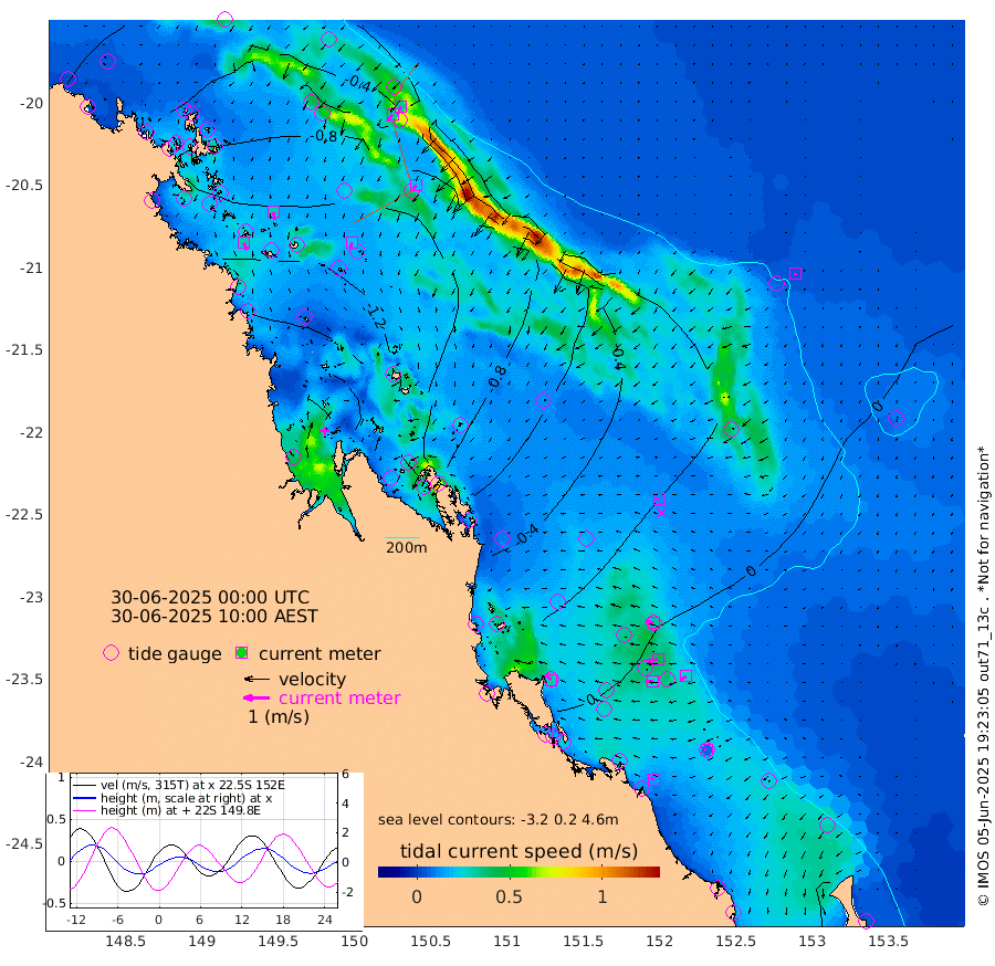 30cm/s 153T +10cm/s rms + 2cm/s 5T. Brampton I 18m 29cm/s 172T +9cm/s rms + 6cm/s 66T. Wigton I 38m 21cm/s -159T +7cm/s rms + 8cm/s 141T. Tern I 47m 33cm/s -155T +7cm/s rms + 12cm/s 54T. N Bugatti Rf 64m 32cm/s -142T +3cm/s rms + 13cm/s 178T. W Bugatti Rf 70m 18cm/s -158T +3cm/s rms + 3cm/s -130T. Creal Rf 69m 32cm/s -72T +7cm/s rms + 4cm/s 2T. North Rf 62m 30cm/s -41T +9cm/s rms + 2cm/s -56T. Cape Capricorn 26m 6cm/s -88T +5cm/s rms + 3cm/s 166T. L Musgrave I 42m 13cm/s -70T +9cm/s rms + 1cm/s -142T. Round Hill Hd 26m 5cm/s -166T +41cm/s rms + 48cm/s 116T. GBRELR 305m 12cm/s -81T +7cm/s rms + 6cm/s 123T. GBRCCH 92m 43cm/s -101T +8cm/s rms + 3cm/s -33T. GBRHIN 45m 27cm/s -93T +4cm/s rms + 2cm/s 41T. GBRHIS 46m 27cm/s -121T +16cm/s rms + 4cm/s -22T. GBROTE 59m -57cm Bell Cay -49cm Holbourne I -107cm Tern I -55cm Bugatti Rf -75cm Creal Rf -39cm White Tip I -6cm North Rf -2cm Rundle I 6cm L Musgrave I 13cm Saumarez Reef -27cm Kennedy Reef -30cm Unnamed Reef No. 2 -49cm Abbot Point -56cm Bowen -73cm Tideway Reef -67cm Hayman Island -85cm Square Reef -84cm Double Bay -96cm Molle Island -76cm Cid Harbour -72cm Hook Island -71cm Border Island -82cm Haslewood Island -83cm Shute Harbour -104cm Thomas Island -99cm Credlin Reef -120cm East Repulse Island -104cm Blacksmith Island -125cm Laguna Quays -116cm Carlisle Island (Off) -122cm St. Bees Island -105cm Scawfell Island -112cm Penrith Island -137cm Mackay Outer Harbour -142cm Hay Point -136cm Prudhoe Island -109cm Middle Island (Percy Isles) -49cm Gannet Cay -9cm Elusive Reef -209cm Mcewin Islet -88cm Mumford Island -111cm Osborn Island -119cm Marquis Island -105cm Reef Point -74cm High Peak Island -50cm Port Clinton -27cm Peaked Island 0cm Karamea Bank -13cm Johnson Patch - NW -20cm Rosslyn Bay -18cm Middle Island (Keppel Isles) -27cm Port Alma 1cm Heron Island 9cm One Tree Islet 7cm Polmaise Reef -8cm Tryon Island 0cm Rock Cod Shoal -6cm Gatcombe Head -9cm Gladstone -3cm South Trees (Storm Surge) 17cm Clews Point 12cm Round Hill Head 9cm Lady Elliot Island 6cm Breaksea Spit 16cm Bundaberg (Burnett Heads) 20cm Elliot Heads 2cm Waddy Point (Fraser Island)