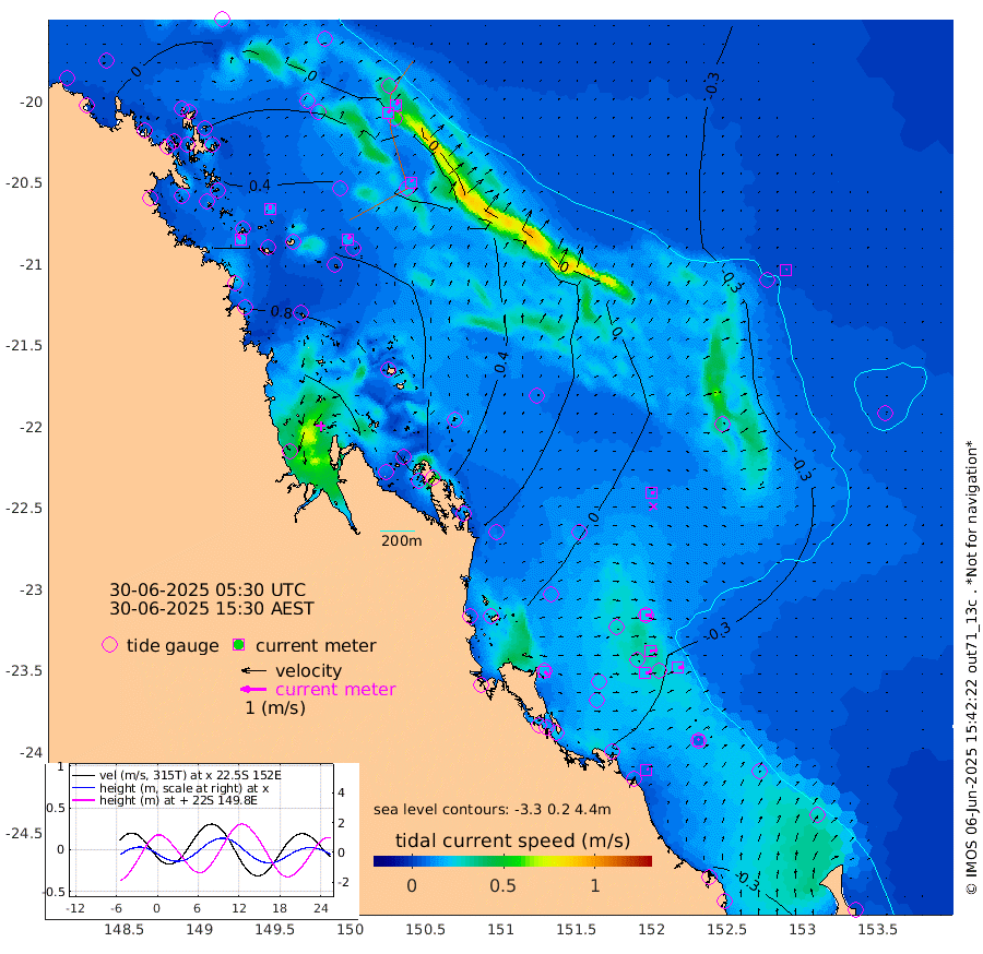 19cm/s -29T +10cm/s rms + 2cm/s 5T. Brampton I 18m 16cm/s -2T +9cm/s rms + 6cm/s 66T. Wigton I 38m 16cm/s 30T +7cm/s rms + 8cm/s 141T. Tern I 47m 17cm/s 30T +7cm/s rms + 12cm/s 54T. N Bugatti Rf 64m 18cm/s 43T +3cm/s rms + 13cm/s 178T. W Bugatti Rf 70m 13cm/s 32T +3cm/s rms + 3cm/s -130T. Creal Rf 69m 22cm/s 93T +7cm/s rms + 4cm/s 2T. North Rf 62m 18cm/s 130T +9cm/s rms + 2cm/s -56T. Cape Capricorn 26m 6cm/s 37T +5cm/s rms + 3cm/s 166T. L Musgrave I 42m 8cm/s 78T +9cm/s rms + 1cm/s -142T. Round Hill Hd 26m 3cm/s 38T +41cm/s rms + 48cm/s 116T. GBRELR 305m 12cm/s 97T +7cm/s rms + 6cm/s 123T. GBRCCH 92m 29cm/s 81T +8cm/s rms + 3cm/s -33T. GBRHIN 45m 21cm/s 88T +4cm/s rms + 2cm/s 41T. GBRHIS 46m 23cm/s 79T +16cm/s rms + 4cm/s -22T. GBROTE 59m 25cm Bell Cay 0cm Holbourne I 60cm Tern I 6cm Bugatti Rf 28cm Creal Rf -10cm White Tip I -22cm North Rf -19cm Rundle I -32cm L Musgrave I -42cm Saumarez Reef -7cm Kennedy Reef -15cm Unnamed Reef No. 2 -2cm Abbot Point 5cm Bowen 19cm Tideway Reef 15cm Hayman Island 21cm Square Reef 23cm Double Bay 19cm Molle Island 23cm Cid Harbour 20cm Hook Island 20cm Border Island 27cm Haslewood Island 30cm Shute Harbour 53cm Thomas Island 45cm Credlin Reef 65cm East Repulse Island 51cm Blacksmith Island 67cm Laguna Quays 60cm Carlisle Island (Off) 68cm St. Bees Island 48cm Scawfell Island 59cm Penrith Island 83cm Mackay Outer Harbour 91cm Hay Point 87cm Prudhoe Island 72cm Middle Island (Percy Isles) 24cm Gannet Cay -28cm Elusive Reef 166cm Mcewin Islet 54cm Mumford Island 80cm Osborn Island 86cm Marquis Island 74cm Reef Point 43cm High Peak Island 27cm Port Clinton 6cm Peaked Island -24cm Karamea Bank -11cm Johnson Patch - NW 0cm Rosslyn Bay -3cm Middle Island (Keppel Isles) 9cm Port Alma -30cm Heron Island -35cm One Tree Islet -28cm Polmaise Reef -21cm Tryon Island -24cm Rock Cod Shoal -14cm Gatcombe Head -7cm Gladstone -14cm South Trees (Storm Surge) -34cm Clews Point -33cm Round Hill Head -34cm Lady Elliot Island -33cm Breaksea Spit -33cm Bundaberg (Burnett Heads) -39cm Elliot Heads -29cm Waddy Point (Fraser Island)