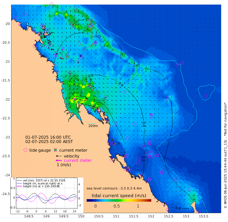 11cm/s -172T +10cm/s rms + 2cm/s 5T. Brampton I 18m 18cm/s 170T +9cm/s rms + 6cm/s 66T. Wigton I 38m 1cm/s -135T +7cm/s rms + 8cm/s 141T. Tern I 47m 18cm/s -170T +7cm/s rms + 12cm/s 54T. N Bugatti Rf 64m 23cm/s -147T +3cm/s rms + 13cm/s 178T. W Bugatti Rf 70m 9cm/s 175T +3cm/s rms + 3cm/s -130T. Creal Rf 69m 6cm/s -151T +7cm/s rms + 4cm/s 2T. North Rf 62m 7cm/s -9T +9cm/s rms + 2cm/s -56T. Cape Capricorn 26m 7cm/s 122T +5cm/s rms + 3cm/s 166T. L Musgrave I 42m 6cm/s 135T +9cm/s rms + 1cm/s -142T. Round Hill Hd 26m 1cm/s -45T +41cm/s rms + 48cm/s 116T. GBRELR 305m 12cm/s -71T +7cm/s rms + 6cm/s 123T. GBRCCH 92m 7cm/s 124T +8cm/s rms + 3cm/s -33T. GBRHIN 45m 6cm/s 97T +4cm/s rms + 2cm/s 41T. GBRHIS 46m 5cm/s 114T +16cm/s rms + 4cm/s -22T. GBROTE 59m 89cm Bell Cay 65cm Holbourne I 91cm Tern I 65cm Bugatti Rf 75cm Creal Rf 60cm White Tip I 76cm North Rf 94cm Rundle I 56cm L Musgrave I 44cm Saumarez Reef 59cm Kennedy Reef 57cm Unnamed Reef No. 2 56cm Abbot Point 58cm Bowen 62cm Tideway Reef 67cm Hayman Island 77cm Square Reef 75cm Double Bay 80cm Molle Island 61cm Cid Harbour 67cm Hook Island 59cm Border Island 59cm Haslewood Island 66cm Shute Harbour 69cm Thomas Island 77cm Credlin Reef 64cm East Repulse Island 70cm Blacksmith Island 72cm Laguna Quays 76cm Carlisle Island (Off) 76cm St. Bees Island 73cm Scawfell Island 98cm Penrith Island 90cm Mackay Outer Harbour 97cm Hay Point 104cm Prudhoe Island 133cm Middle Island (Percy Isles) 90cm Gannet Cay 46cm Elusive Reef 111cm Mcewin Islet 130cm Mumford Island 119cm Osborn Island 123cm Marquis Island 111cm Reef Point 105cm High Peak Island 120cm Port Clinton 108cm Peaked Island 73cm Karamea Bank 107cm Johnson Patch - NW 111cm Rosslyn Bay 108cm Middle Island (Keppel Isles) 125cm Port Alma 77cm Heron Island 84cm One Tree Islet 86cm Polmaise Reef 78cm Tryon Island 78cm Rock Cod Shoal 94cm Gatcombe Head 104cm Gladstone 99cm South Trees (Storm Surge) 76cm Clews Point 69cm Round Hill Head 53cm Lady Elliot Island 53cm Breaksea Spit 74cm Bundaberg (Burnett Heads) 76cm Elliot Heads 41cm Waddy Point (Fraser Island)