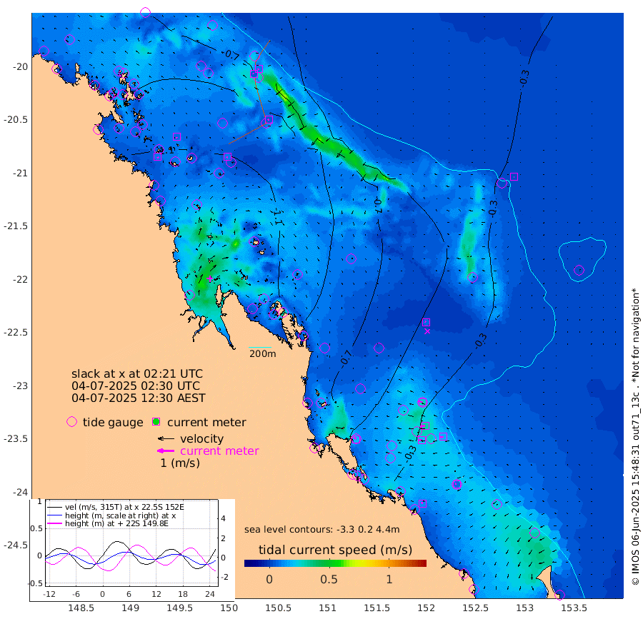 9cm/s 147T +10cm/s rms + 2cm/s 5T. Brampton I 18m 8cm/s -166T +9cm/s rms + 6cm/s 66T. Wigton I 38m 9cm/s -152T +7cm/s rms + 8cm/s 141T. Tern I 47m 8cm/s -112T +7cm/s rms + 12cm/s 54T. N Bugatti Rf 64m 5cm/s -44T +3cm/s rms + 13cm/s 178T. W Bugatti Rf 70m 5cm/s -138T +3cm/s rms + 3cm/s -130T. Creal Rf 69m 27cm/s -70T +7cm/s rms + 4cm/s 2T. North Rf 62m 18cm/s -46T +9cm/s rms + 2cm/s -56T. Cape Capricorn 26m 8cm/s -73T +5cm/s rms + 3cm/s 166T. L Musgrave I 42m 12cm/s -67T +9cm/s rms + 1cm/s -142T. Round Hill Hd 26m 2cm/s -120T +41cm/s rms + 48cm/s 116T. GBRELR 305m 6cm/s -53T +7cm/s rms + 6cm/s 123T. GBRCCH 92m 31cm/s -96T +8cm/s rms + 3cm/s -33T. GBRHIN 45m 20cm/s -90T +4cm/s rms + 2cm/s 41T. GBRHIS 46m 17cm/s -101T +16cm/s rms + 4cm/s -22T. GBROTE 59m -75cm Bell Cay -83cm Holbourne I -115cm Tern I -73cm Bugatti Rf -87cm Creal Rf -62cm White Tip I -31cm North Rf -38cm Rundle I -14cm L Musgrave I -14cm Saumarez Reef -69cm Kennedy Reef -61cm Unnamed Reef No. 2 -79cm Abbot Point -83cm Bowen -89cm Tideway Reef -84cm Hayman Island -103cm Square Reef -101cm Double Bay -113cm Molle Island -88cm Cid Harbour -91cm Hook Island -84cm Border Island -87cm Haslewood Island -96cm Shute Harbour -106cm Thomas Island -103cm Credlin Reef -113cm East Repulse Island -100cm Blacksmith Island -118cm Laguna Quays -111cm Carlisle Island (Off) -107cm St. Bees Island -95cm Scawfell Island -110cm Penrith Island -126cm Mackay Outer Harbour -131cm Hay Point -136cm Prudhoe Island -124cm Middle Island (Percy Isles) -63cm Gannet Cay -29cm Elusive Reef -151cm Mcewin Islet -113cm Mumford Island -115cm Osborn Island -113cm Marquis Island -108cm Reef Point -88cm High Peak Island -82cm Port Clinton -69cm Peaked Island -28cm Karamea Bank -46cm Johnson Patch - NW -57cm Rosslyn Bay -57cm Middle Island (Keppel Isles) -66cm Port Alma -24cm Heron Island -26cm One Tree Islet -27cm Polmaise Reef -31cm Tryon Island -29cm Rock Cod Shoal -37cm Gatcombe Head -44cm Gladstone -38cm South Trees (Storm Surge) -19cm Clews Point -15cm Round Hill Head -9cm Lady Elliot Island -8cm Breaksea Spit -17cm Bundaberg (Burnett Heads) -11cm Elliot Heads -4cm Waddy Point (Fraser Island)