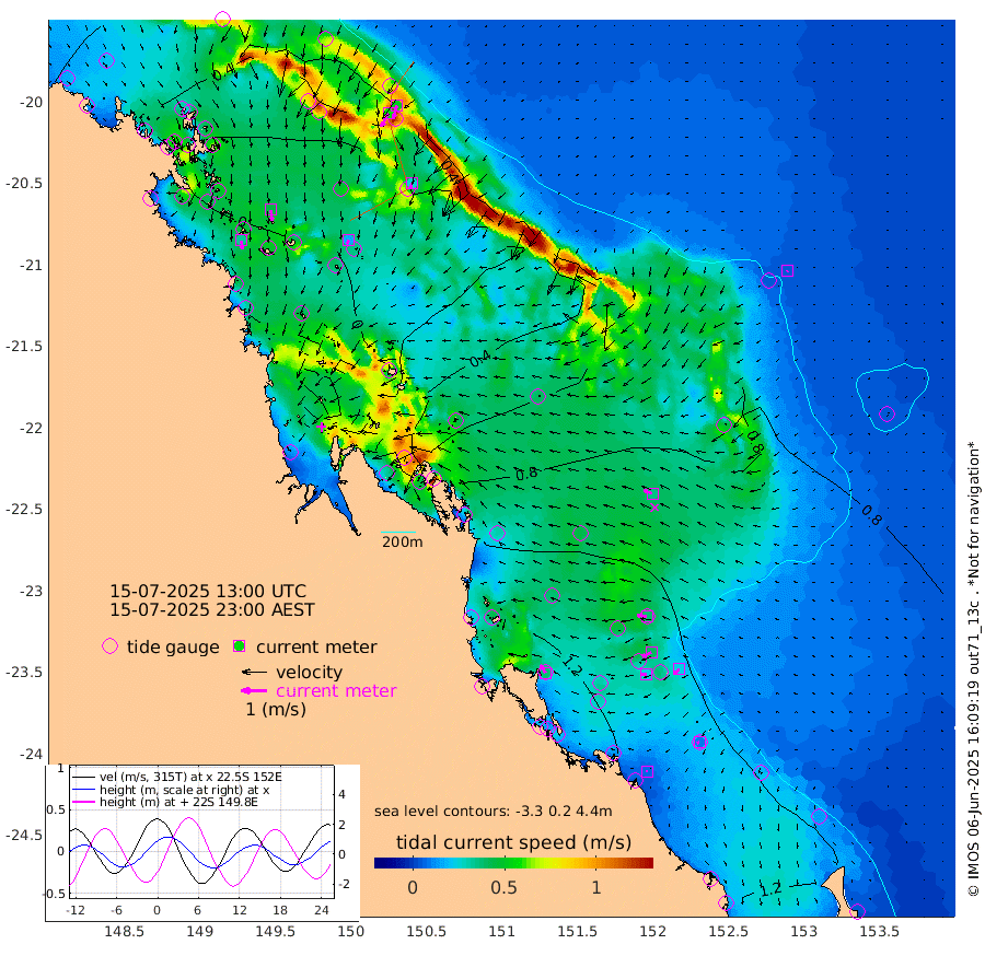 34cm/s 174T +10cm/s rms + 2cm/s 5T. Brampton I 18m 43cm/s 172T +9cm/s rms + 6cm/s 66T. Wigton I 38m 17cm/s -155T +7cm/s rms + 8cm/s 141T. Tern I 47m 51cm/s -164T +7cm/s rms + 12cm/s 54T. N Bugatti Rf 64m 59cm/s -151T +3cm/s rms + 13cm/s 178T. W Bugatti Rf 70m 26cm/s -168T +3cm/s rms + 3cm/s -130T. Creal Rf 69m 38cm/s -84T +7cm/s rms + 4cm/s 2T. North Rf 62m 36cm/s -33T +9cm/s rms + 2cm/s -56T. Cape Capricorn 26m 10cm/s -127T +5cm/s rms + 3cm/s 166T. L Musgrave I 42m 7cm/s -88T +9cm/s rms + 1cm/s -142T. Round Hill Hd 26m 5cm/s -128T +41cm/s rms + 48cm/s 116T. GBRELR 305m 36cm/s -70T +7cm/s rms + 6cm/s 123T. GBRCCH 92m 39cm/s -114T +8cm/s rms + 3cm/s -33T. GBRHIN 45m 22cm/s -97T +4cm/s rms + 2cm/s 41T. GBRHIS 46m 23cm/s -130T +16cm/s rms + 4cm/s -22T. GBROTE 59m 74cm Bell Cay 52cm Holbourne I 36cm Tern I 49cm Bugatti Rf 40cm Creal Rf 58cm White Tip I 109cm North Rf 131cm Rundle I 94cm L Musgrave I 80cm Saumarez Reef 57cm Kennedy Reef 70cm Unnamed Reef No. 2 52cm Abbot Point 47cm Bowen 35cm Tideway Reef 48cm Hayman Island 37cm Square Reef 47cm Double Bay 37cm Molle Island 32cm Cid Harbour 41cm Hook Island 22cm Border Island 26cm Haslewood Island 31cm Shute Harbour 17cm Thomas Island 35cm Credlin Reef 17cm East Repulse Island 10cm Blacksmith Island -1cm Laguna Quays 24cm Carlisle Island (Off) 17cm St. Bees Island 15cm Scawfell Island 33cm Penrith Island 9cm Mackay Outer Harbour 13cm Hay Point 23cm Prudhoe Island 62cm Middle Island (Percy Isles) 73cm Gannet Cay 72cm Elusive Reef -56cm Mcewin Islet 73cm Mumford Island 50cm Osborn Island 55cm Marquis Island 57cm Reef Point 76cm High Peak Island 113cm Port Clinton 125cm Peaked Island 118cm Karamea Bank 125cm Johnson Patch - NW 134cm Rosslyn Bay 140cm Middle Island (Keppel Isles) 138cm Port Alma 115cm Heron Island 121cm One Tree Islet 121cm Polmaise Reef 115cm Tryon Island 127cm Rock Cod Shoal 121cm Gatcombe Head 127cm Gladstone 130cm South Trees (Storm Surge) 118cm Clews Point 111cm Round Hill Head 95cm Lady Elliot Island 91cm Breaksea Spit 114cm Bundaberg (Burnett Heads) 119cm Elliot Heads 75cm Waddy Point (Fraser Island)