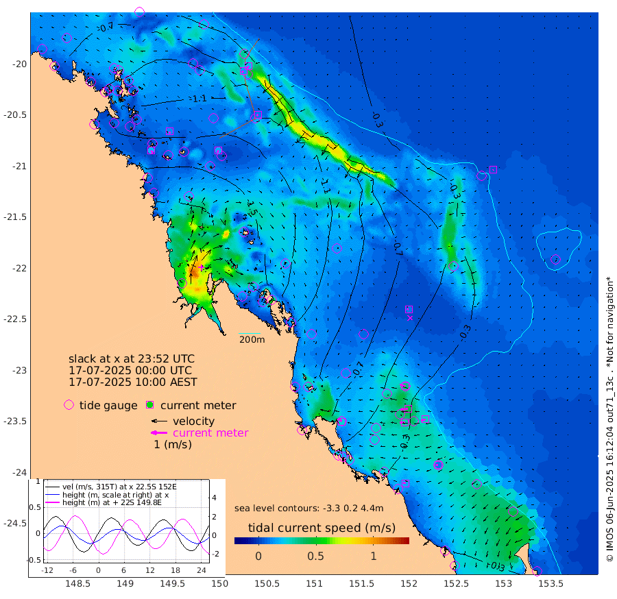 19cm/s 143T +10cm/s rms + 2cm/s 5T. Brampton I 18m 12cm/s 179T +9cm/s rms + 6cm/s 66T. Wigton I 38m 17cm/s -158T +7cm/s rms + 8cm/s 141T. Tern I 47m 19cm/s -140T +7cm/s rms + 12cm/s 54T. N Bugatti Rf 64m 13cm/s -132T +3cm/s rms + 13cm/s 178T. W Bugatti Rf 70m 10cm/s -134T +3cm/s rms + 3cm/s -130T. Creal Rf 69m 34cm/s -70T +7cm/s rms + 4cm/s 2T. North Rf 62m 26cm/s -45T +9cm/s rms + 2cm/s -56T. Cape Capricorn 26m 10cm/s -93T +5cm/s rms + 3cm/s 166T. L Musgrave I 42m 15cm/s -75T +9cm/s rms + 1cm/s -142T. Round Hill Hd 26m 4cm/s -154T +41cm/s rms + 48cm/s 116T. GBRELR 305m 10cm/s -75T +7cm/s rms + 6cm/s 123T. GBRCCH 92m 45cm/s -96T +8cm/s rms + 3cm/s -33T. GBRHIN 45m 30cm/s -90T +4cm/s rms + 2cm/s 41T. GBRHIS 46m 29cm/s -104T +16cm/s rms + 4cm/s -22T. GBROTE 59m -101cm Bell Cay -71cm Holbourne I -150cm Tern I -78cm Bugatti Rf -105cm Creal Rf -58cm White Tip I -37cm North Rf -48cm Rundle I -14cm L Musgrave I 2cm Saumarez Reef -57cm Kennedy Reef -47cm Unnamed Reef No. 2 -69cm Abbot Point -78cm Bowen -91cm Tideway Reef -94cm Hayman Island -112cm Square Reef -94cm Double Bay -123cm Molle Island -110cm Cid Harbour -93cm Hook Island -98cm Border Island -108cm Haslewood Island -109cm Shute Harbour -131cm Thomas Island -132cm Credlin Reef -151cm East Repulse Island -145cm Blacksmith Island -155cm Laguna Quays -150cm Carlisle Island (Off) -163cm St. Bees Island -149cm Scawfell Island -160cm Penrith Island -177cm Mackay Outer Harbour -186cm Hay Point -172cm Prudhoe Island -169cm Middle Island (Percy Isles) -93cm Gannet Cay -18cm Elusive Reef -263cm Mcewin Islet -167cm Mumford Island -195cm Osborn Island -204cm Marquis Island -181cm Reef Point -127cm High Peak Island -104cm Port Clinton -78cm Peaked Island -28cm Karamea Bank -61cm Johnson Patch - NW -77cm Rosslyn Bay -72cm Middle Island (Keppel Isles) -94cm Port Alma -31cm Heron Island -23cm One Tree Islet -31cm Polmaise Reef -46cm Tryon Island -34cm Rock Cod Shoal -51cm Gatcombe Head -65cm Gladstone -54cm South Trees (Storm Surge) -19cm Clews Point -19cm Round Hill Head -7cm Lady Elliot Island -11cm Breaksea Spit -21cm Bundaberg (Burnett Heads) -22cm Elliot Heads -7cm Waddy Point (Fraser Island)
