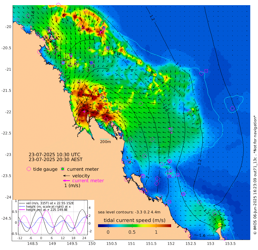 24cm/s -162T +10cm/s rms + 2cm/s 5T. Brampton I 18m 37cm/s 166T +9cm/s rms + 6cm/s 66T. Wigton I 38m 4cm/s -117T +7cm/s rms + 8cm/s 141T. Tern I 47m 40cm/s 179T +7cm/s rms + 12cm/s 54T. N Bugatti Rf 64m 68cm/s -153T +3cm/s rms + 13cm/s 178T. W Bugatti Rf 70m 20cm/s 173T +3cm/s rms + 3cm/s -130T. Creal Rf 69m 13cm/s -146T +7cm/s rms + 4cm/s 2T. North Rf 62m 18cm/s 0T +9cm/s rms + 2cm/s -56T. Cape Capricorn 26m 11cm/s 144T +5cm/s rms + 3cm/s 166T. L Musgrave I 42m 12cm/s 114T +9cm/s rms + 1cm/s -142T. Round Hill Hd 26m 2cm/s -106T +41cm/s rms + 48cm/s 116T. GBRELR 305m 36cm/s -70T +7cm/s rms + 6cm/s 123T. GBRCCH 92m 15cm/s 175T +8cm/s rms + 3cm/s -33T. GBRHIN 45m 7cm/s 110T +4cm/s rms + 2cm/s 41T. GBRHIS 46m 12cm/s 164T +16cm/s rms + 4cm/s -22T. GBROTE 59m 199cm Bell Cay 163cm Holbourne I 216cm Tern I 152cm Bugatti Rf 170cm Creal Rf 143cm White Tip I 164cm North Rf 202cm Rundle I 121cm L Musgrave I 104cm Saumarez Reef 148cm Kennedy Reef 150cm Unnamed Reef No. 2 160cm Abbot Point 162cm Bowen 162cm Tideway Reef 170cm Hayman Island 189cm Square Reef 180cm Double Bay 176cm Molle Island 167cm Cid Harbour 167cm Hook Island 154cm Border Island 157cm Haslewood Island 172cm Shute Harbour 177cm Thomas Island 201cm Credlin Reef 195cm East Repulse Island 175cm Blacksmith Island 180cm Laguna Quays 201cm Carlisle Island (Off) 208cm St. Bees Island 186cm Scawfell Island 213cm Penrith Island 211cm Mackay Outer Harbour 224cm Hay Point 236cm Prudhoe Island 253cm Middle Island (Percy Isles) 179cm Gannet Cay 111cm Elusive Reef 207cm Mcewin Islet 274cm Mumford Island 265cm Osborn Island 275cm Marquis Island 254cm Reef Point 224cm High Peak Island 247cm Port Clinton 247cm Peaked Island 167cm Karamea Bank 204cm Johnson Patch - NW 238cm Rosslyn Bay 245cm Middle Island (Keppel Isles) 258cm Port Alma 158cm Heron Island 172cm One Tree Islet 173cm Polmaise Reef 173cm Tryon Island 180cm Rock Cod Shoal 186cm Gatcombe Head 210cm Gladstone 202cm South Trees (Storm Surge) 157cm Clews Point 144cm Round Hill Head 115cm Lady Elliot Island 111cm Breaksea Spit 148cm Bundaberg (Burnett Heads) 149cm Elliot Heads 90cm Waddy Point (Fraser Island)