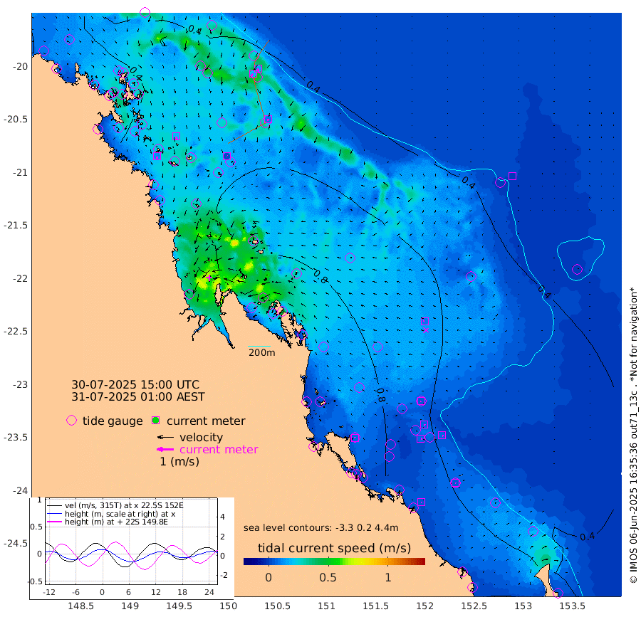 11cm/s 177T +10cm/s rms + 2cm/s 5T. Brampton I 18m 19cm/s 168T +9cm/s rms + 6cm/s 66T. Wigton I 38m 2cm/s 102T +7cm/s rms + 8cm/s 141T. Tern I 47m 16cm/s -172T +7cm/s rms + 12cm/s 54T. N Bugatti Rf 64m 18cm/s -146T +3cm/s rms + 13cm/s 178T. W Bugatti Rf 70m 10cm/s 165T +3cm/s rms + 3cm/s -130T. Creal Rf 69m 4cm/s -164T +7cm/s rms + 4cm/s 2T. North Rf 62m 6cm/s -14T +9cm/s rms + 2cm/s -56T. Cape Capricorn 26m 4cm/s 126T +5cm/s rms + 3cm/s 166T. L Musgrave I 42m 4cm/s 138T +9cm/s rms + 1cm/s -142T. Round Hill Hd 26m 0cm/s -67T +41cm/s rms + 48cm/s 116T. GBRELR 305m 9cm/s -73T +7cm/s rms + 6cm/s 123T. GBRCCH 92m 8cm/s 121T +8cm/s rms + 3cm/s -33T. GBRHIN 45m 6cm/s 95T +4cm/s rms + 2cm/s 41T. GBRHIS 46m 7cm/s 118T +16cm/s rms + 4cm/s -22T. GBROTE 59m 80cm Bell Cay 45cm Holbourne I 81cm Tern I 51cm Bugatti Rf 64cm Creal Rf 44cm White Tip I 65cm North Rf 82cm Rundle I 47cm L Musgrave I 38cm Saumarez Reef 44cm Kennedy Reef 38cm Unnamed Reef No. 2 37cm Abbot Point 39cm Bowen 45cm Tideway Reef 51cm Hayman Island 63cm Square Reef 44cm Double Bay 57cm Molle Island 52cm Cid Harbour 46cm Hook Island 47cm Border Island 48cm Haslewood Island 50cm Shute Harbour 57cm Thomas Island 64cm Credlin Reef 51cm East Repulse Island 64cm Blacksmith Island 60cm Laguna Quays 61cm Carlisle Island (Off) 63cm St. Bees Island 63cm Scawfell Island 86cm Penrith Island 79cm Mackay Outer Harbour 86cm Hay Point 90cm Prudhoe Island 121cm Middle Island (Percy Isles) 80cm Gannet Cay 31cm Elusive Reef 102cm Mcewin Islet 121cm Mumford Island 116cm Osborn Island 119cm Marquis Island 107cm Reef Point 96cm High Peak Island 105cm Port Clinton 96cm Peaked Island 61cm Karamea Bank 97cm Johnson Patch - NW 100cm Rosslyn Bay 96cm Middle Island (Keppel Isles) 115cm Port Alma 67cm Heron Island 70cm One Tree Islet 76cm Polmaise Reef 71cm Tryon Island 66cm Rock Cod Shoal 84cm Gatcombe Head 96cm Gladstone 90cm South Trees (Storm Surge) 67cm Clews Point 62cm Round Hill Head 44cm Lady Elliot Island 43cm Breaksea Spit 67cm Bundaberg (Burnett Heads) 72cm Elliot Heads 33cm Waddy Point (Fraser Island)