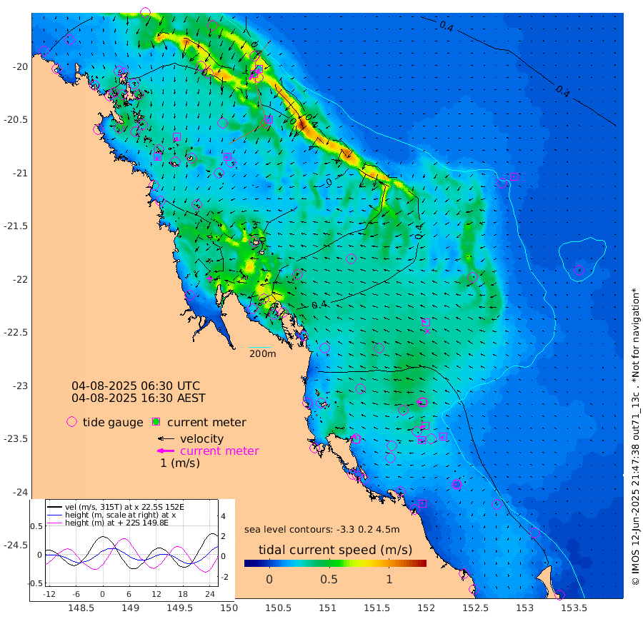 17cm/s -158T +10cm/s rms + 2cm/s 5T. Brampton I 18m 24cm/s 179T +9cm/s rms + 6cm/s 66T. Wigton I 38m 14cm/s -131T +7cm/s rms + 8cm/s 141T. Tern I 47m 30cm/s -159T +7cm/s rms + 12cm/s 54T. N Bugatti Rf 64m 40cm/s -140T +3cm/s rms + 13cm/s 178T. W Bugatti Rf 70m 14cm/s -154T +3cm/s rms + 3cm/s -130T. Creal Rf 69m 33cm/s -80T +7cm/s rms + 4cm/s 2T. North Rf 62m 28cm/s -29T +9cm/s rms + 2cm/s -56T. Cape Capricorn 26m 7cm/s -116T +5cm/s rms + 3cm/s 166T. L Musgrave I 42m 6cm/s -60T +9cm/s rms + 1cm/s -142T. Round Hill Hd 26m 6cm/s -71T +41cm/s rms + 48cm/s 116T. GBRELR 305m 26cm/s -63T +7cm/s rms + 6cm/s 123T. GBRCCH 92m 31cm/s -110T +8cm/s rms + 3cm/s -33T. GBRHIN 45m 17cm/s -94T +4cm/s rms + 2cm/s 41T. GBRHIS 46m 15cm/s -113T +16cm/s rms + 4cm/s -22T. GBROTE 59m 34cm Bell Cay 16cm Holbourne I 2cm Tern I 17cm Bugatti Rf 8cm Creal Rf 25cm White Tip I 63cm North Rf 75cm Rundle I 58cm L Musgrave I 28cm Saumarez Reef 28cm Kennedy Reef 31cm Unnamed Reef No. 2 15cm Abbot Point 12cm Bowen 0cm Tideway Reef 17cm Hayman Island -5cm Square Reef 7cm Double Bay 8cm Molle Island 7cm Cid Harbour 7cm Hook Island 5cm Border Island -4cm Haslewood Island 2cm Shute Harbour -8cm Thomas Island 1cm Credlin Reef -8cm East Repulse Island 0cm Blacksmith Island -16cm Laguna Quays -6cm Carlisle Island (Off) -6cm St. Bees Island 2cm Scawfell Island 7cm Penrith Island -9cm Mackay Outer Harbour -8cm Hay Point -15cm Prudhoe Island 24cm Middle Island (Percy Isles) 39cm Gannet Cay 42cm Elusive Reef -19cm Mcewin Islet 44cm Mumford Island 39cm Osborn Island 38cm Marquis Island 37cm Reef Point 31cm High Peak Island 54cm Port Clinton 52cm Peaked Island 61cm Karamea Bank 69cm Johnson Patch - NW 72cm Rosslyn Bay 70cm Middle Island (Keppel Isles) 71cm Port Alma 64cm Heron Island 76cm One Tree Islet 71cm Polmaise Reef 70cm Tryon Island 68cm Rock Cod Shoal 67cm Gatcombe Head 70cm Gladstone 72cm South Trees (Storm Surge) 73cm Clews Point 65cm Round Hill Head 55cm Lady Elliot Island 65cm Breaksea Spit 65cm Bundaberg (Burnett Heads) 69cm Elliot Heads 51cm Waddy Point (Fraser Island)