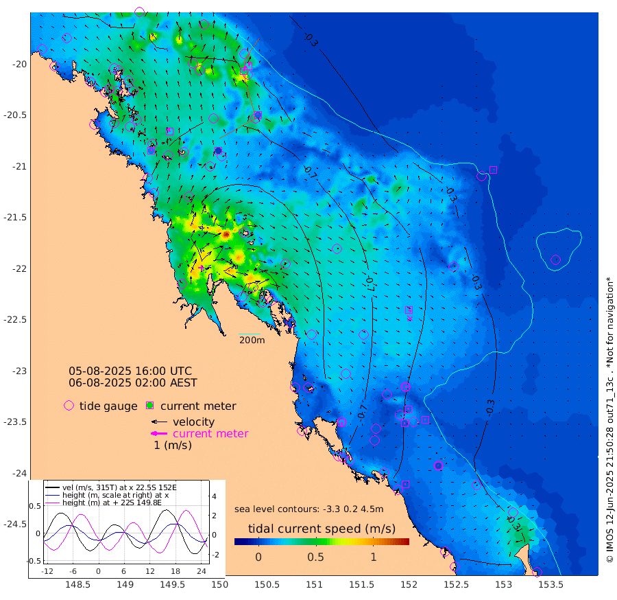 10cm/s 16T +10cm/s rms + 2cm/s 5T. Brampton I 18m 21cm/s -12T +9cm/s rms + 6cm/s 66T. Wigton I 38m 1cm/s 14T +7cm/s rms + 8cm/s 141T. Tern I 47m 26cm/s 11T +7cm/s rms + 12cm/s 54T. N Bugatti Rf 64m 36cm/s 26T +3cm/s rms + 13cm/s 178T. W Bugatti Rf 70m 7cm/s -30T +3cm/s rms + 3cm/s -130T. Creal Rf 69m 9cm/s 92T +7cm/s rms + 4cm/s 2T. North Rf 62m 13cm/s -176T +9cm/s rms + 2cm/s -56T. Cape Capricorn 26m 2cm/s -44T +5cm/s rms + 3cm/s 166T. L Musgrave I 42m 4cm/s -127T +9cm/s rms + 1cm/s -142T. Round Hill Hd 26m 1cm/s 78T +41cm/s rms + 48cm/s 116T. GBRELR 305m 17cm/s 122T +7cm/s rms + 6cm/s 123T. GBRCCH 92m 8cm/s 3T +8cm/s rms + 3cm/s -33T. GBRHIN 45m 5cm/s -86T +4cm/s rms + 2cm/s 41T. GBRHIS 46m 7cm/s -55T +16cm/s rms + 4cm/s -22T. GBROTE 59m -82cm Bell Cay -48cm Holbourne I -93cm Tern I -47cm Bugatti Rf -63cm Creal Rf -40cm White Tip I -56cm North Rf -77cm Rundle I -36cm L Musgrave I -22cm Saumarez Reef -45cm Kennedy Reef -39cm Unnamed Reef No. 2 -46cm Abbot Point -49cm Bowen -51cm Tideway Reef -56cm Hayman Island -67cm Square Reef -49cm Double Bay -51cm Molle Island -59cm Cid Harbour -48cm Hook Island -53cm Border Island -50cm Haslewood Island -59cm Shute Harbour -70cm Thomas Island -76cm Credlin Reef -70cm East Repulse Island -72cm Blacksmith Island -72cm Laguna Quays -71cm Carlisle Island (Off) -72cm St. Bees Island -77cm Scawfell Island -93cm Penrith Island -93cm Mackay Outer Harbour -102cm Hay Point -109cm Prudhoe Island -117cm Middle Island (Percy Isles) -75cm Gannet Cay -22cm Elusive Reef -107cm Mcewin Islet -140cm Mumford Island -136cm Osborn Island -132cm Marquis Island -123cm Reef Point -96cm High Peak Island -102cm Port Clinton -105cm Peaked Island -55cm Karamea Bank -79cm Johnson Patch - NW -98cm Rosslyn Bay -100cm Middle Island (Keppel Isles) -107cm Port Alma -51cm Heron Island -63cm One Tree Islet -66cm Polmaise Reef -62cm Tryon Island -59cm Rock Cod Shoal -71cm Gatcombe Head -81cm Gladstone -77cm South Trees (Storm Surge) -59cm Clews Point -48cm Round Hill Head -31cm Lady Elliot Island -31cm Breaksea Spit -46cm Bundaberg (Burnett Heads) -46cm Elliot Heads -26cm Waddy Point (Fraser Island)