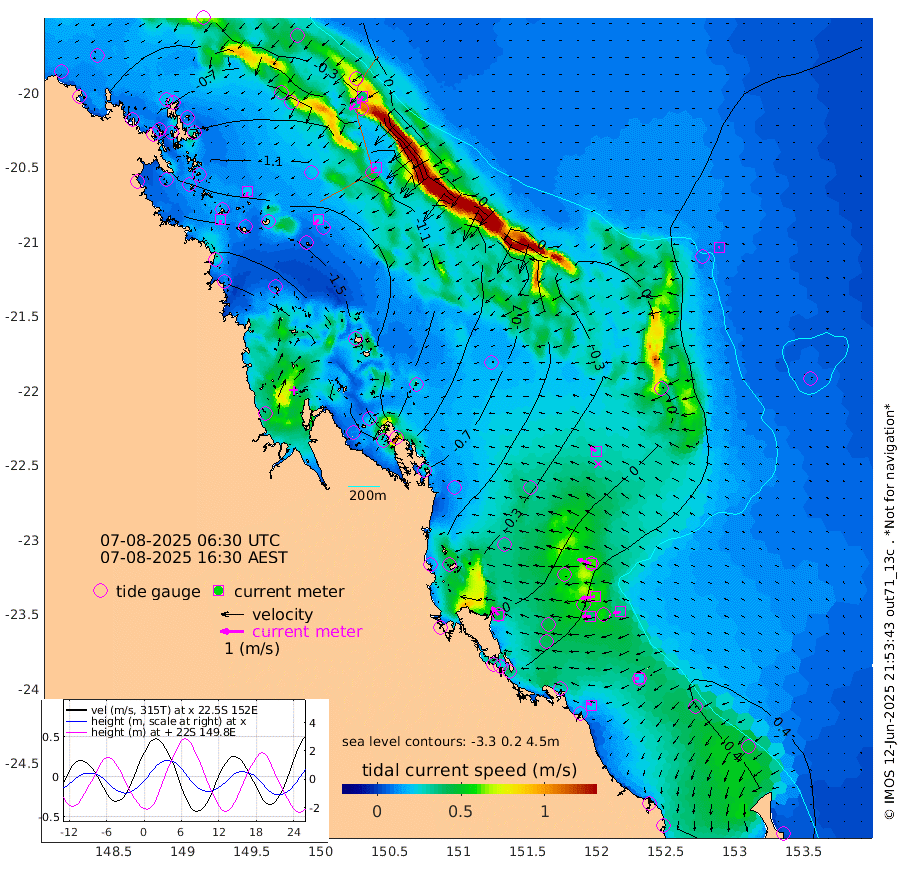19cm/s -173T +10cm/s rms + 2cm/s 5T. Brampton I 18m 21cm/s -170T +9cm/s rms + 6cm/s 66T. Wigton I 38m 24cm/s -142T +7cm/s rms + 8cm/s 141T. Tern I 47m 37cm/s -147T +7cm/s rms + 12cm/s 54T. N Bugatti Rf 64m 35cm/s -138T +3cm/s rms + 13cm/s 178T. W Bugatti Rf 70m 18cm/s -134T +3cm/s rms + 3cm/s -130T. Creal Rf 69m 61cm/s -72T +7cm/s rms + 4cm/s 2T. North Rf 62m 45cm/s -39T +9cm/s rms + 2cm/s -56T. Cape Capricorn 26m 20cm/s -98T +5cm/s rms + 3cm/s 166T. L Musgrave I 42m 21cm/s -66T +9cm/s rms + 1cm/s -142T. Round Hill Hd 26m 8cm/s -82T +41cm/s rms + 48cm/s 116T. GBRELR 305m 29cm/s -61T +7cm/s rms + 6cm/s 123T. GBRCCH 92m 60cm/s -98T +8cm/s rms + 3cm/s -33T. GBRHIN 45m 38cm/s -91T +4cm/s rms + 2cm/s 41T. GBRHIS 46m 32cm/s -99T +16cm/s rms + 4cm/s -22T. GBROTE 59m -72cm Bell Cay -58cm Holbourne I -142cm Tern I -61cm Bugatti Rf -96cm Creal Rf -35cm White Tip I 14cm North Rf 8cm Rundle I 33cm L Musgrave I 10cm Saumarez Reef -37cm Kennedy Reef -16cm Unnamed Reef No. 2 -52cm Abbot Point -62cm Bowen -86cm Tideway Reef -72cm Hayman Island -121cm Square Reef -77cm Double Bay -91cm Molle Island -96cm Cid Harbour -80cm Hook Island -92cm Border Island -98cm Haslewood Island -98cm Shute Harbour -125cm Thomas Island -123cm Credlin Reef -131cm East Repulse Island -136cm Blacksmith Island -153cm Laguna Quays -135cm Carlisle Island (Off) -161cm St. Bees Island -144cm Scawfell Island -147cm Penrith Island -168cm Mackay Outer Harbour -177cm Hay Point -183cm Prudhoe Island -149cm Middle Island (Percy Isles) -58cm Gannet Cay 22cm Elusive Reef -244cm Mcewin Islet -148cm Mumford Island -158cm Osborn Island -165cm Marquis Island -139cm Reef Point -99cm High Peak Island -65cm Port Clinton -55cm Peaked Island 23cm Karamea Bank -15cm Johnson Patch - NW -25cm Rosslyn Bay -22cm Middle Island (Keppel Isles) -44cm Port Alma 21cm Heron Island 27cm One Tree Islet 16cm Polmaise Reef 14cm Tryon Island 28cm Rock Cod Shoal 0cm Gatcombe Head -15cm Gladstone -1cm South Trees (Storm Surge) 31cm Clews Point 29cm Round Hill Head 37cm Lady Elliot Island 45cm Breaksea Spit 25cm Bundaberg (Burnett Heads) 24cm Elliot Heads 38cm Waddy Point (Fraser Island)