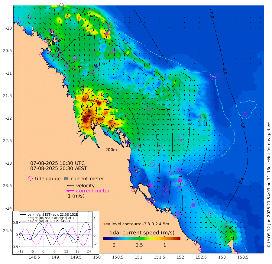 17cm/s -160T +10cm/s rms + 2cm/s 5T. Brampton I 18m 29cm/s 165T +9cm/s rms + 6cm/s 66T. Wigton I 38m 1cm/s -76T +7cm/s rms + 8cm/s 141T. Tern I 47m 28cm/s 176T +7cm/s rms + 12cm/s 54T. N Bugatti Rf 64m 51cm/s -152T +3cm/s rms + 13cm/s 178T. W Bugatti Rf 70m 16cm/s 163T +3cm/s rms + 3cm/s -130T. Creal Rf 69m 11cm/s -176T +7cm/s rms + 4cm/s 2T. North Rf 62m 9cm/s 23T +9cm/s rms + 2cm/s -56T. Cape Capricorn 26m 10cm/s 128T +5cm/s rms + 3cm/s 166T. L Musgrave I 42m 12cm/s 111T +9cm/s rms + 1cm/s -142T. Round Hill Hd 26m 2cm/s -106T +41cm/s rms + 48cm/s 116T. GBRELR 305m 24cm/s -71T +7cm/s rms + 6cm/s 123T. GBRCCH 92m 14cm/s 140T +8cm/s rms + 3cm/s -33T. GBRHIN 45m 11cm/s 98T +4cm/s rms + 2cm/s 41T. GBRHIS 46m 10cm/s 134T +16cm/s rms + 4cm/s -22T. GBROTE 59m 172cm Bell Cay 137cm Holbourne I 195cm Tern I 133cm Bugatti Rf 151cm Creal Rf 122cm White Tip I 133cm North Rf 164cm Rundle I 96cm L Musgrave I 84cm Saumarez Reef 127cm Kennedy Reef 121cm Unnamed Reef No. 2 137cm Abbot Point 141cm Bowen 142cm Tideway Reef 152cm Hayman Island 175cm Square Reef 140cm Double Bay 160cm Molle Island 160cm Cid Harbour 137cm Hook Island 146cm Border Island 145cm Haslewood Island 153cm Shute Harbour 162cm Thomas Island 182cm Credlin Reef 174cm East Repulse Island 176cm Blacksmith Island 168cm Laguna Quays 179cm Carlisle Island (Off) 186cm St. Bees Island 181cm Scawfell Island 204cm Penrith Island 195cm Mackay Outer Harbour 207cm Hay Point 208cm Prudhoe Island 223cm Middle Island (Percy Isles) 153cm Gannet Cay 85cm Elusive Reef 200cm Mcewin Islet 257cm Mumford Island 256cm Osborn Island 257cm Marquis Island 239cm Reef Point 196cm High Peak Island 199cm Port Clinton 203cm Peaked Island 129cm Karamea Bank 169cm Johnson Patch - NW 197cm Rosslyn Bay 200cm Middle Island (Keppel Isles) 215cm Port Alma 127cm Heron Island 139cm One Tree Islet 141cm Polmaise Reef 146cm Tryon Island 141cm Rock Cod Shoal 152cm Gatcombe Head 173cm Gladstone 164cm South Trees (Storm Surge) 127cm Clews Point 115cm Round Hill Head 88cm Lady Elliot Island 87cm Breaksea Spit 118cm Bundaberg (Burnett Heads) 125cm Elliot Heads 70cm Waddy Point (Fraser Island)