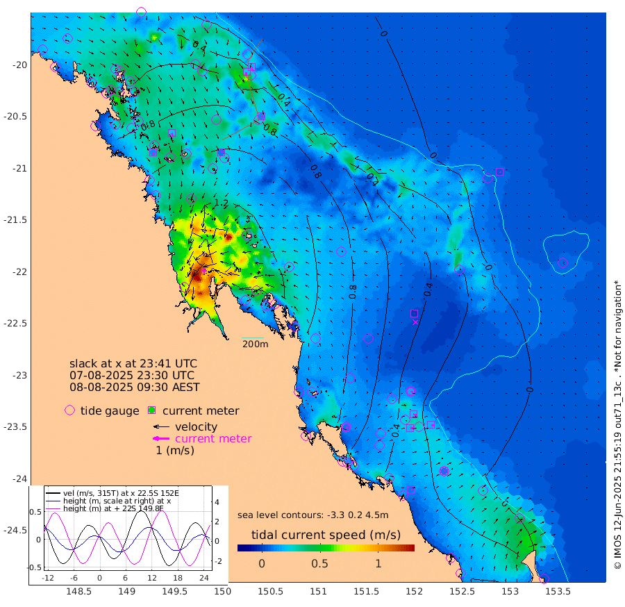 13cm/s 153T +10cm/s rms + 2cm/s 5T. Brampton I 18m 22cm/s 159T +9cm/s rms + 6cm/s 66T. Wigton I 38m 8cm/s 68T +7cm/s rms + 8cm/s 141T. Tern I 47m 18cm/s 176T +7cm/s rms + 12cm/s 54T. N Bugatti Rf 64m 22cm/s -169T +3cm/s rms + 13cm/s 178T. W Bugatti Rf 70m 12cm/s 125T +3cm/s rms + 3cm/s -130T. Creal Rf 69m 17cm/s 109T +7cm/s rms + 4cm/s 2T. North Rf 62m 9cm/s 96T +9cm/s rms + 2cm/s -56T. Cape Capricorn 26m 10cm/s 71T +5cm/s rms + 3cm/s 166T. L Musgrave I 42m 9cm/s 91T +9cm/s rms + 1cm/s -142T. Round Hill Hd 26m 5cm/s 127T +41cm/s rms + 48cm/s 116T. GBRELR 305m 1cm/s 137T +7cm/s rms + 6cm/s 123T. GBRCCH 92m 20cm/s 105T +8cm/s rms + 3cm/s -33T. GBRHIN 45m 19cm/s 92T +4cm/s rms + 2cm/s 41T. GBRHIS 46m 20cm/s 103T +16cm/s rms + 4cm/s -22T. GBROTE 59m 88cm Bell Cay 39cm Holbourne I 118cm Tern I 45cm Bugatti Rf 75cm Creal Rf 27cm White Tip I 31cm North Rf 57cm Rundle I 5cm L Musgrave I 4cm Saumarez Reef 35cm Kennedy Reef 18cm Unnamed Reef No. 2 38cm Abbot Point 44cm Bowen 53cm Tideway Reef 56cm Hayman Island 80cm Square Reef 45cm Double Bay 49cm Molle Island 72cm Cid Harbour 49cm Hook Island 60cm Border Island 65cm Haslewood Island 67cm Shute Harbour 87cm Thomas Island 94cm Credlin Reef 95cm East Repulse Island 99cm Blacksmith Island 99cm Laguna Quays 98cm Carlisle Island (Off) 118cm St. Bees Island 114cm Scawfell Island 123cm Penrith Island 125cm Mackay Outer Harbour 138cm Hay Point 140cm Prudhoe Island 143cm Middle Island (Percy Isles) 81cm Gannet Cay -11cm Elusive Reef 169cm Mcewin Islet 170cm Mumford Island 177cm Osborn Island 182cm Marquis Island 159cm Reef Point 116cm High Peak Island 106cm Port Clinton 105cm Peaked Island 29cm Karamea Bank 66cm Johnson Patch - NW 91cm Rosslyn Bay 91cm Middle Island (Keppel Isles) 112cm Port Alma 27cm Heron Island 27cm One Tree Islet 42cm Polmaise Reef 38cm Tryon Island 33cm Rock Cod Shoal 59cm Gatcombe Head 77cm Gladstone 67cm South Trees (Storm Surge) 31cm Clews Point 24cm Round Hill Head 0cm Lady Elliot Island -7cm Breaksea Spit 27cm Bundaberg (Burnett Heads) 32cm Elliot Heads -8cm Waddy Point (Fraser Island)