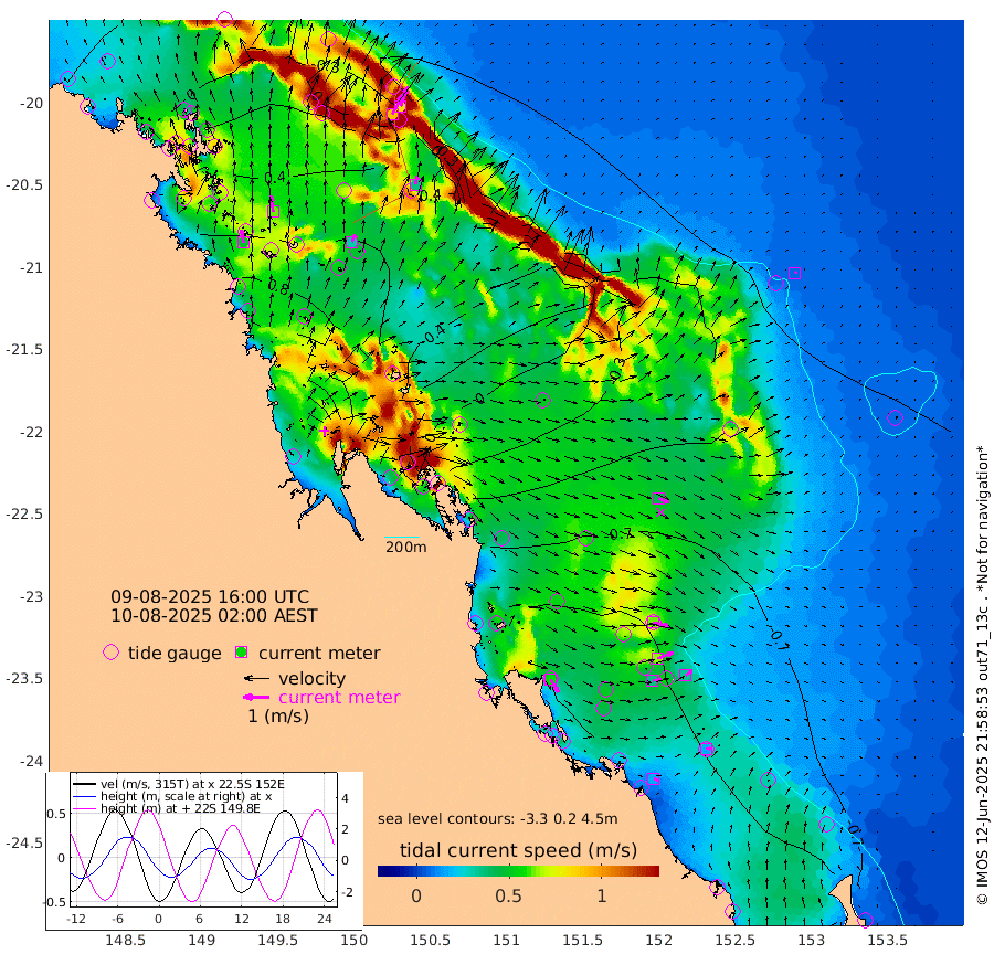 50cm/s -9T +10cm/s rms + 2cm/s 5T. Brampton I 18m 62cm/s -7T +9cm/s rms + 6cm/s 66T. Wigton I 38m 30cm/s 25T +7cm/s rms + 8cm/s 141T. Tern I 47m 81cm/s 20T +7cm/s rms + 12cm/s 54T. N Bugatti Rf 64m 90cm/s 29T +3cm/s rms + 13cm/s 178T. W Bugatti Rf 70m 35cm/s 14T +3cm/s rms + 3cm/s -130T. Creal Rf 69m 63cm/s 104T +7cm/s rms + 4cm/s 2T. North Rf 62m 57cm/s 148T +9cm/s rms + 2cm/s -56T. Cape Capricorn 26m 17cm/s 88T +5cm/s rms + 3cm/s 166T. L Musgrave I 42m 17cm/s 120T +9cm/s rms + 1cm/s -142T. Round Hill Hd 26m 6cm/s 42T +41cm/s rms + 48cm/s 116T. GBRELR 305m 43cm/s 113T +7cm/s rms + 6cm/s 123T. GBRCCH 92m 66cm/s 69T +8cm/s rms + 3cm/s -33T. GBRHIN 45m 34cm/s 83T +4cm/s rms + 2cm/s 41T. GBRHIS 46m 32cm/s 51T +16cm/s rms + 4cm/s -22T. GBROTE 59m -32cm Bell Cay -7cm Holbourne I 31cm Tern I 1cm Bugatti Rf 18cm Creal Rf -16cm White Tip I -85cm North Rf -113cm Rundle I -75cm L Musgrave I -50cm Saumarez Reef -26cm Kennedy Reef -37cm Unnamed Reef No. 2 -13cm Abbot Point -4cm Bowen 23cm Tideway Reef -1cm Hayman Island 35cm Square Reef 9cm Double Bay 35cm Molle Island 20cm Cid Harbour 15cm Hook Island 33cm Border Island 32cm Haslewood Island 25cm Shute Harbour 48cm Thomas Island 30cm Credlin Reef 46cm East Repulse Island 52cm Blacksmith Island 75cm Laguna Quays 44cm Carlisle Island (Off) 50cm St. Bees Island 41cm Scawfell Island 35cm Penrith Island 68cm Mackay Outer Harbour 65cm Hay Point 59cm Prudhoe Island 12cm Middle Island (Percy Isles) -36cm Gannet Cay -44cm Elusive Reef 158cm Mcewin Islet -27cm Mumford Island -2cm Osborn Island -2cm Marquis Island -11cm Reef Point -26cm High Peak Island -72cm Port Clinton -94cm Peaked Island -98cm Karamea Bank -91cm Johnson Patch - NW -110cm Rosslyn Bay -117cm Middle Island (Keppel Isles) -108cm Port Alma -91cm Heron Island -100cm One Tree Islet -102cm Polmaise Reef -91cm Tryon Island -109cm Rock Cod Shoal -101cm Gatcombe Head -102cm Gladstone -110cm South Trees (Storm Surge) -108cm Clews Point -93cm Round Hill Head -75cm Lady Elliot Island -73cm Breaksea Spit -96cm Bundaberg (Burnett Heads) -102cm Elliot Heads -57cm Waddy Point (Fraser Island)