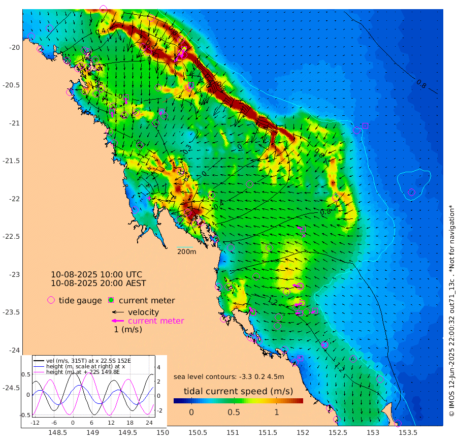 46cm/s 175T +10cm/s rms + 2cm/s 5T. Brampton I 18m 57cm/s 173T +9cm/s rms + 6cm/s 66T. Wigton I 38m 30cm/s -152T +7cm/s rms + 8cm/s 141T. Tern I 47m 75cm/s -162T +7cm/s rms + 12cm/s 54T. N Bugatti Rf 64m 91cm/s -149T +3cm/s rms + 13cm/s 178T. W Bugatti Rf 70m 36cm/s -163T +3cm/s rms + 3cm/s -130T. Creal Rf 69m 63cm/s -80T +7cm/s rms + 4cm/s 2T. North Rf 62m 56cm/s -33T +9cm/s rms + 2cm/s -56T. Cape Capricorn 26m 19cm/s -111T +5cm/s rms + 3cm/s 166T. L Musgrave I 42m 15cm/s -70T +9cm/s rms + 1cm/s -142T. Round Hill Hd 26m 7cm/s -119T +41cm/s rms + 48cm/s 116T. GBRELR 305m 50cm/s -69T +7cm/s rms + 6cm/s 123T. GBRCCH 92m 66cm/s -109T +8cm/s rms + 3cm/s -33T. GBRHIN 45m 38cm/s -95T +4cm/s rms + 2cm/s 41T. GBRHIS 46m 37cm/s -123T +16cm/s rms + 4cm/s -22T. GBROTE 59m 54cm Bell Cay 50cm Holbourne I -8cm Tern I 36cm Bugatti Rf 11cm Creal Rf 57cm White Tip I 119cm North Rf 143cm Rundle I 108cm L Musgrave I 88cm Saumarez Reef 62cm Kennedy Reef 81cm Unnamed Reef No. 2 56cm Abbot Point 45cm Bowen 17cm Tideway Reef 39cm Hayman Island 7cm Square Reef 32cm Double Bay 17cm Molle Island 12cm Cid Harbour 24cm Hook Island 3cm Border Island 1cm Haslewood Island 9cm Shute Harbour -20cm Thomas Island 1cm Credlin Reef -20cm East Repulse Island -30cm Blacksmith Island -50cm Laguna Quays -17cm Carlisle Island (Off) -38cm St. Bees Island -29cm Scawfell Island -13cm Penrith Island -49cm Mackay Outer Harbour -49cm Hay Point -40cm Prudhoe Island 5cm Middle Island (Percy Isles) 53cm Gannet Cay 87cm Elusive Reef -166cm Mcewin Islet 34cm Mumford Island 2cm Osborn Island -1cm Marquis Island 14cm Reef Point 43cm High Peak Island 93cm Port Clinton 117cm Peaked Island 132cm Karamea Bank 120cm Johnson Patch - NW 133cm Rosslyn Bay 143cm Middle Island (Keppel Isles) 128cm Port Alma 125cm Heron Island 138cm One Tree Islet 132cm Polmaise Reef 124cm Tryon Island 144cm Rock Cod Shoal 125cm Gatcombe Head 125cm Gladstone 134cm South Trees (Storm Surge) 136cm Clews Point 123cm Round Hill Head 109cm Lady Elliot Island 107cm Breaksea Spit 125cm Bundaberg (Burnett Heads) 129cm Elliot Heads 87cm Waddy Point (Fraser Island)