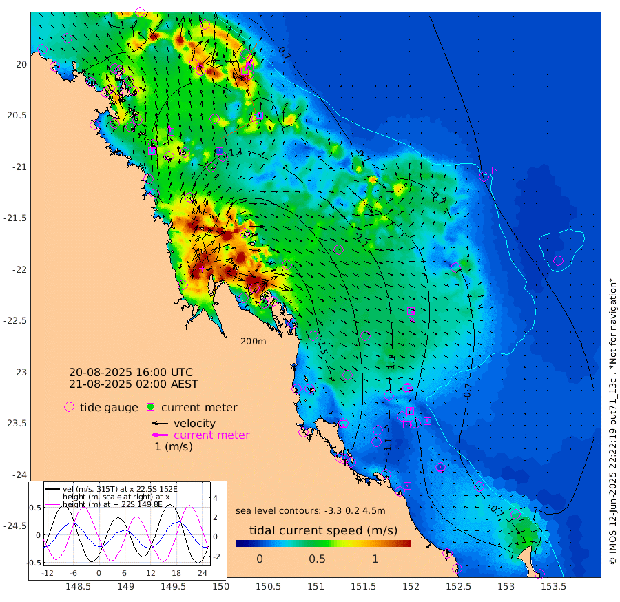 25cm/s 4T +10cm/s rms + 2cm/s 5T. Brampton I 18m 39cm/s -12T +9cm/s rms + 6cm/s 66T. Wigton I 38m 5cm/s 18T +7cm/s rms + 8cm/s 141T. Tern I 47m 48cm/s 12T +7cm/s rms + 12cm/s 54T. N Bugatti Rf 64m 64cm/s 24T +3cm/s rms + 13cm/s 178T. W Bugatti Rf 70m 17cm/s -14T +3cm/s rms + 3cm/s -130T. Creal Rf 69m 19cm/s 90T +7cm/s rms + 4cm/s 2T. North Rf 62m 23cm/s 172T +9cm/s rms + 2cm/s -56T. Cape Capricorn 26m 3cm/s 60T +5cm/s rms + 3cm/s 166T. L Musgrave I 42m 5cm/s -109T +9cm/s rms + 1cm/s -142T. Round Hill Hd 26m 2cm/s 39T +41cm/s rms + 48cm/s 116T. GBRELR 305m 30cm/s 116T +7cm/s rms + 6cm/s 123T. GBRCCH 92m 17cm/s 31T +8cm/s rms + 3cm/s -33T. GBRHIN 45m 2cm/s -44T +4cm/s rms + 2cm/s 41T. GBRHIS 46m 12cm/s -20T +16cm/s rms + 4cm/s -22T. GBROTE 59m -134cm Bell Cay -87cm Holbourne I -140cm Tern I -83cm Bugatti Rf -101cm Creal Rf -75cm White Tip I -106cm North Rf -141cm Rundle I -72cm L Musgrave I -51cm Saumarez Reef -76cm Kennedy Reef -81cm Unnamed Reef No. 2 -87cm Abbot Point -89cm Bowen -86cm Tideway Reef -97cm Hayman Island -103cm Square Reef -109cm Double Bay -88cm Molle Island -92cm Cid Harbour -90cm Hook Island -77cm Border Island -86cm Haslewood Island -97cm Shute Harbour -105cm Thomas Island -120cm Credlin Reef -118cm East Repulse Island -101cm Blacksmith Island -105cm Laguna Quays -122cm Carlisle Island (Off) -131cm St. Bees Island -120cm Scawfell Island -139cm Penrith Island -135cm Mackay Outer Harbour -149cm Hay Point -161cm Prudhoe Island -176cm Middle Island (Percy Isles) -124cm Gannet Cay -52cm Elusive Reef -137cm Mcewin Islet -199cm Mumford Island -189cm Osborn Island -199cm Marquis Island -182cm Reef Point -157cm High Peak Island -177cm Port Clinton -179cm Peaked Island -110cm Karamea Bank -139cm Johnson Patch - NW -171cm Rosslyn Bay -177cm Middle Island (Keppel Isles) -186cm Port Alma -101cm Heron Island -110cm One Tree Islet -117cm Polmaise Reef -110cm Tryon Island -121cm Rock Cod Shoal -131cm Gatcombe Head -147cm Gladstone -142cm South Trees (Storm Surge) -105cm Clews Point -92cm Round Hill Head -67cm Lady Elliot Island -62cm Breaksea Spit -93cm Bundaberg (Burnett Heads) -95cm Elliot Heads -51cm Waddy Point (Fraser Island)
