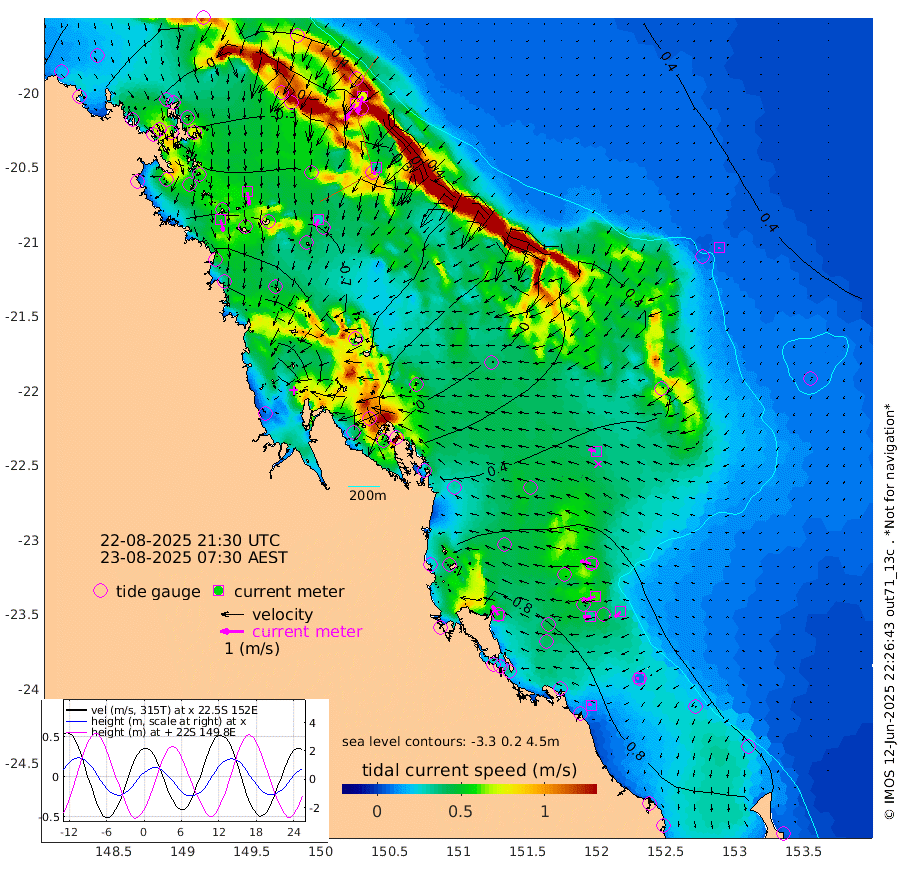 52cm/s 165T +10cm/s rms + 2cm/s 5T. Brampton I 18m 57cm/s 170T +9cm/s rms + 6cm/s 66T. Wigton I 38m 29cm/s -158T +7cm/s rms + 8cm/s 141T. Tern I 47m 76cm/s -162T +7cm/s rms + 12cm/s 54T. N Bugatti Rf 64m 86cm/s -149T +3cm/s rms + 13cm/s 178T. W Bugatti Rf 70m 34cm/s -164T +3cm/s rms + 3cm/s -130T. Creal Rf 69m 49cm/s -76T +7cm/s rms + 4cm/s 2T. North Rf 62m 50cm/s -33T +9cm/s rms + 2cm/s -56T. Cape Capricorn 26m 9cm/s -103T +5cm/s rms + 3cm/s 166T. L Musgrave I 42m 15cm/s -74T +9cm/s rms + 1cm/s -142T. Round Hill Hd 26m 7cm/s -157T +41cm/s rms + 48cm/s 116T. GBRELR 305m 33cm/s -74T +7cm/s rms + 6cm/s 123T. GBRCCH 92m 60cm/s -109T +8cm/s rms + 3cm/s -33T. GBRHIN 45m 34cm/s -94T +4cm/s rms + 2cm/s 41T. GBRHIS 46m 34cm/s -130T +16cm/s rms + 4cm/s -22T. GBROTE 59m 14cm Bell Cay 18cm Holbourne I -41cm Tern I 0cm Bugatti Rf -22cm Creal Rf 18cm White Tip I 64cm North Rf 88cm Rundle I 57cm L Musgrave I 48cm Saumarez Reef 41cm Kennedy Reef 38cm Unnamed Reef No. 2 19cm Abbot Point 9cm Bowen -18cm Tideway Reef 0cm Hayman Island -29cm Square Reef -3cm Double Bay -32cm Molle Island -26cm Cid Harbour -10cm Hook Island -28cm Border Island -38cm Haslewood Island -26cm Shute Harbour -54cm Thomas Island -40cm Credlin Reef -66cm East Repulse Island -62cm Blacksmith Island -81cm Laguna Quays -59cm Carlisle Island (Off) -70cm St. Bees Island -61cm Scawfell Island -51cm Penrith Island -82cm Mackay Outer Harbour -82cm Hay Point -67cm Prudhoe Island -22cm Middle Island (Percy Isles) 19cm Gannet Cay 39cm Elusive Reef -177cm Mcewin Islet 10cm Mumford Island -29cm Osborn Island -39cm Marquis Island -24cm Reef Point 5cm High Peak Island 53cm Port Clinton 75cm Peaked Island 75cm Karamea Bank 72cm Johnson Patch - NW 83cm Rosslyn Bay 88cm Middle Island (Keppel Isles) 82cm Port Alma 68cm Heron Island 85cm One Tree Islet 85cm Polmaise Reef 63cm Tryon Island 81cm Rock Cod Shoal 77cm Gatcombe Head 79cm Gladstone 86cm South Trees (Storm Surge) 91cm Clews Point 73cm Round Hill Head 55cm Lady Elliot Island 52cm Breaksea Spit 80cm Bundaberg (Burnett Heads) 82cm Elliot Heads 36cm Waddy Point (Fraser Island)