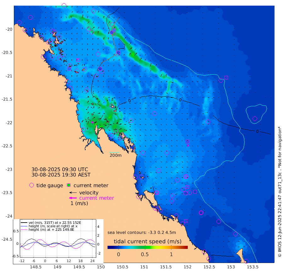 8cm/s -12T +10cm/s rms + 2cm/s 5T. Brampton I 18m 15cm/s -3T +9cm/s rms + 6cm/s 66T. Wigton I 38m 2cm/s 0T +7cm/s rms + 8cm/s 141T. Tern I 47m 12cm/s 32T +7cm/s rms + 12cm/s 54T. N Bugatti Rf 64m 5cm/s 77T +3cm/s rms + 13cm/s 178T. W Bugatti Rf 70m 4cm/s -30T +3cm/s rms + 3cm/s -130T. Creal Rf 69m 13cm/s 117T +7cm/s rms + 4cm/s 2T. North Rf 62m 12cm/s 150T +9cm/s rms + 2cm/s -56T. Cape Capricorn 26m 0cm/s 82T +5cm/s rms + 3cm/s 166T. L Musgrave I 42m 5cm/s 112T +9cm/s rms + 1cm/s -142T. Round Hill Hd 26m 1cm/s 90T +41cm/s rms + 48cm/s 116T. GBRELR 305m 6cm/s 139T +7cm/s rms + 6cm/s 123T. GBRCCH 92m 9cm/s 69T +8cm/s rms + 3cm/s -33T. GBRHIN 45m 3cm/s 98T +4cm/s rms + 2cm/s 41T. GBRHIS 46m 1cm/s 33T +16cm/s rms + 4cm/s -22T. GBROTE 59m -7cm Bell Cay 38cm Holbourne I 10cm Tern I 21cm Bugatti Rf 13cm Creal Rf 25cm White Tip I -10cm North Rf -19cm Rundle I -8cm L Musgrave I 7cm Saumarez Reef 29cm Kennedy Reef 31cm Unnamed Reef No. 2 41cm Abbot Point 40cm Bowen 37cm Tideway Reef 32cm Hayman Island 35cm Square Reef 44cm Double Bay 41cm Molle Island 25cm Cid Harbour 37cm Hook Island 26cm Border Island 27cm Haslewood Island 32cm Shute Harbour 25cm Thomas Island 22cm Credlin Reef 30cm East Repulse Island 14cm Blacksmith Island 24cm Laguna Quays 24cm Carlisle Island (Off) 20cm St. Bees Island 10cm Scawfell Island 6cm Penrith Island 11cm Mackay Outer Harbour 7cm Hay Point 14cm Prudhoe Island -19cm Middle Island (Percy Isles) -17cm Gannet Cay 16cm Elusive Reef -25cm Mcewin Islet -22cm Mumford Island -32cm Osborn Island -35cm Marquis Island -26cm Reef Point -16cm High Peak Island -20cm Port Clinton -11cm Peaked Island -8cm Karamea Bank -25cm Johnson Patch - NW -25cm Rosslyn Bay -20cm Middle Island (Keppel Isles) -34cm Port Alma -14cm Heron Island -13cm One Tree Islet -20cm Polmaise Reef -15cm Tryon Island -13cm Rock Cod Shoal -24cm Gatcombe Head -32cm Gladstone -28cm South Trees (Storm Surge) -19cm Clews Point -18cm Round Hill Head -6cm Lady Elliot Island -7cm Breaksea Spit -19cm Bundaberg (Burnett Heads) -25cm Elliot Heads -5cm Waddy Point (Fraser Island)