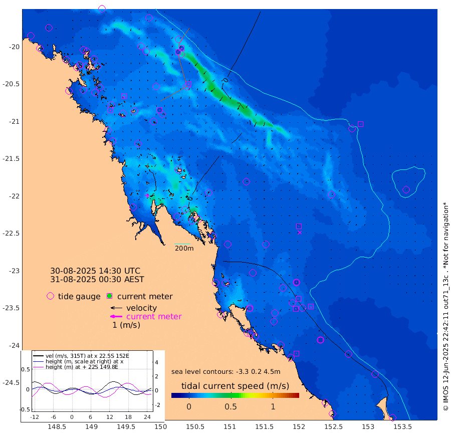 9cm/s 150T +10cm/s rms + 2cm/s 5T. Brampton I 18m 12cm/s 168T +9cm/s rms + 6cm/s 66T. Wigton I 38m 3cm/s 142T +7cm/s rms + 8cm/s 141T. Tern I 47m 4cm/s -177T +7cm/s rms + 12cm/s 54T. N Bugatti Rf 64m 2cm/s -66T +3cm/s rms + 13cm/s 178T. W Bugatti Rf 70m 8cm/s 174T +3cm/s rms + 3cm/s -130T. Creal Rf 69m 1cm/s 77T +7cm/s rms + 4cm/s 2T. North Rf 62m 5cm/s -73T +9cm/s rms + 2cm/s -56T. Cape Capricorn 26m 0cm/s 85T +5cm/s rms + 3cm/s 166T. L Musgrave I 42m 2cm/s -94T +9cm/s rms + 1cm/s -142T. Round Hill Hd 26m 2cm/s 146T +41cm/s rms + 48cm/s 116T. GBRELR 305m 2cm/s -153T +7cm/s rms + 6cm/s 123T. GBRCCH 92m 4cm/s -106T +8cm/s rms + 3cm/s -33T. GBRHIN 45m 3cm/s -108T +4cm/s rms + 2cm/s 41T. GBRHIS 46m 6cm/s -171T +16cm/s rms + 4cm/s -22T. GBROTE 59m 11cm Bell Cay -12cm Holbourne I 0cm Tern I -2cm Bugatti Rf 1cm Creal Rf -5cm White Tip I 14cm North Rf 20cm Rundle I 12cm L Musgrave I 12cm Saumarez Reef -3cm Kennedy Reef -8cm Unnamed Reef No. 2 -12cm Abbot Point -12cm Bowen -12cm Tideway Reef -7cm Hayman Island -6cm Square Reef -29cm Double Bay -9cm Molle Island 2cm Cid Harbour -13cm Hook Island -4cm Border Island -1cm Haslewood Island -10cm Shute Harbour -8cm Thomas Island -3cm Credlin Reef -8cm East Repulse Island 5cm Blacksmith Island -9cm Laguna Quays -4cm Carlisle Island (Off) -3cm St. Bees Island -1cm Scawfell Island 5cm Penrith Island -4cm Mackay Outer Harbour -3cm Hay Point -12cm Prudhoe Island 12cm Middle Island (Percy Isles) 14cm Gannet Cay -1cm Elusive Reef 1cm Mcewin Islet 14cm Mumford Island 23cm Osborn Island 26cm Marquis Island 23cm Reef Point 16cm High Peak Island 15cm Port Clinton 13cm Peaked Island 14cm Karamea Bank 24cm Johnson Patch - NW 23cm Rosslyn Bay 20cm Middle Island (Keppel Isles) 31cm Port Alma 19cm Heron Island 12cm One Tree Islet 19cm Polmaise Reef 21cm Tryon Island 18cm Rock Cod Shoal 24cm Gatcombe Head 30cm Gladstone 28cm South Trees (Storm Surge) 18cm Clews Point 20cm Round Hill Head 12cm Lady Elliot Island 9cm Breaksea Spit 25cm Bundaberg (Burnett Heads) 33cm Elliot Heads 5cm Waddy Point (Fraser Island)