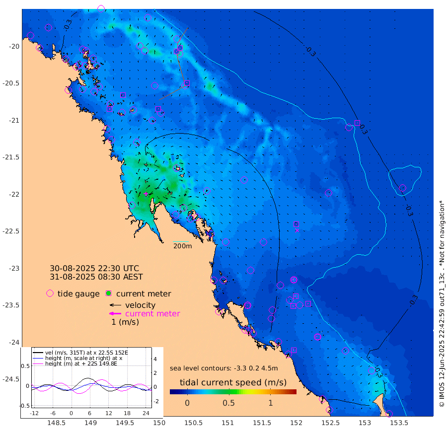 6cm/s 89T +10cm/s rms + 2cm/s 5T. Brampton I 18m 4cm/s -3T +9cm/s rms + 6cm/s 66T. Wigton I 38m 3cm/s 134T +7cm/s rms + 8cm/s 141T. Tern I 47m 5cm/s -116T +7cm/s rms + 12cm/s 54T. N Bugatti Rf 64m 4cm/s 82T +3cm/s rms + 13cm/s 178T. W Bugatti Rf 70m 3cm/s 25T +3cm/s rms + 3cm/s -130T. Creal Rf 69m 10cm/s -54T +7cm/s rms + 4cm/s 2T. North Rf 62m 2cm/s -61T +9cm/s rms + 2cm/s -56T. Cape Capricorn 26m 8cm/s -80T +5cm/s rms + 3cm/s 166T. L Musgrave I 42m 6cm/s -71T +9cm/s rms + 1cm/s -142T. Round Hill Hd 26m 2cm/s 160T +41cm/s rms + 48cm/s 116T. GBRELR 305m 3cm/s 87T +7cm/s rms + 6cm/s 123T. GBRCCH 92m 9cm/s -94T +8cm/s rms + 3cm/s -33T. GBRHIN 45m 6cm/s -81T +4cm/s rms + 2cm/s 41T. GBRHIS 46m 5cm/s -61T +16cm/s rms + 4cm/s -22T. GBROTE 59m -52cm Bell Cay -36cm Holbourne I -56cm Tern I -38cm Bugatti Rf -44cm Creal Rf -33cm White Tip I -39cm North Rf -47cm Rundle I -30cm L Musgrave I -14cm Saumarez Reef -41cm Kennedy Reef -29cm Unnamed Reef No. 2 -29cm Abbot Point -31cm Bowen -33cm Tideway Reef -39cm Hayman Island -42cm Square Reef -30cm Double Bay -52cm Molle Island -42cm Cid Harbour -41cm Hook Island -41cm Border Island -37cm Haslewood Island -40cm Shute Harbour -44cm Thomas Island -46cm Credlin Reef -45cm East Repulse Island -55cm Blacksmith Island -51cm Laguna Quays -50cm Carlisle Island (Off) -55cm St. Bees Island -52cm Scawfell Island -62cm Penrith Island -61cm Mackay Outer Harbour -65cm Hay Point -55cm Prudhoe Island -81cm Middle Island (Percy Isles) -53cm Gannet Cay -25cm Elusive Reef -101cm Mcewin Islet -81cm Mumford Island -90cm Osborn Island -92cm Marquis Island -80cm Reef Point -60cm High Peak Island -63cm Port Clinton -46cm Peaked Island -32cm Karamea Bank -57cm Johnson Patch - NW -57cm Rosslyn Bay -51cm Middle Island (Keppel Isles) -67cm Port Alma -39cm Heron Island -42cm One Tree Islet -42cm Polmaise Reef -46cm Tryon Island -35cm Rock Cod Shoal -48cm Gatcombe Head -57cm Gladstone -53cm South Trees (Storm Surge) -38cm Clews Point -36cm Round Hill Head -26cm Lady Elliot Island -33cm Breaksea Spit -41cm Bundaberg (Burnett Heads) -44cm Elliot Heads -21cm Waddy Point (Fraser Island)
