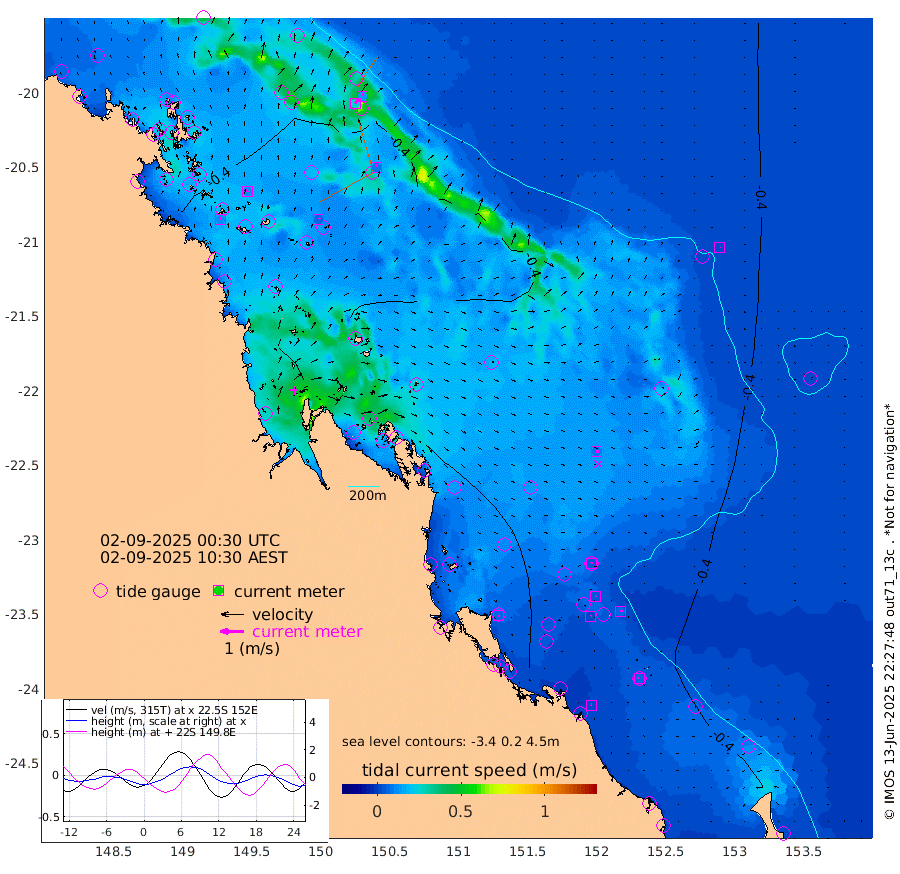 11cm/s 12T +10cm/s rms + 2cm/s 5T. Brampton I 18m 12cm/s -10T +9cm/s rms + 6cm/s 66T. Wigton I 38m 7cm/s 50T +7cm/s rms + 8cm/s 141T. Tern I 47m 13cm/s 3T +7cm/s rms + 12cm/s 54T. N Bugatti Rf 64m 25cm/s 39T +3cm/s rms + 13cm/s 178T. W Bugatti Rf 70m 10cm/s 25T +3cm/s rms + 3cm/s -130T. Creal Rf 69m 5cm/s 23T +7cm/s rms + 4cm/s 2T. North Rf 62m 6cm/s 150T +9cm/s rms + 2cm/s -56T. Cape Capricorn 26m 6cm/s -75T +5cm/s rms + 3cm/s 166T. L Musgrave I 42m 3cm/s -61T +9cm/s rms + 1cm/s -142T. Round Hill Hd 26m 1cm/s 98T +41cm/s rms + 48cm/s 116T. GBRELR 305m 9cm/s 93T +7cm/s rms + 6cm/s 123T. GBRCCH 92m 5cm/s 70T +8cm/s rms + 3cm/s -33T. GBRHIN 45m 3cm/s 52T +4cm/s rms + 2cm/s 41T. GBRHIS 46m 7cm/s 29T +16cm/s rms + 4cm/s -22T. GBROTE 59m -46cm Bell Cay -53cm Holbourne I -42cm Tern I -41cm Bugatti Rf -37cm Creal Rf -44cm White Tip I -46cm North Rf -56cm Rundle I -36cm L Musgrave I -21cm Saumarez Reef -57cm Kennedy Reef -48cm Unnamed Reef No. 2 -50cm Abbot Point -49cm Bowen -38cm Tideway Reef -51cm Hayman Island -41cm Square Reef -45cm Double Bay -61cm Molle Island -45cm Cid Harbour -46cm Hook Island -44cm Border Island -38cm Haslewood Island -43cm Shute Harbour -33cm Thomas Island -39cm Credlin Reef -39cm East Repulse Island -44cm Blacksmith Island -36cm Laguna Quays -41cm Carlisle Island (Off) -39cm St. Bees Island -44cm Scawfell Island -48cm Penrith Island -38cm Mackay Outer Harbour -38cm Hay Point -28cm Prudhoe Island -53cm Middle Island (Percy Isles) -46cm Gannet Cay -37cm Elusive Reef -39cm Mcewin Islet -69cm Mumford Island -68cm Osborn Island -66cm Marquis Island -62cm Reef Point -47cm High Peak Island -56cm Port Clinton -46cm Peaked Island -41cm Karamea Bank -53cm Johnson Patch - NW -60cm Rosslyn Bay -57cm Middle Island (Keppel Isles) -65cm Port Alma -45cm Heron Island -50cm One Tree Islet -48cm Polmaise Reef -48cm Tryon Island -46cm Rock Cod Shoal -52cm Gatcombe Head -57cm Gladstone -56cm South Trees (Storm Surge) -47cm Clews Point -42cm Round Hill Head -31cm Lady Elliot Island -37cm Breaksea Spit -47cm Bundaberg (Burnett Heads) -51cm Elliot Heads -24cm Waddy Point (Fraser Island)